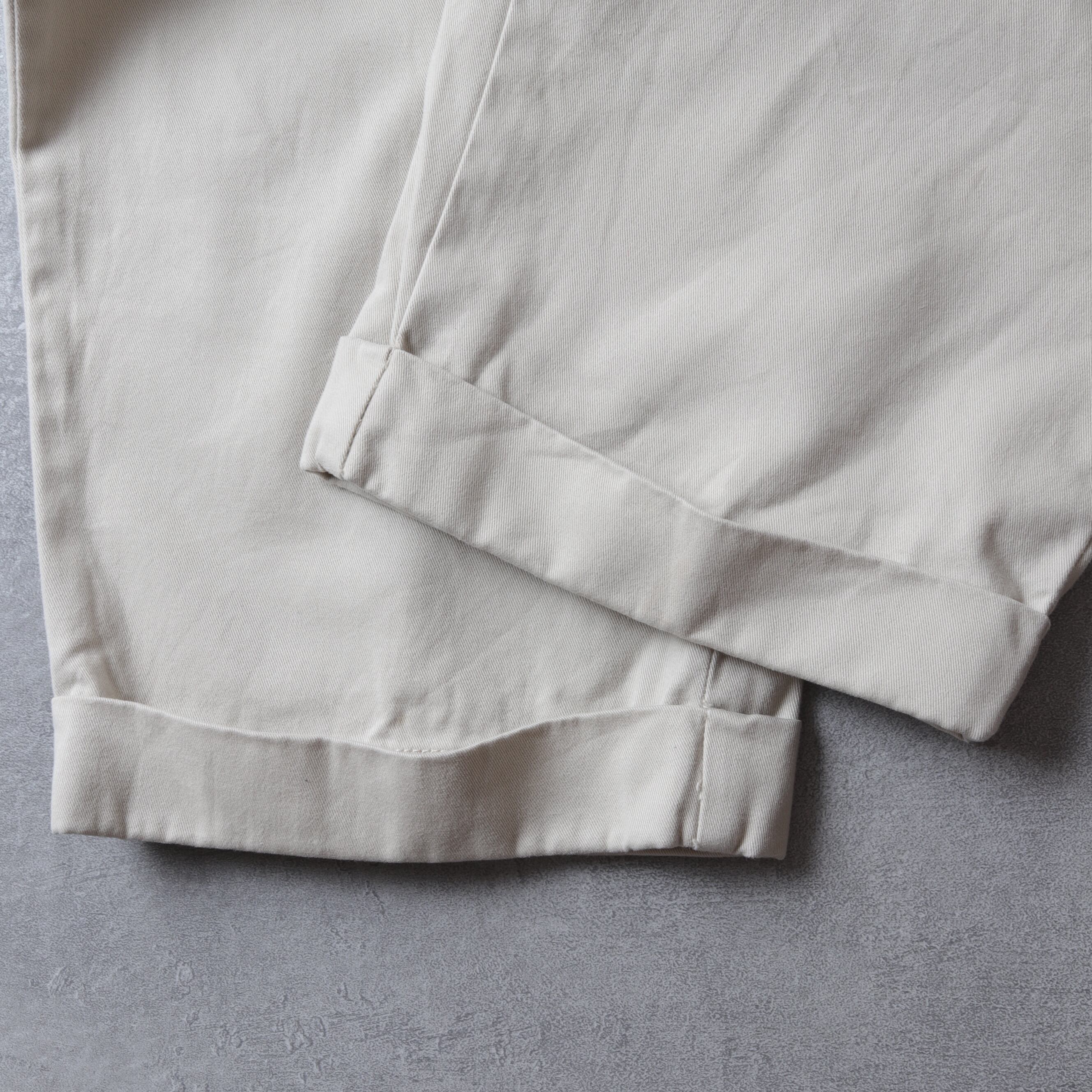 英国紳士服の上品な雰囲気がありながらミリタリーチノの野暮ったさも感じる一本です。