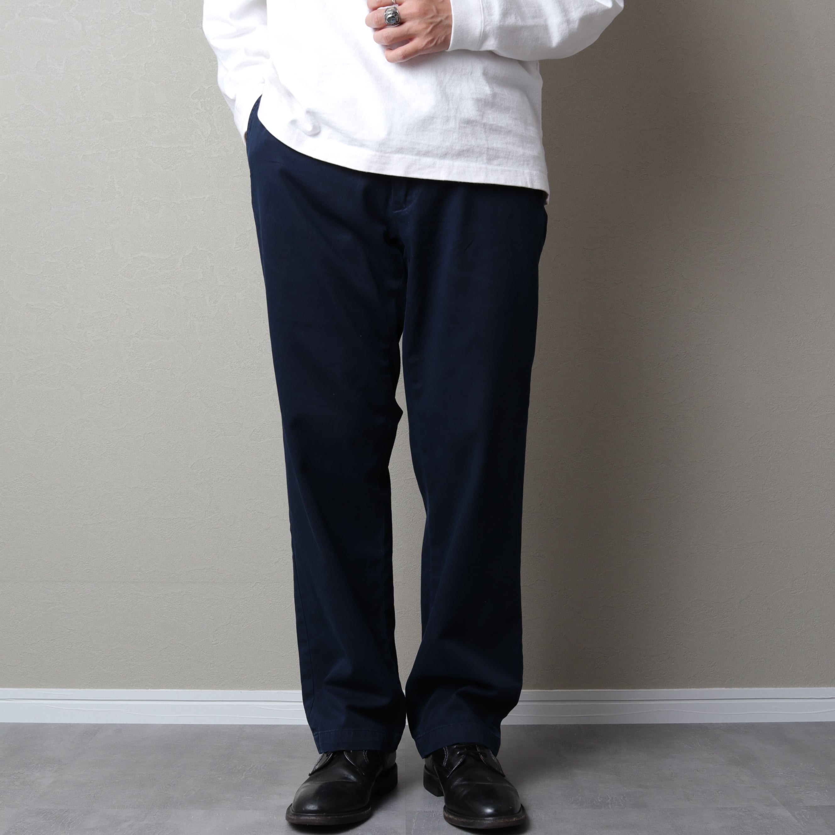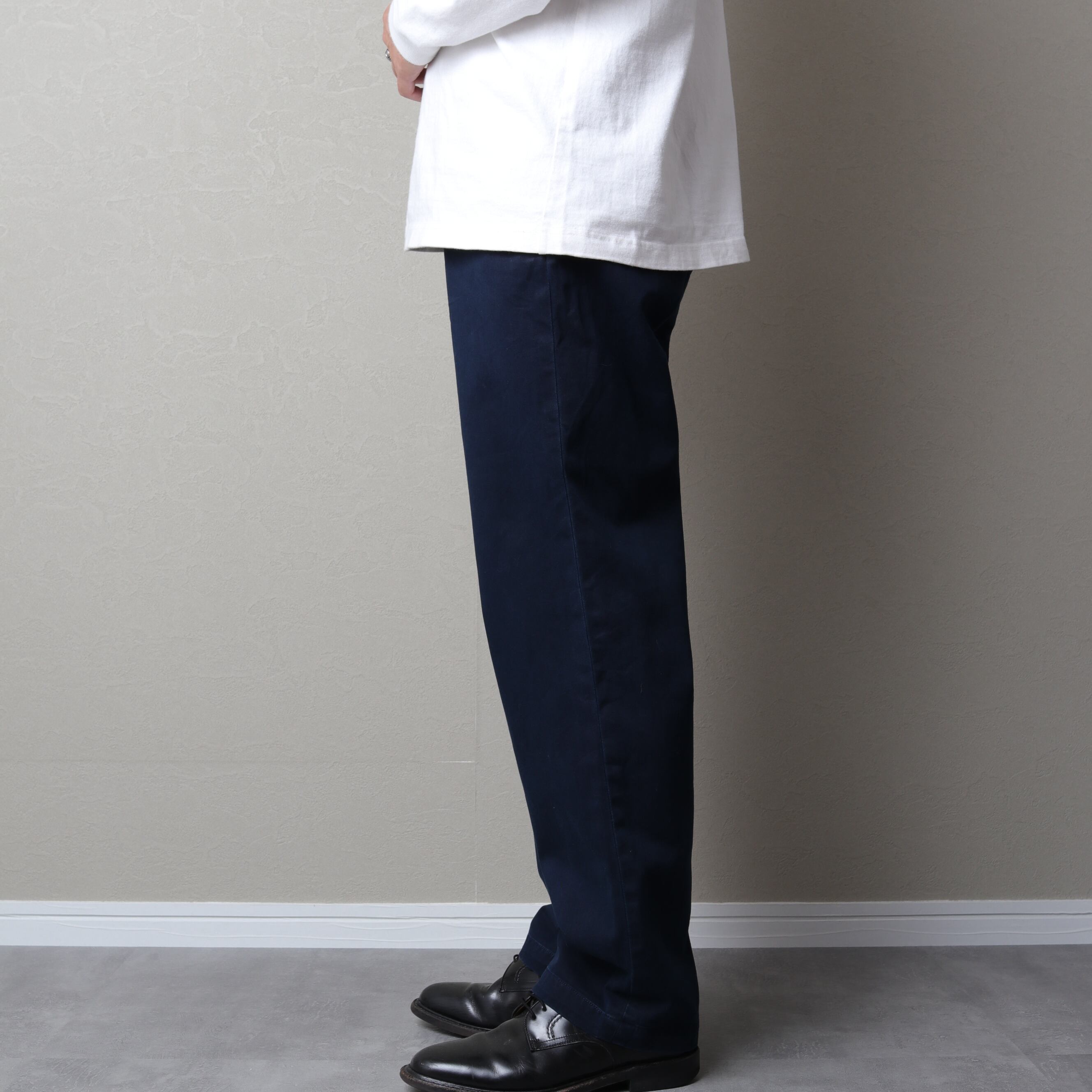 PHILIPやANDROWなどに比べ股上が浅く腰回りがすっきりとした印象のパンツです。
