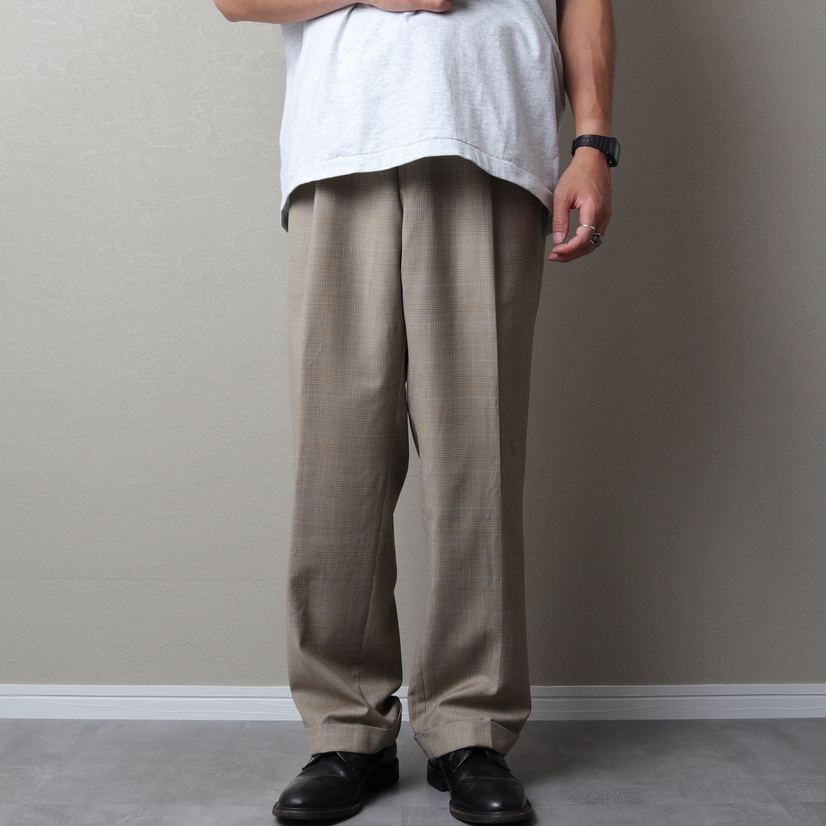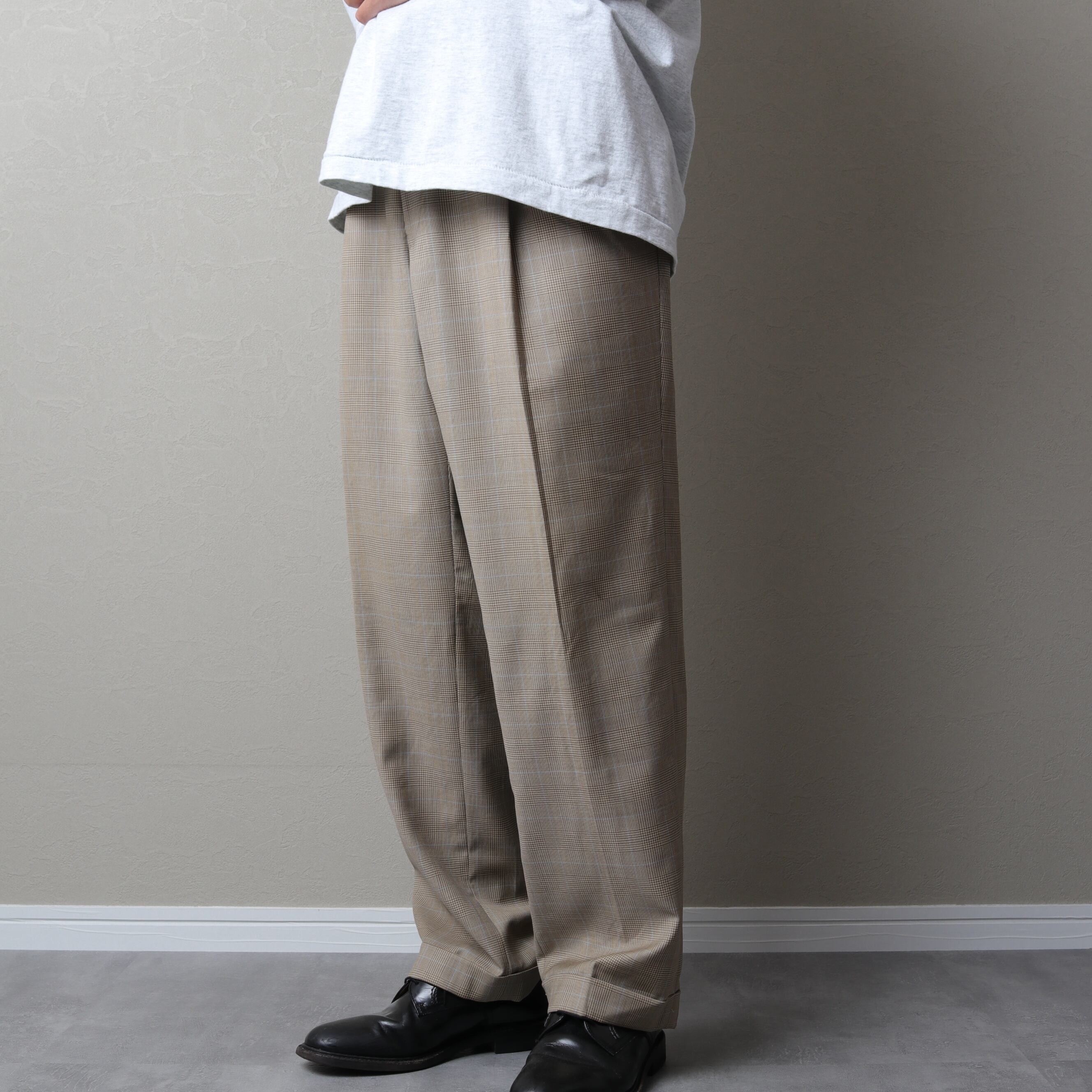 タック入りのワイドでクラシカルなシルエット。