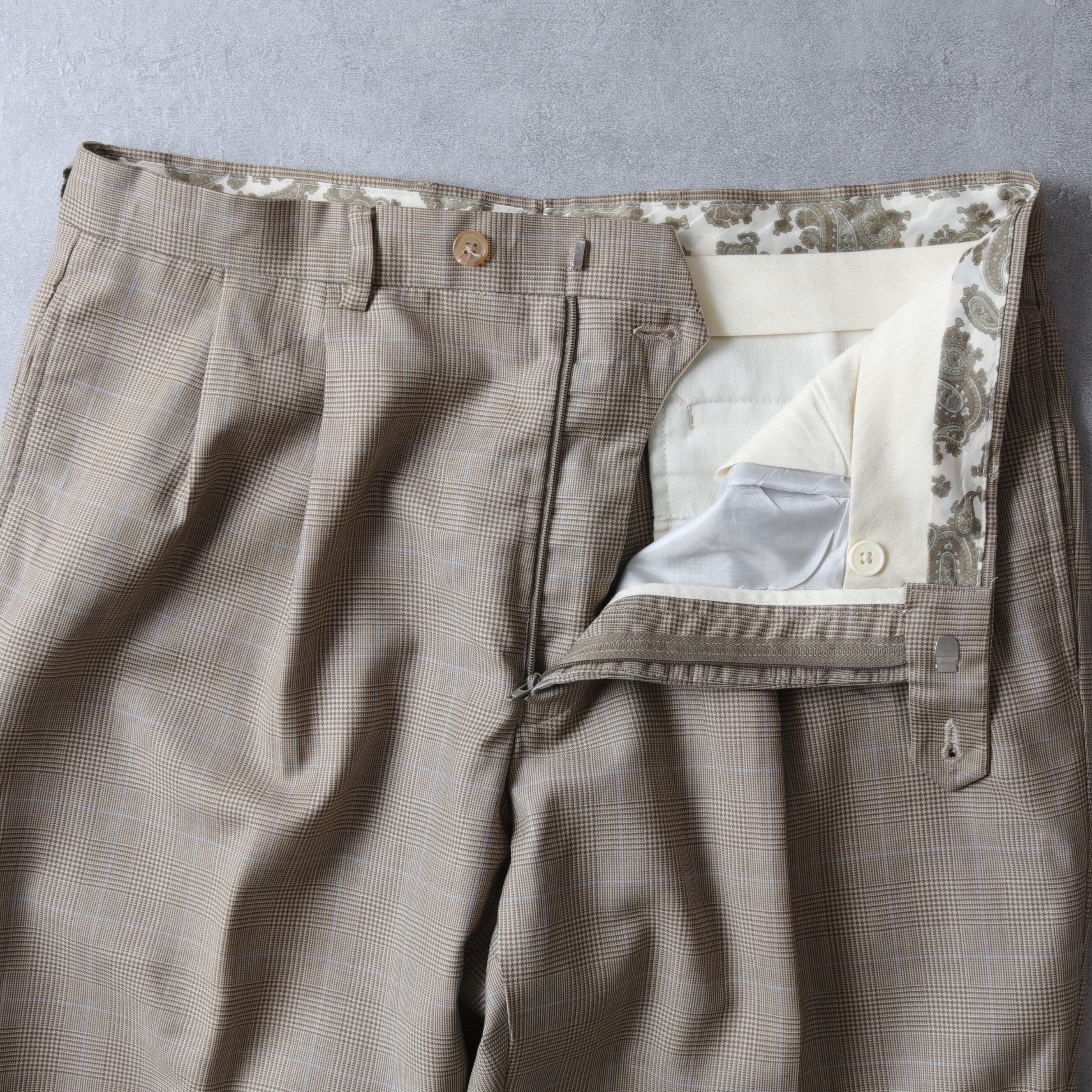 ベージュにブルーが入った玄人グレンチェックにライニングのペイズリー◎