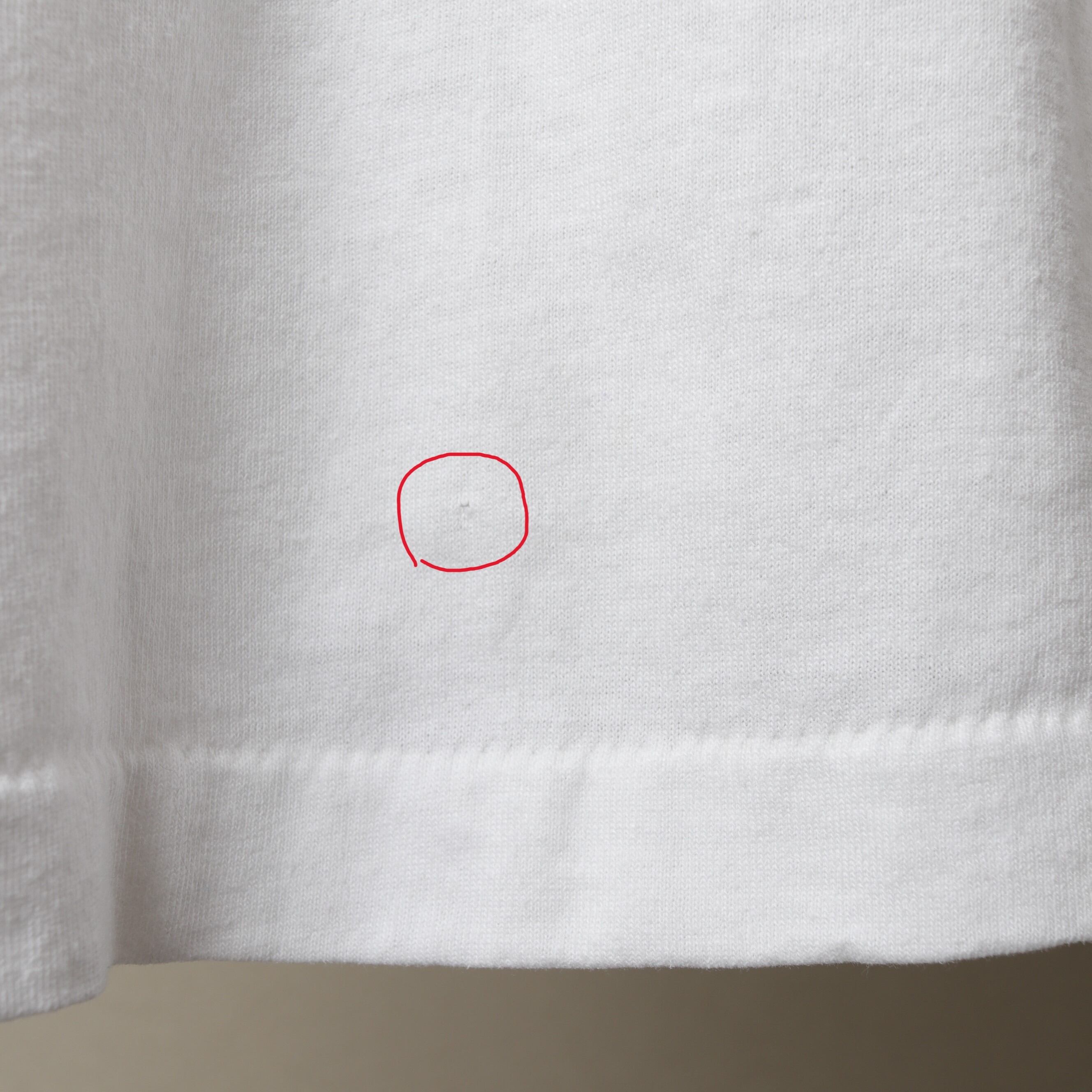 背面裾付近にピンホールがございます(写真11参照)