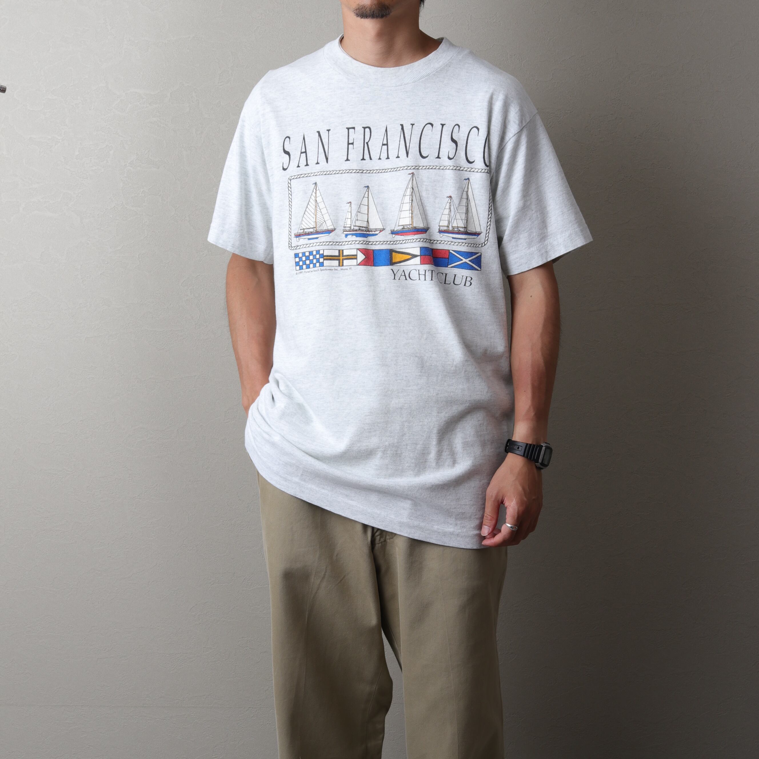 1990's MadeinUSA Vintage Printed T-shirt "SF yachtclub" 111187