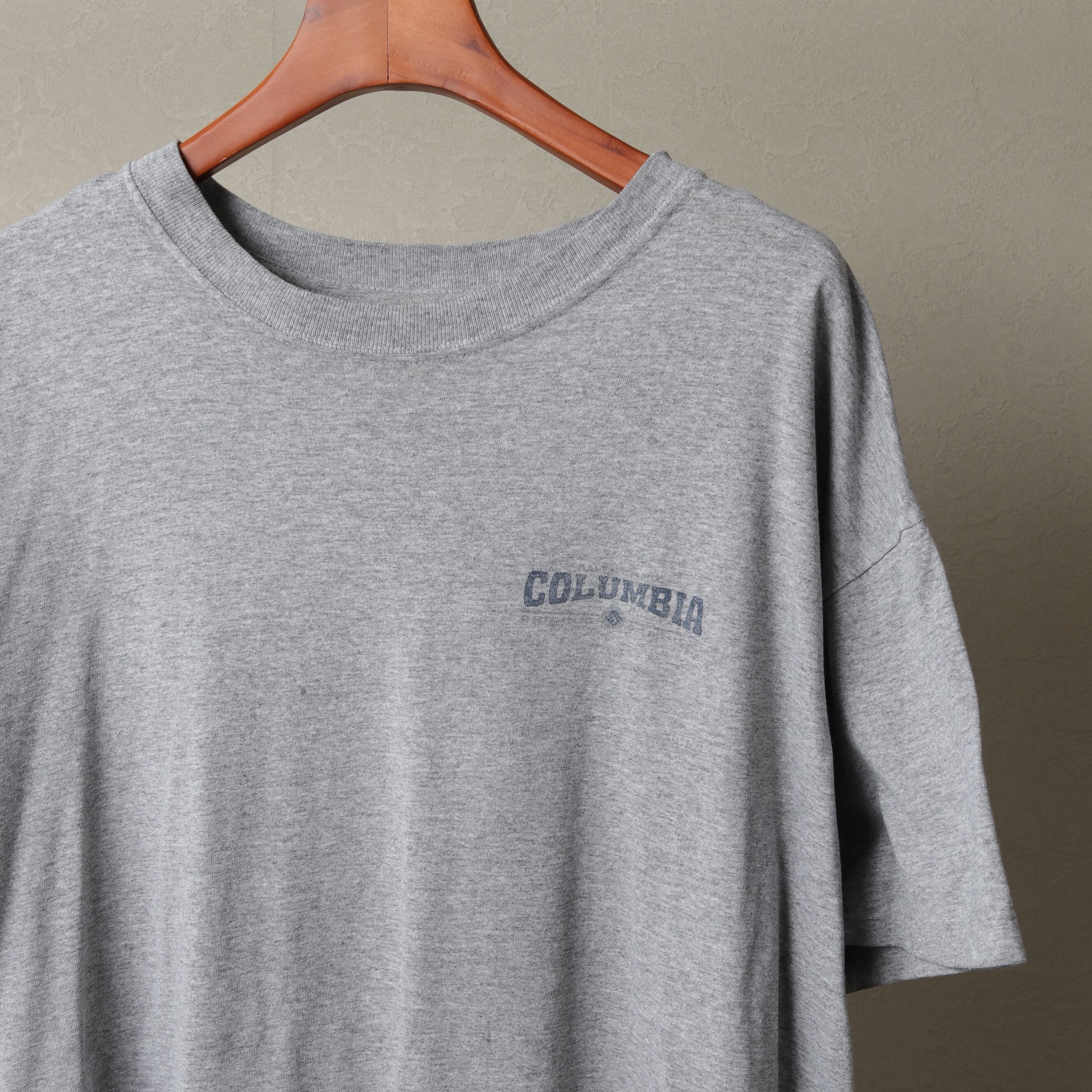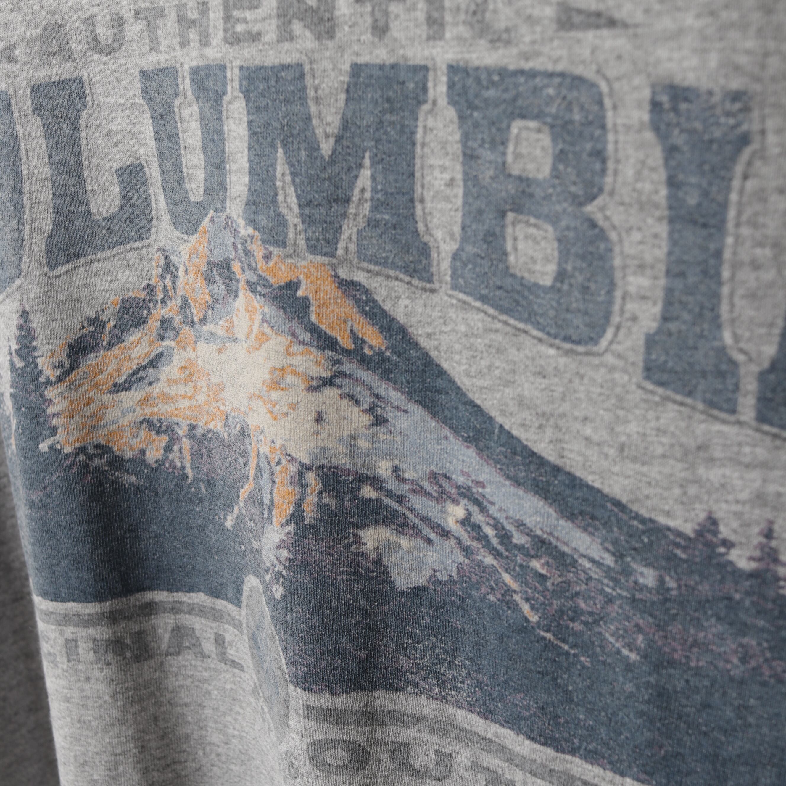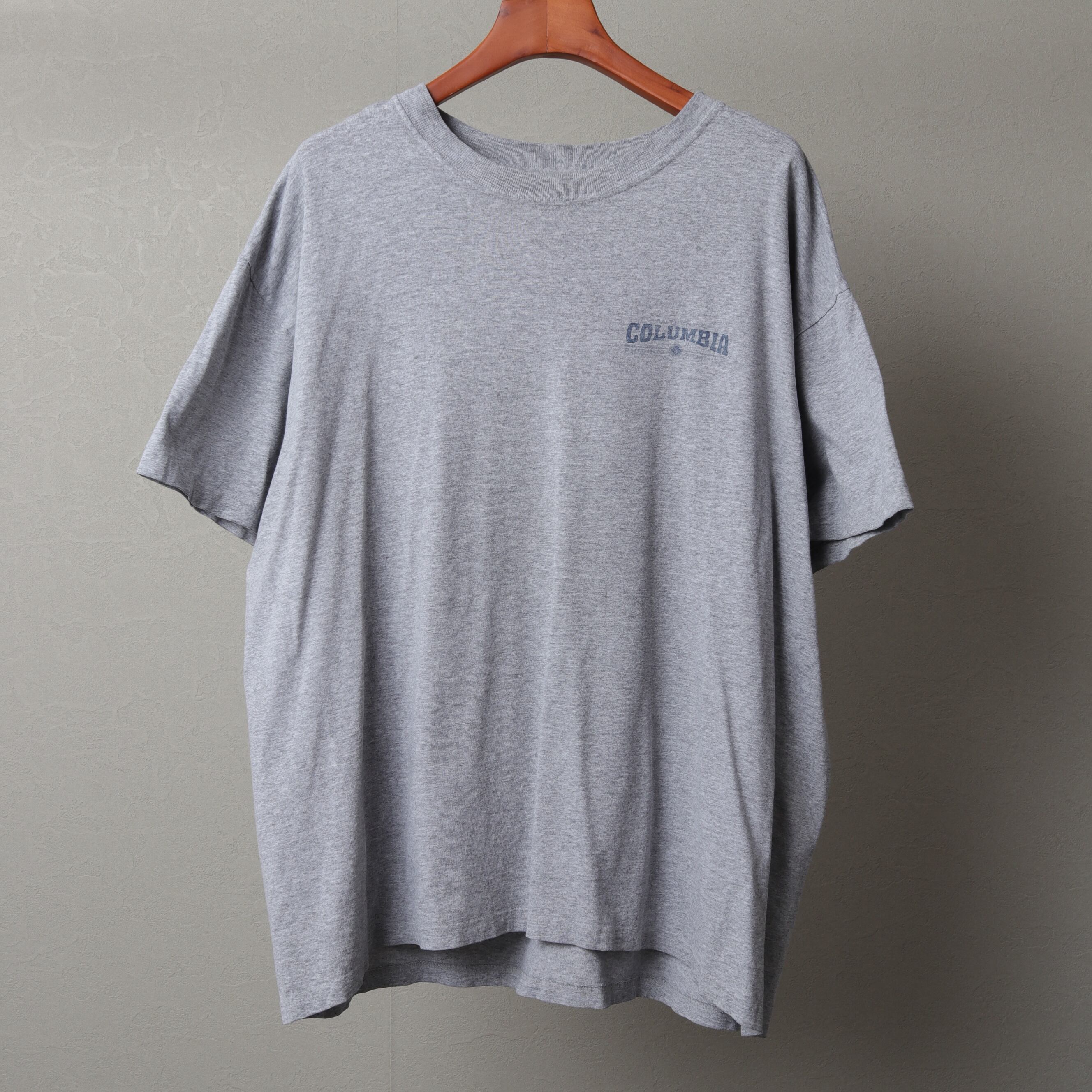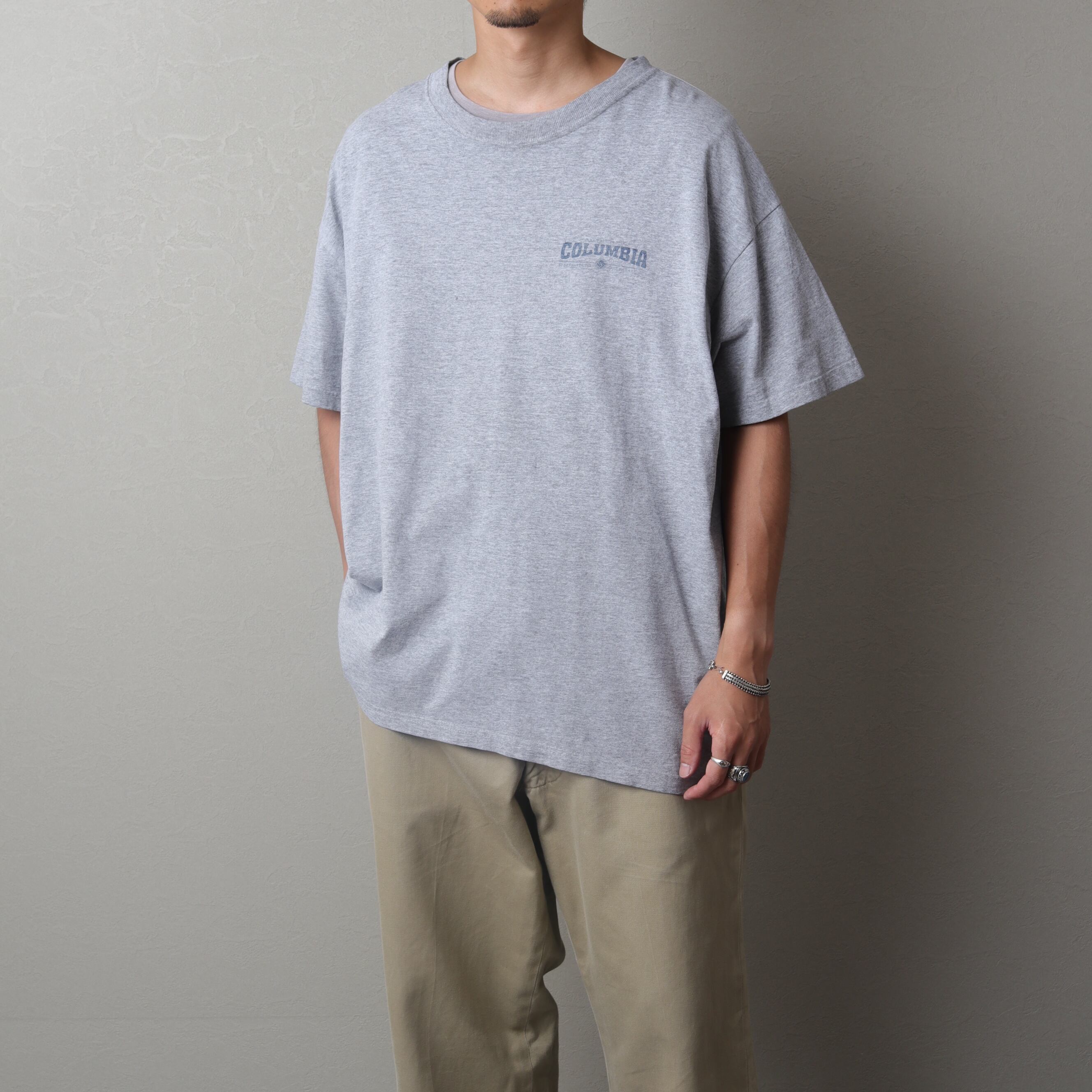 90年代頃のコロンビアから霜降りグレーの両面プリントTee。