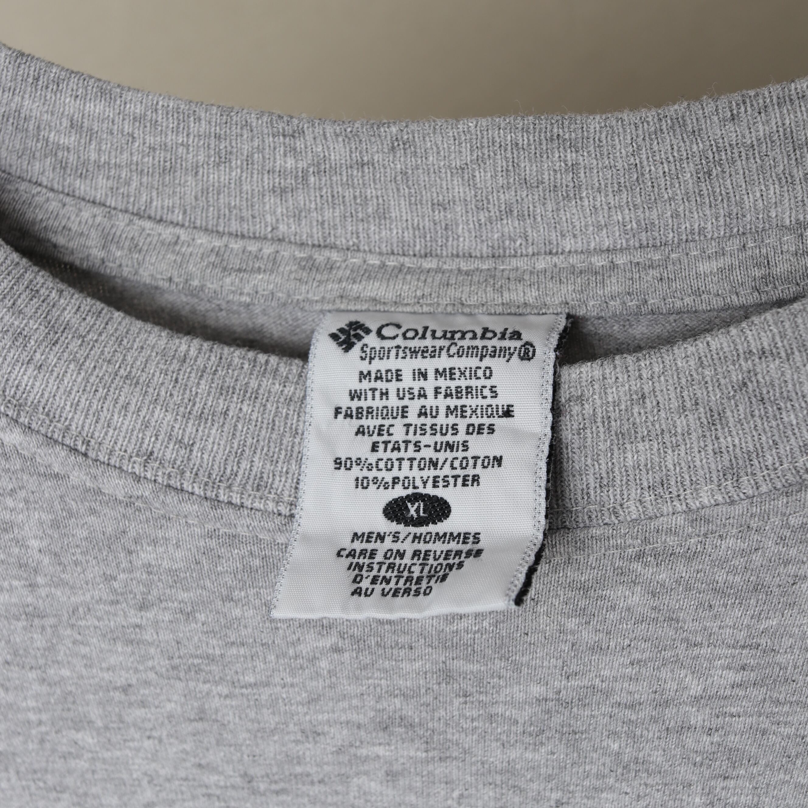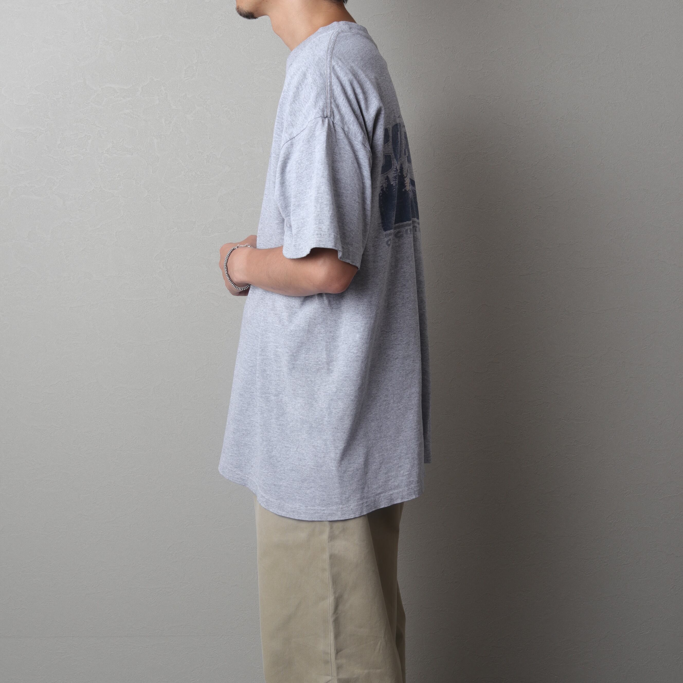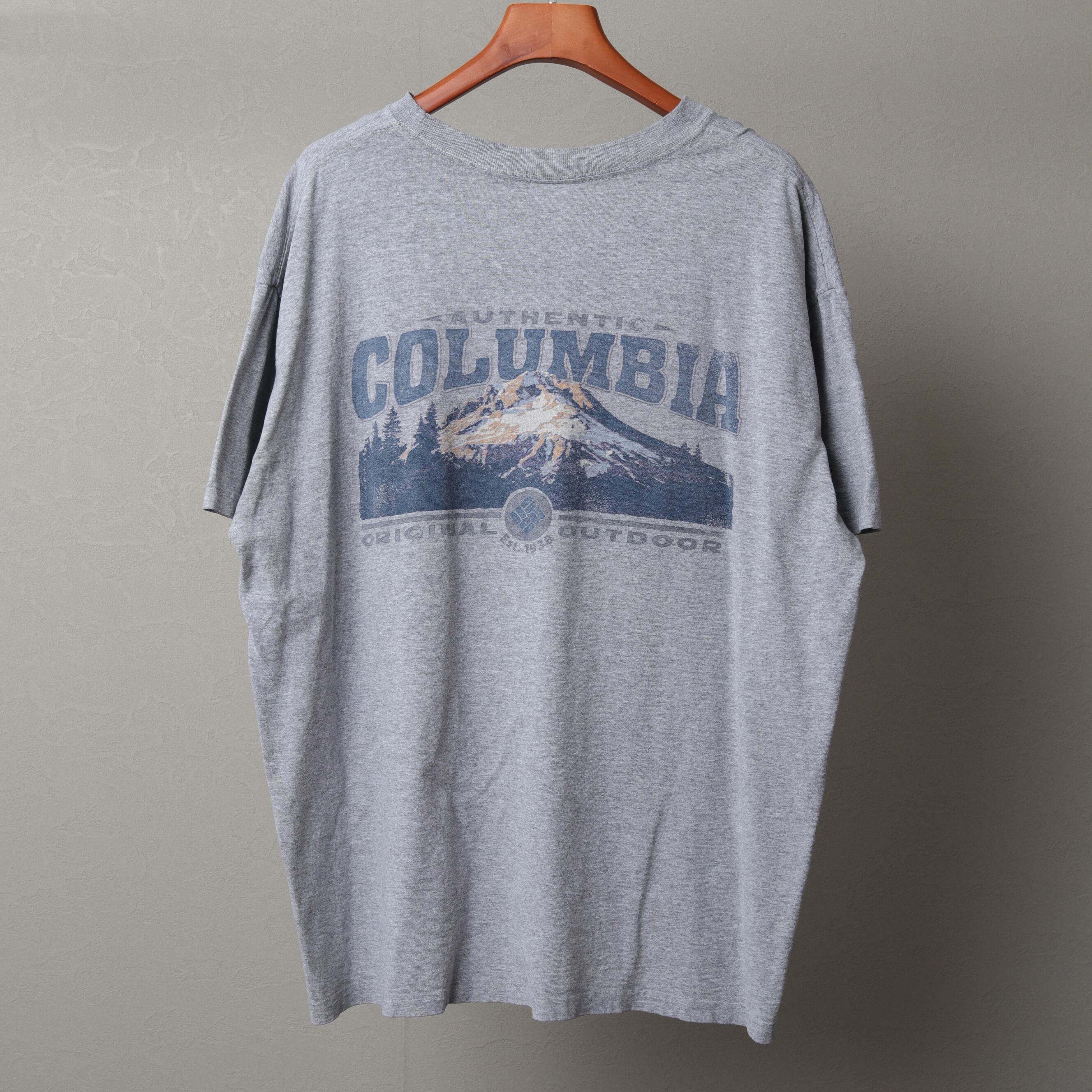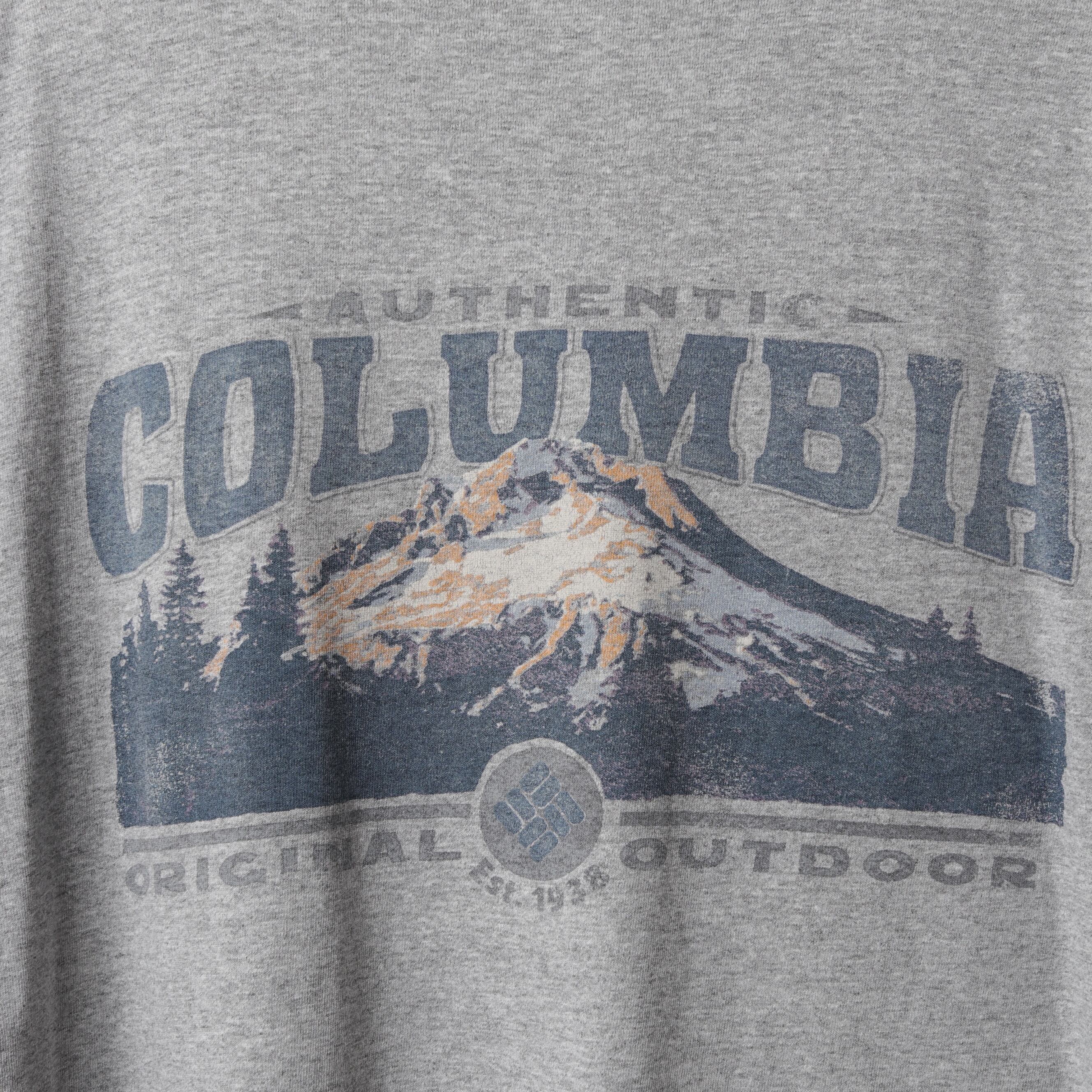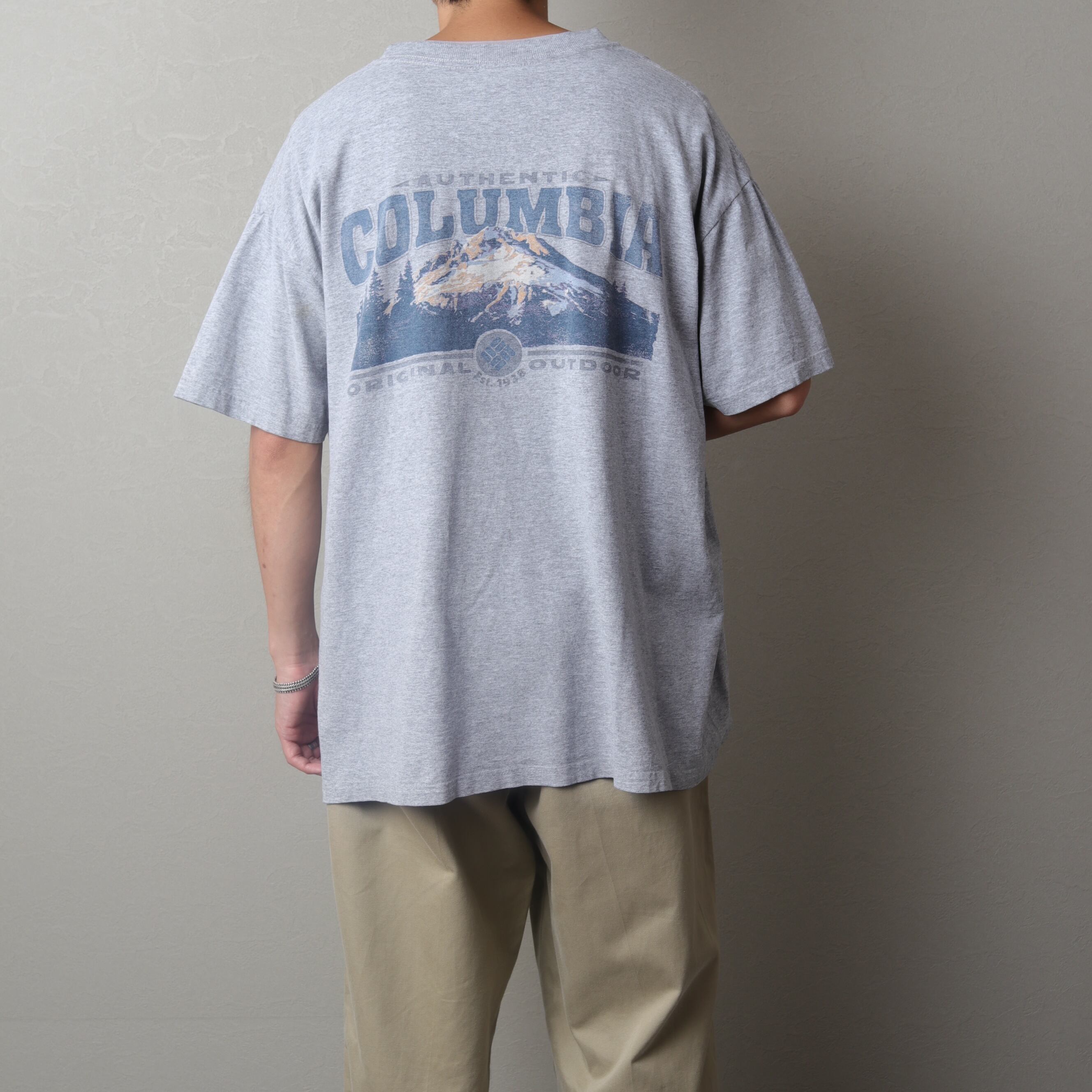 90年代頃のコロンビアから霜降りグレーの両面プリントTee。