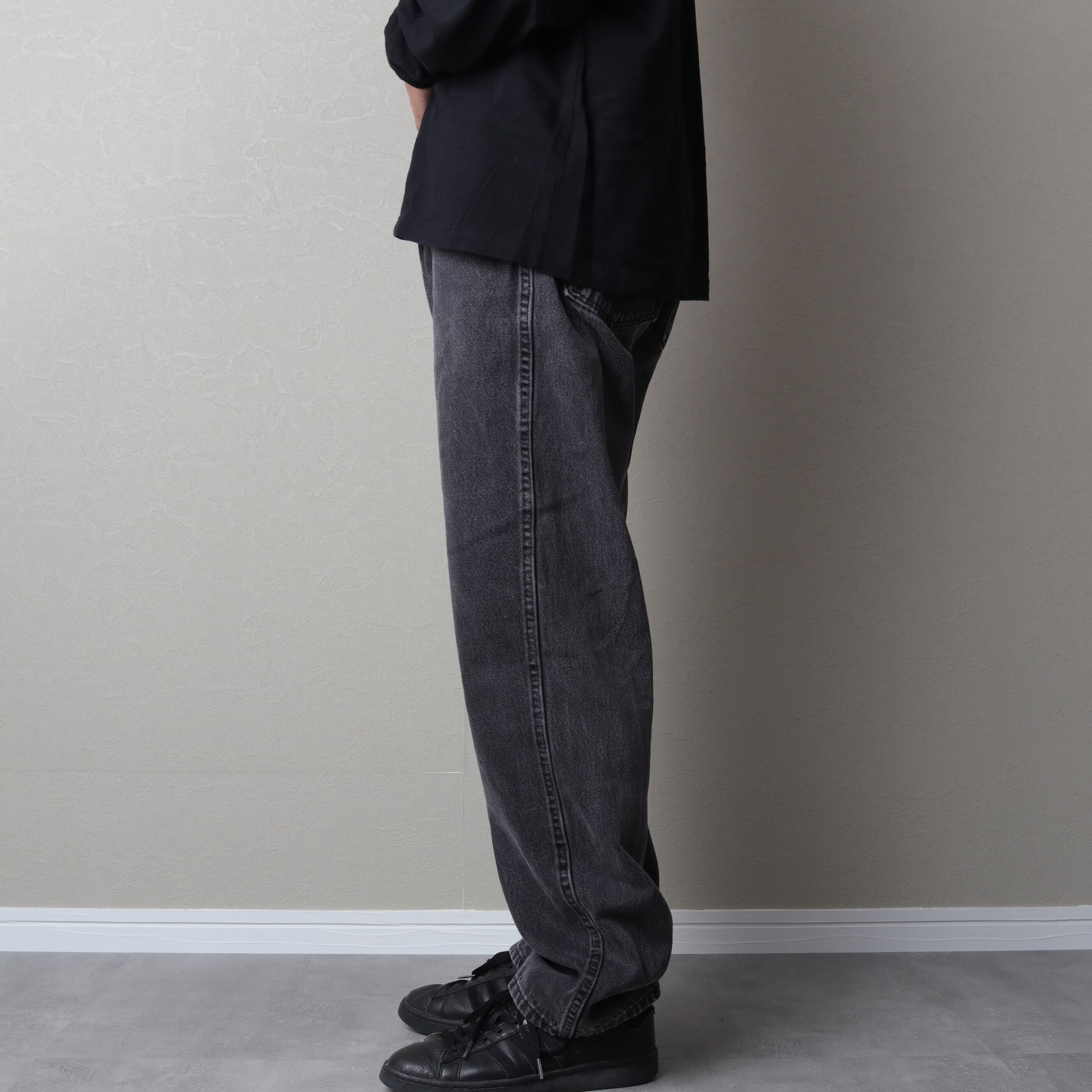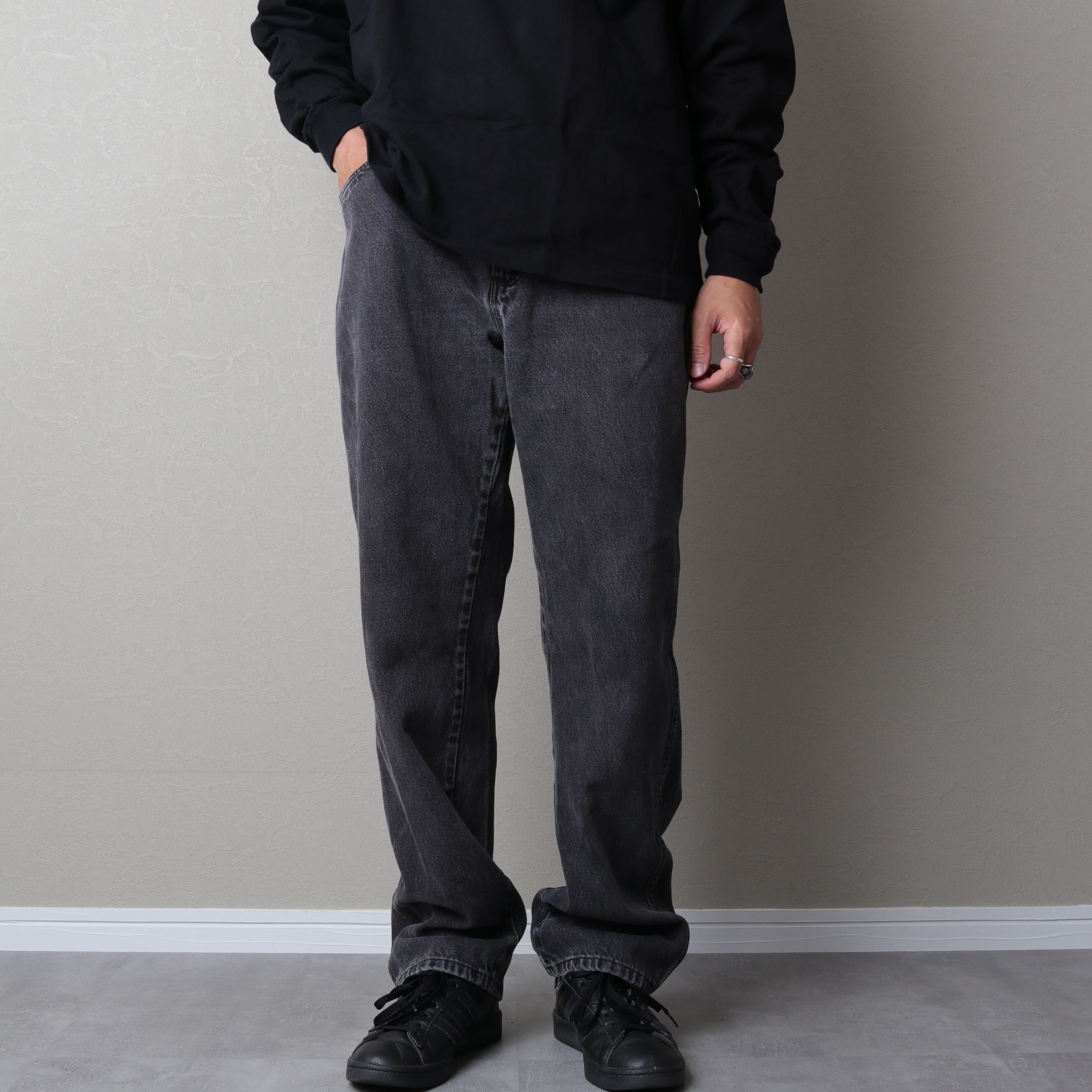 ラングラーのブラックデニムパンツ。
