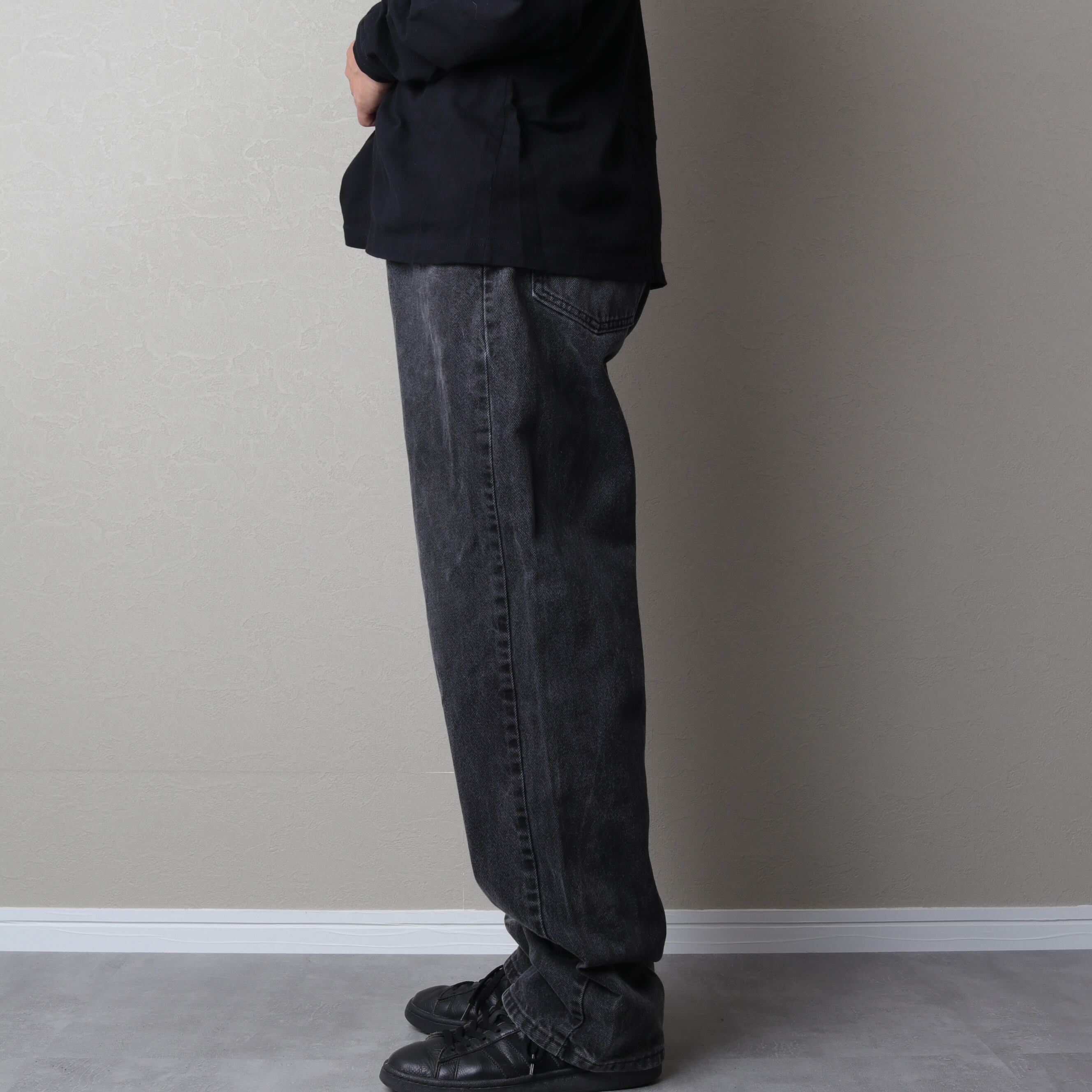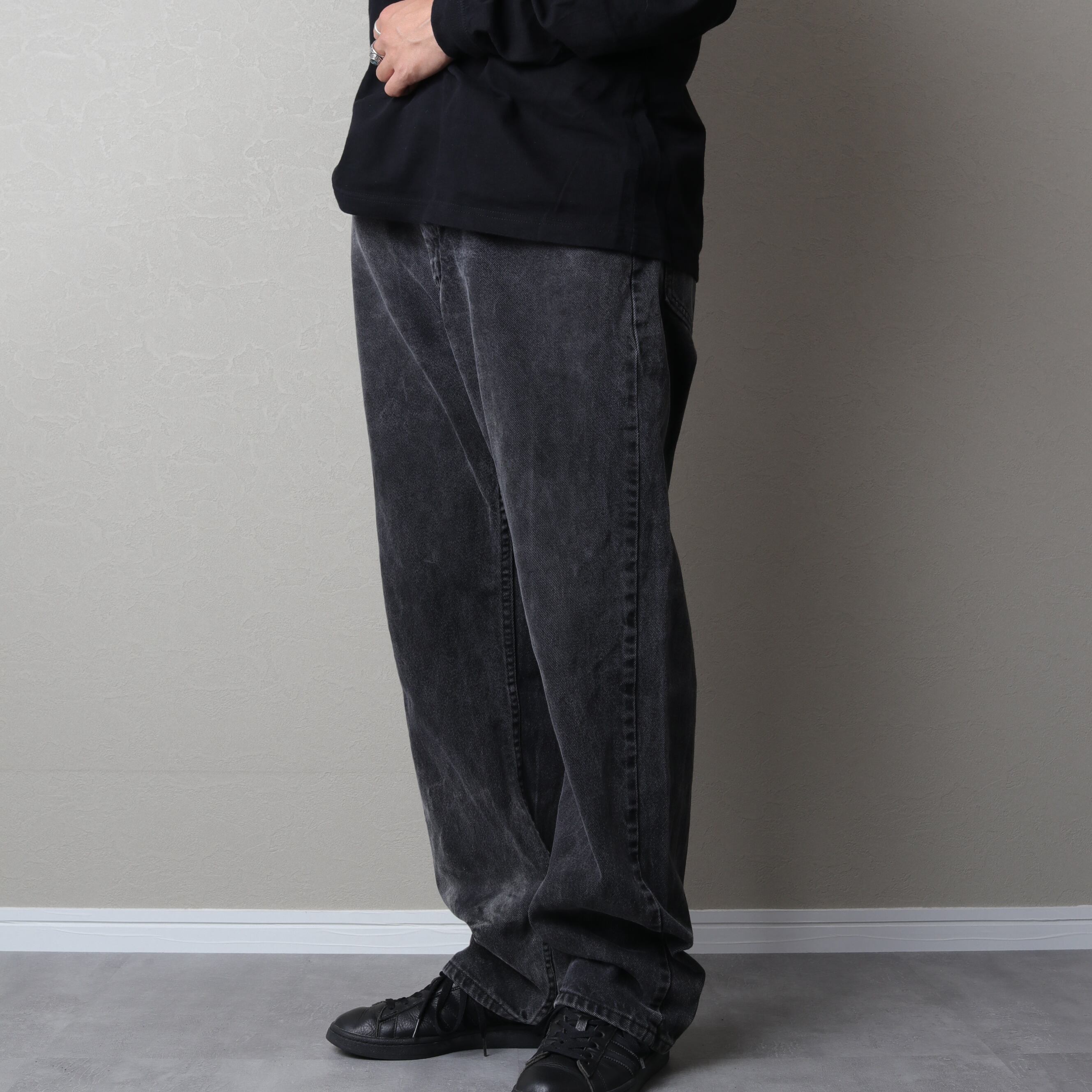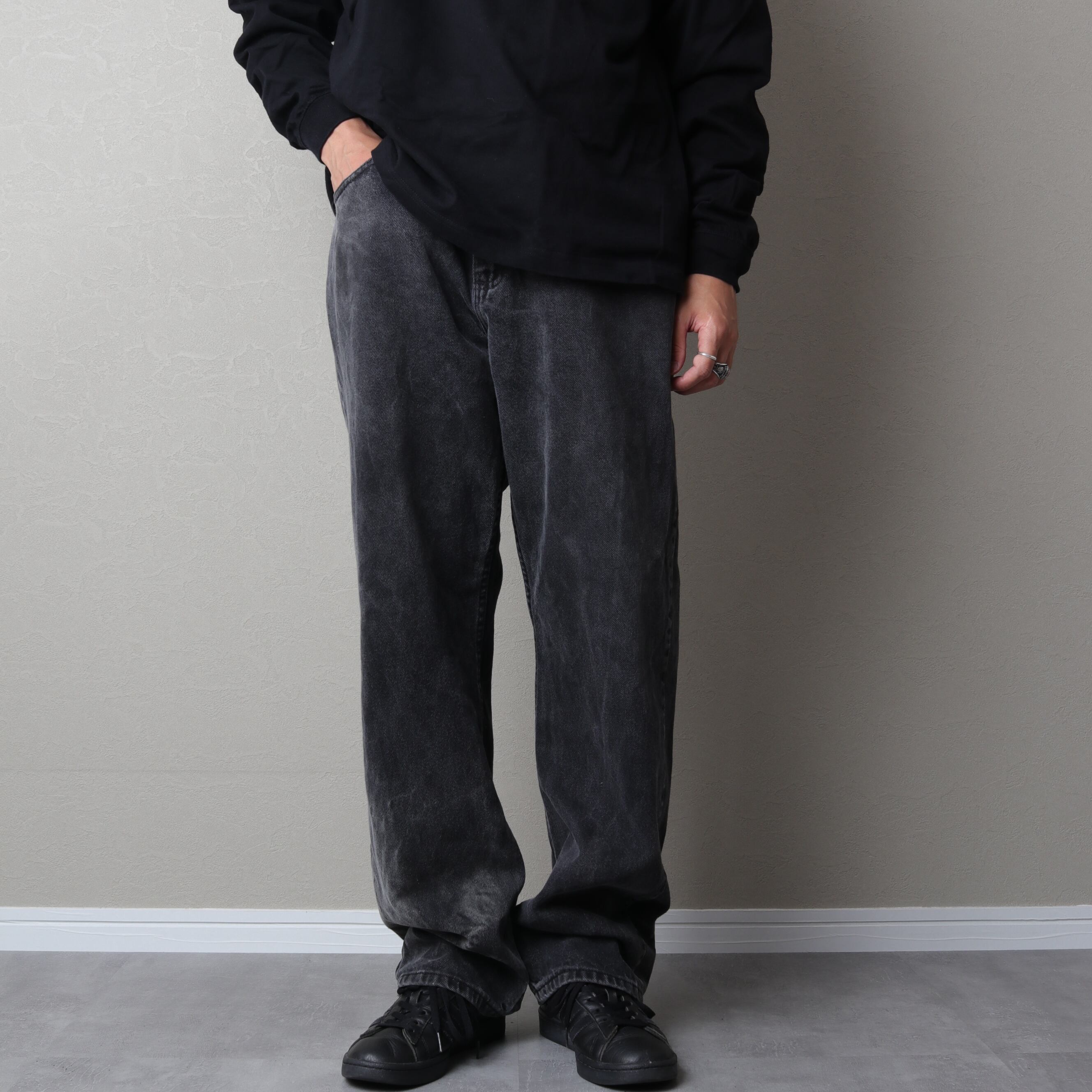 ラングラーのブラックデニムパンツ。