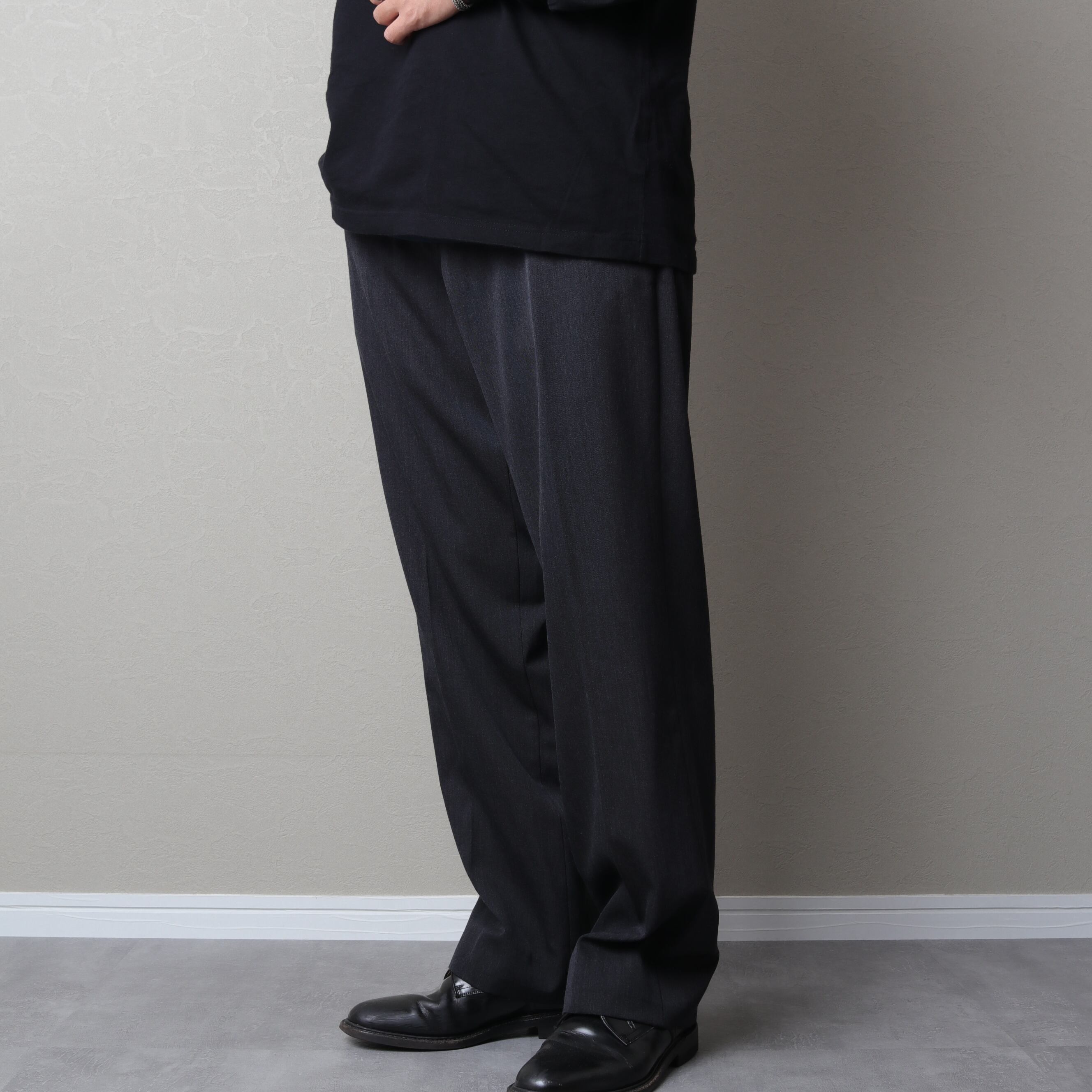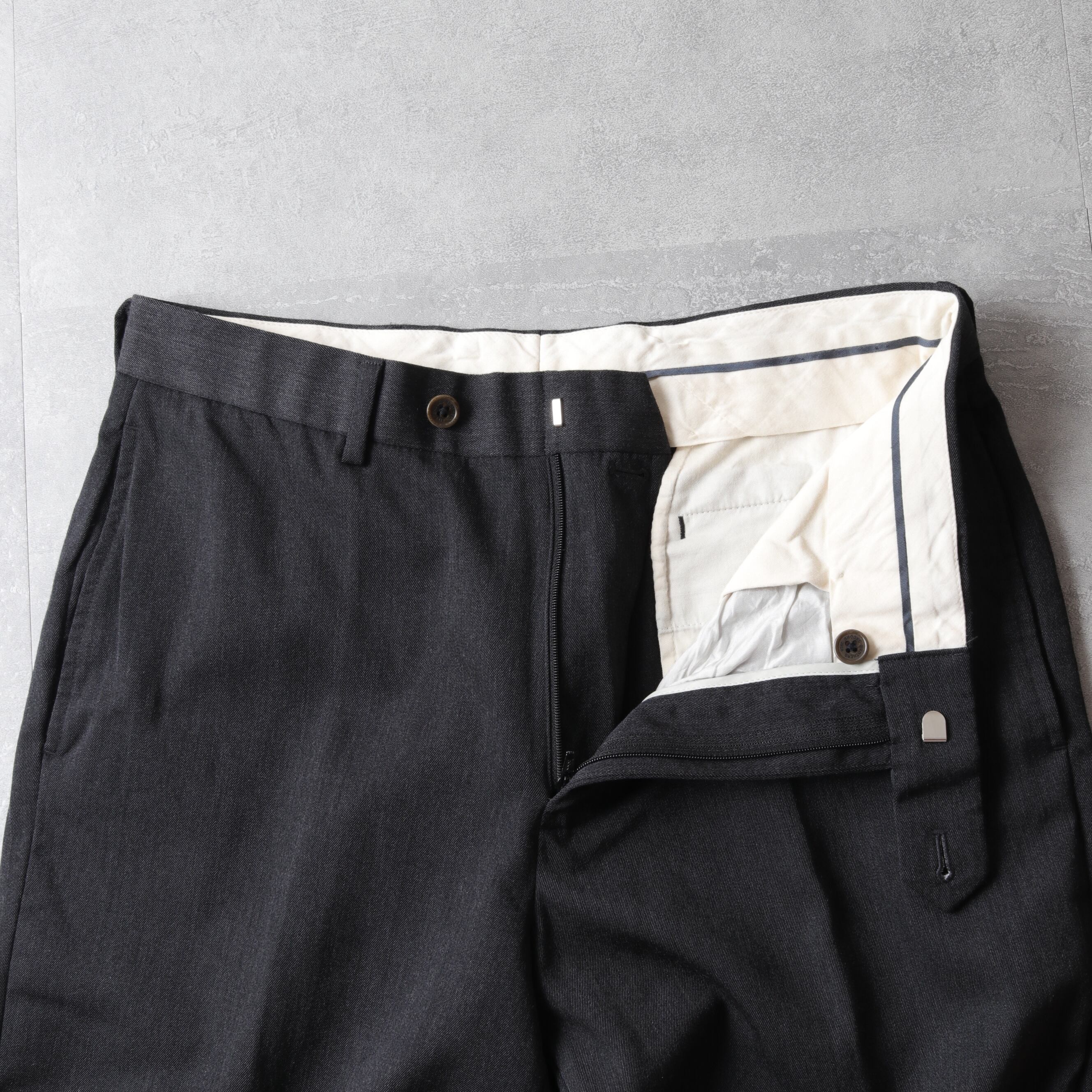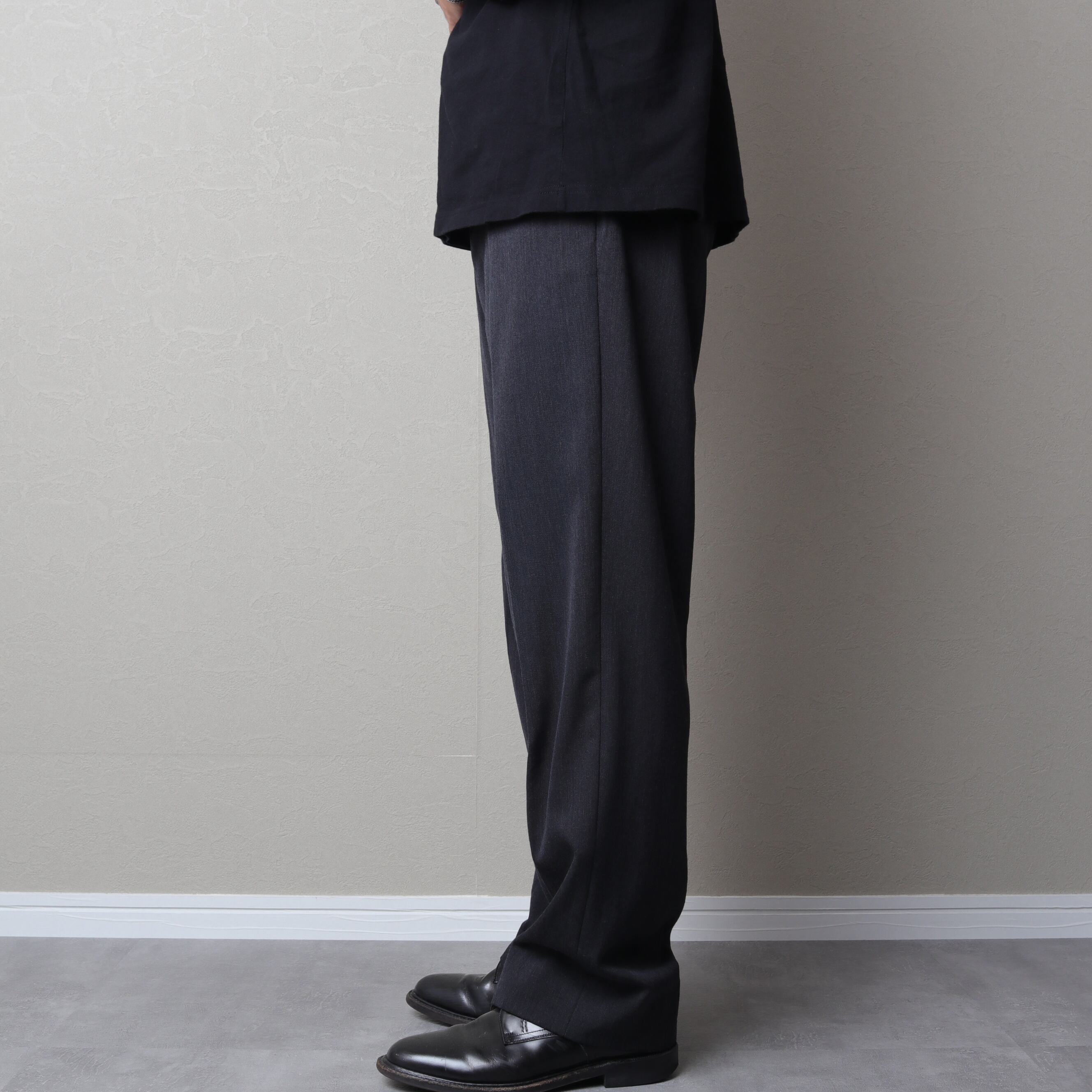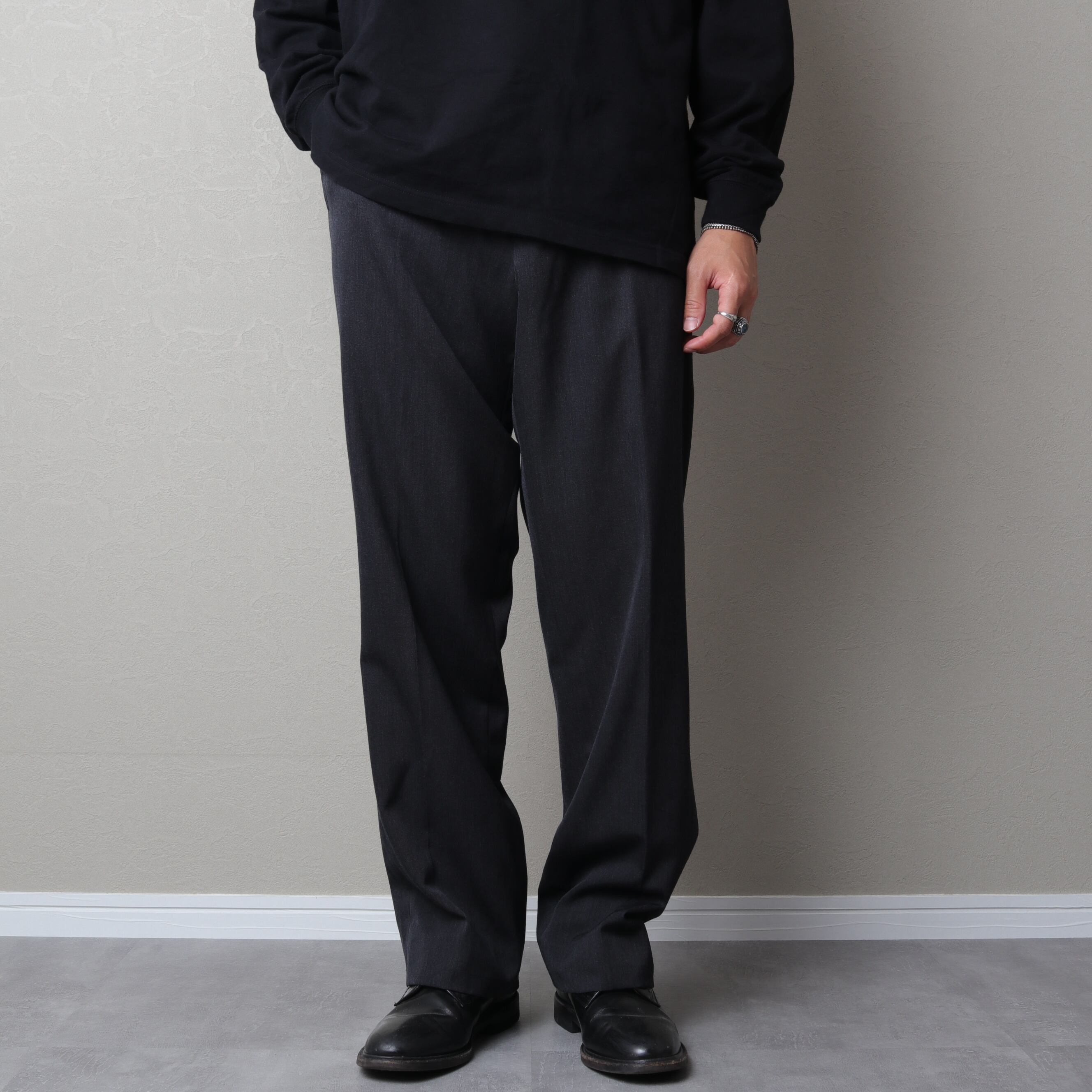 くせがなく万能なノータックで太めのストレートシルエット。