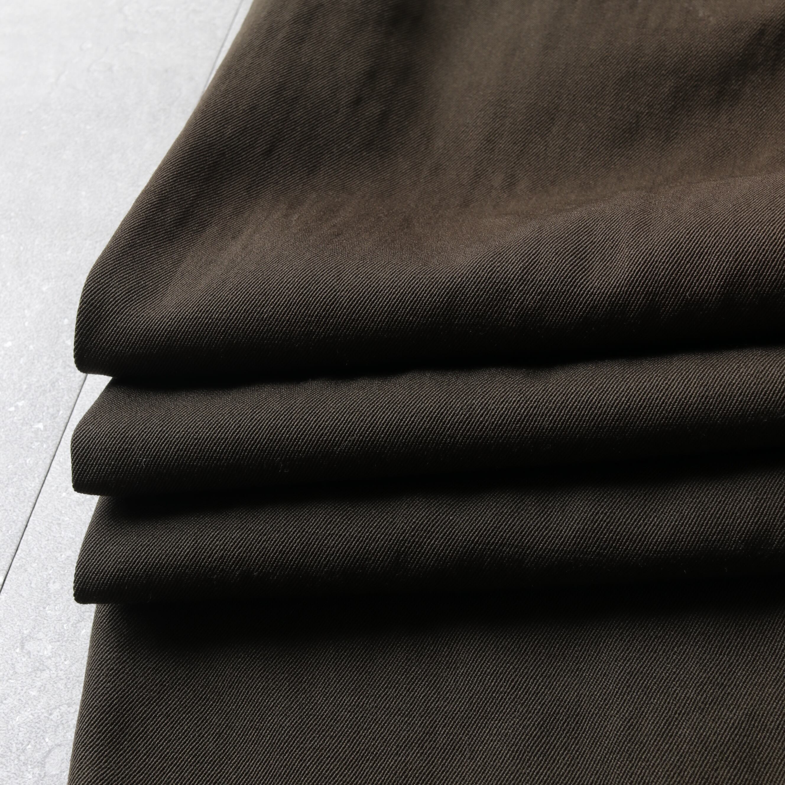 畝のある薄手のウール生地で光沢のあるダークブラウンカラー。