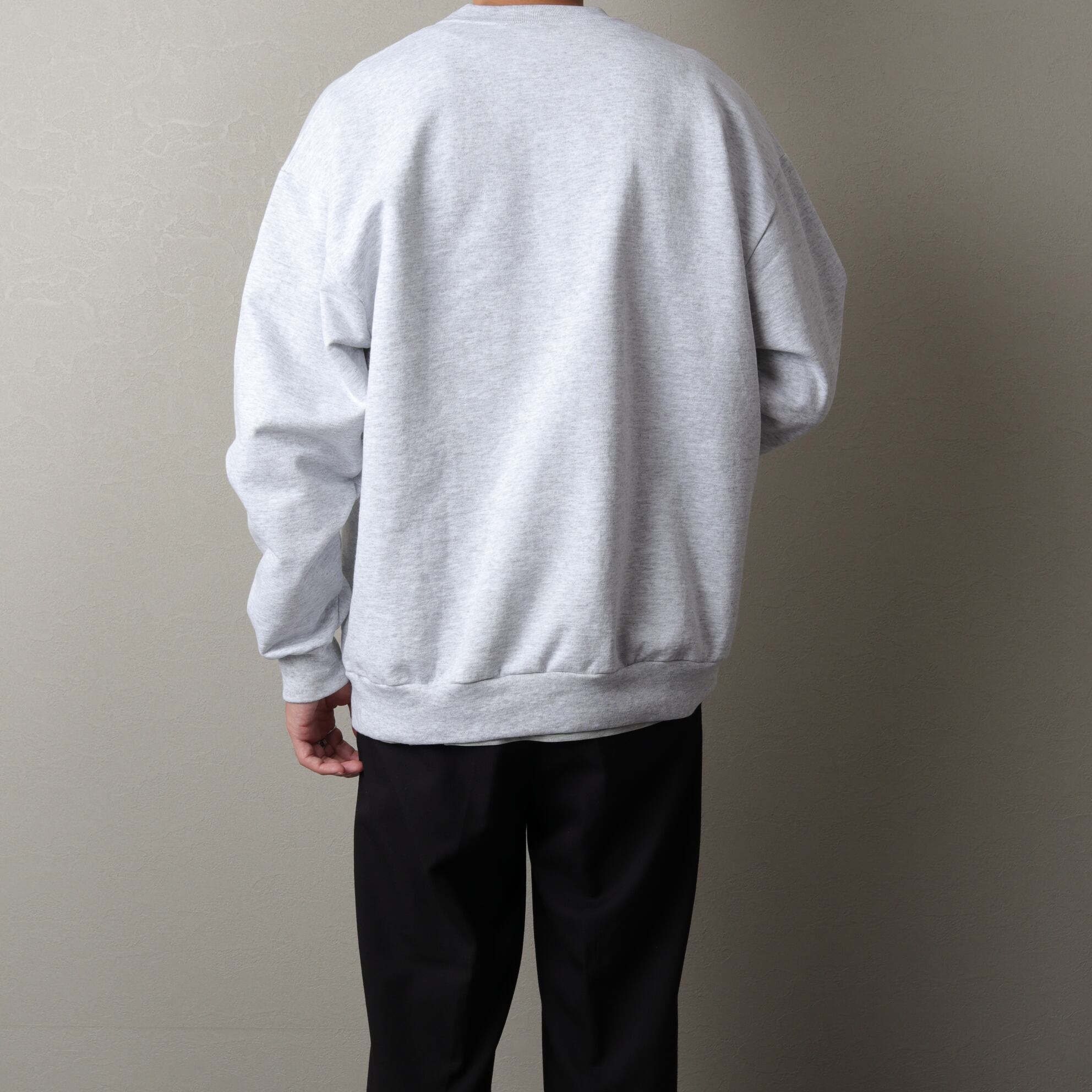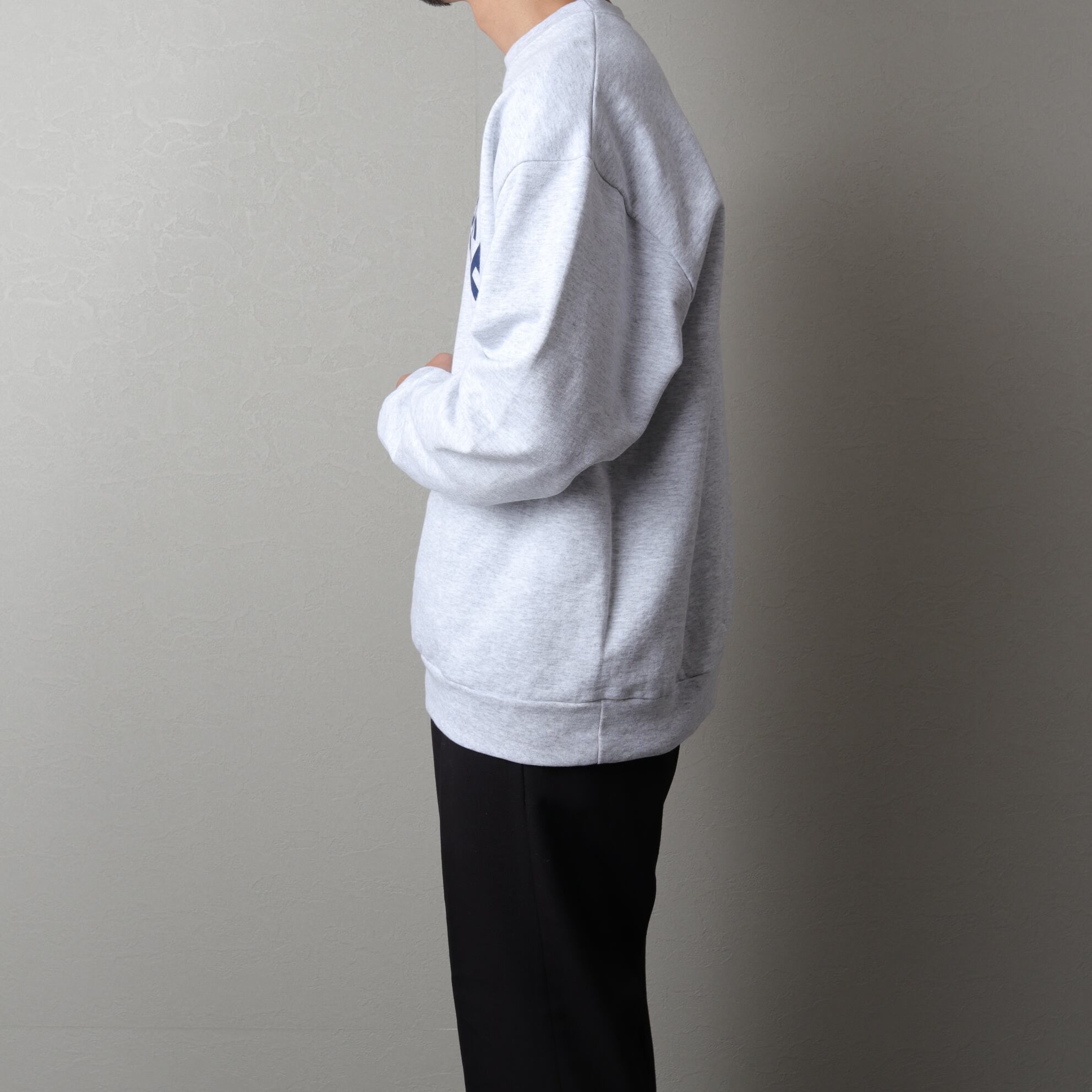 杢グレーの丸胴ボディによくみるとブラックでなくダークネイビーのアーチプリント。