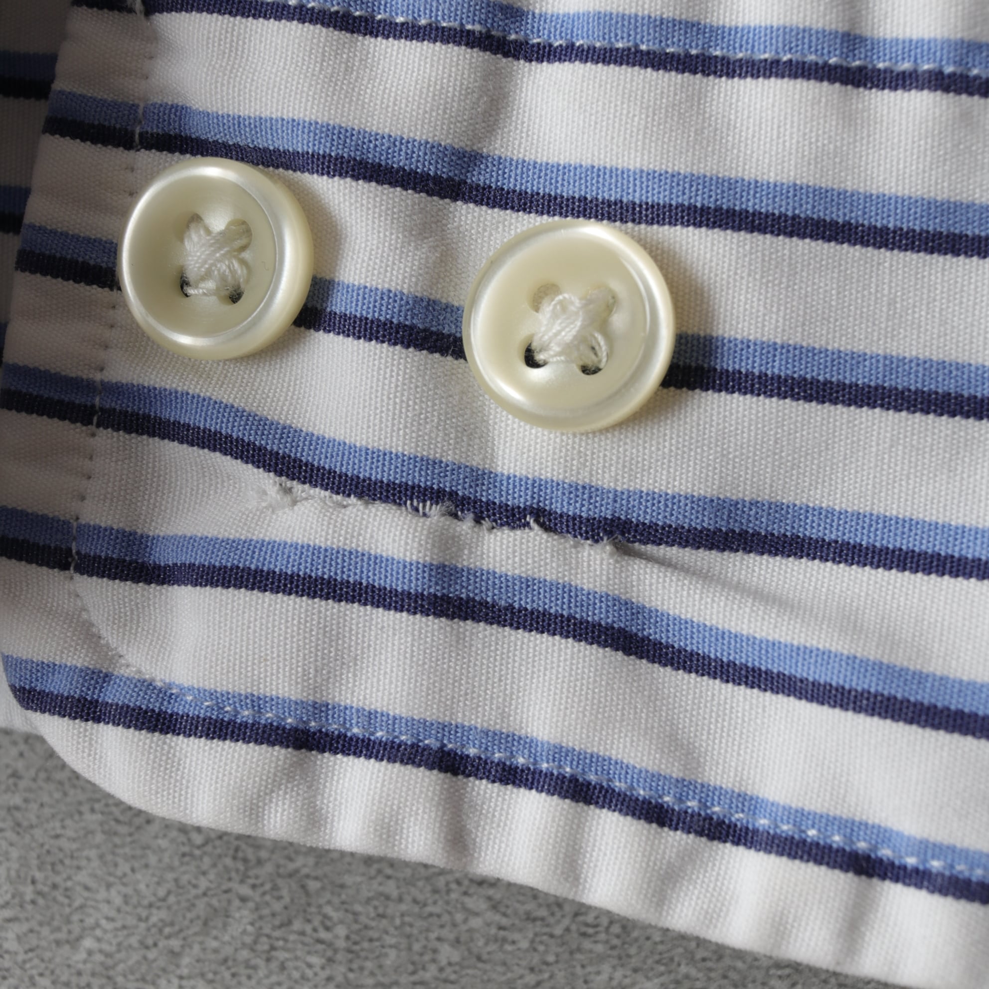 左わきの生地に裂け、右袖の生地に破れがありリペアを行っています(写真10~12)