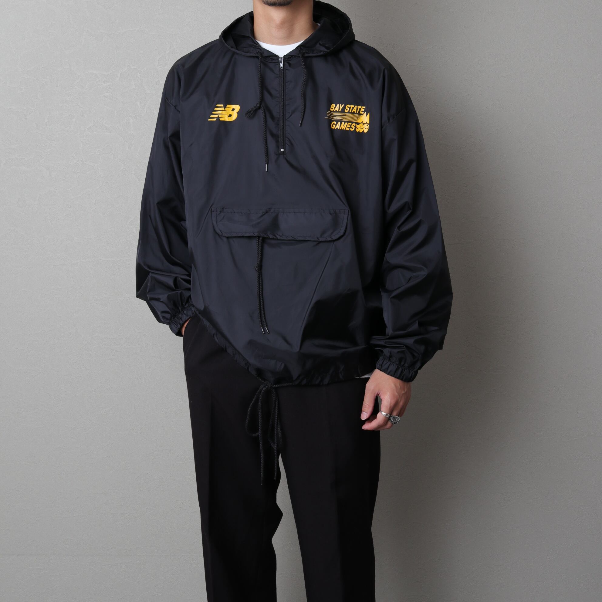 ブラックのアノラックフーディ。
