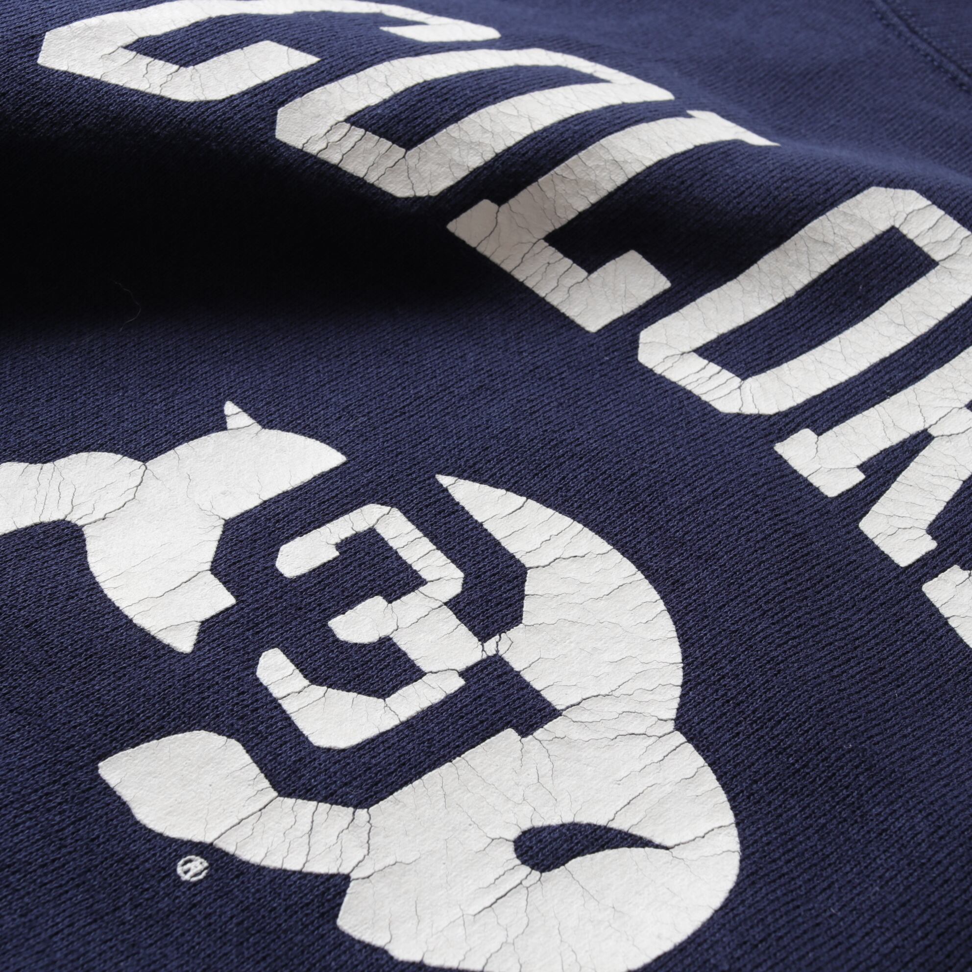 身幅約70cmのボリュームあるシルエットとネイビーにひび割れプリントがたまならい。