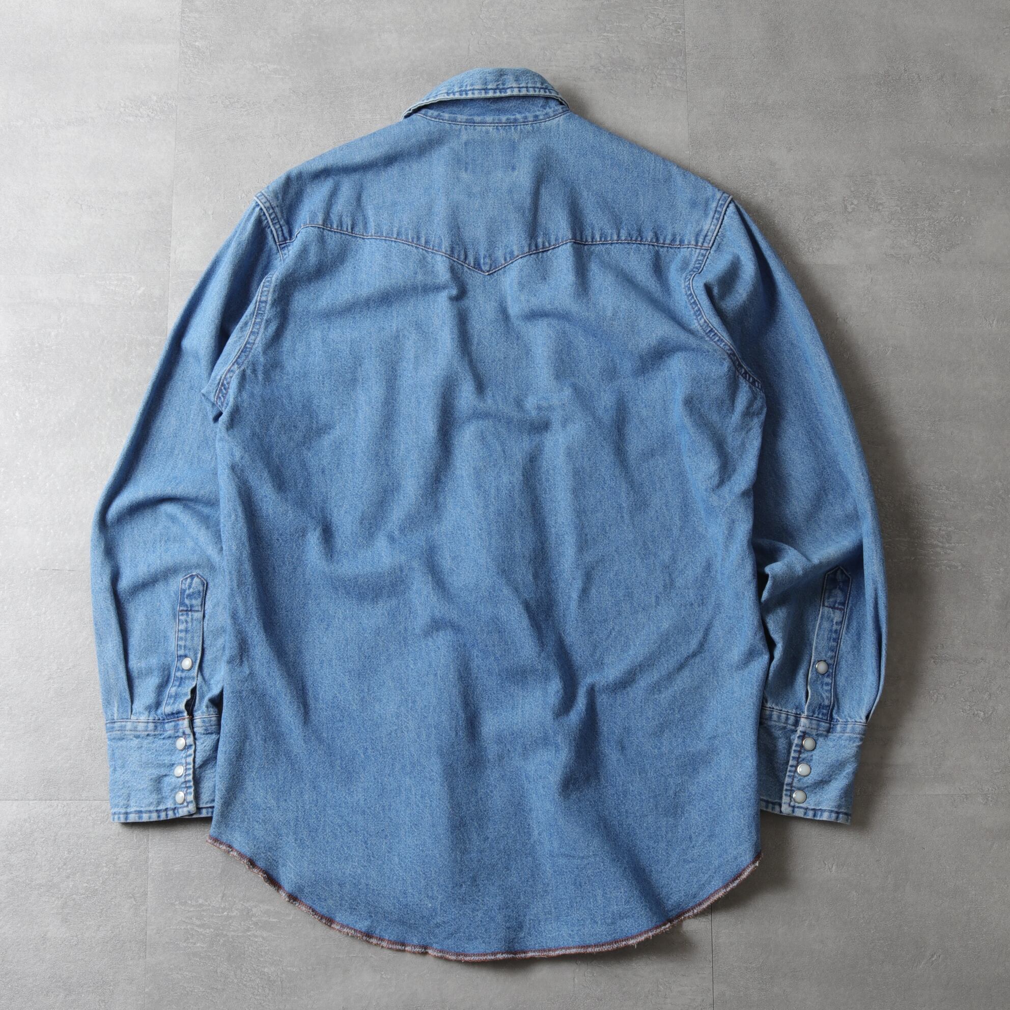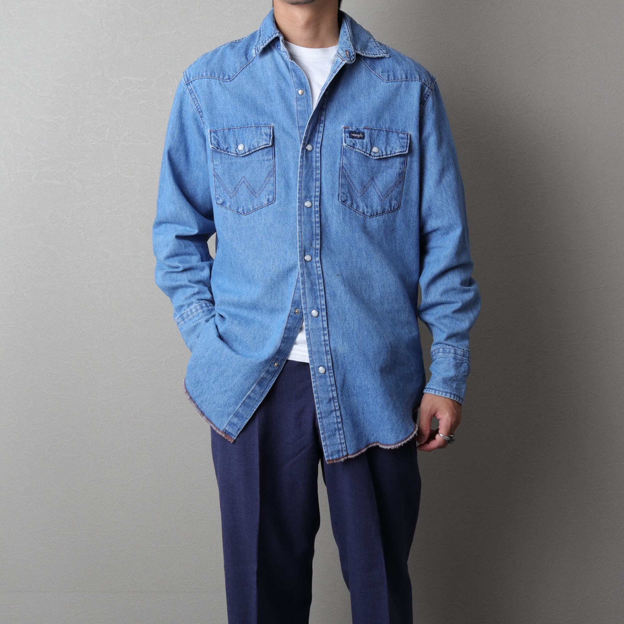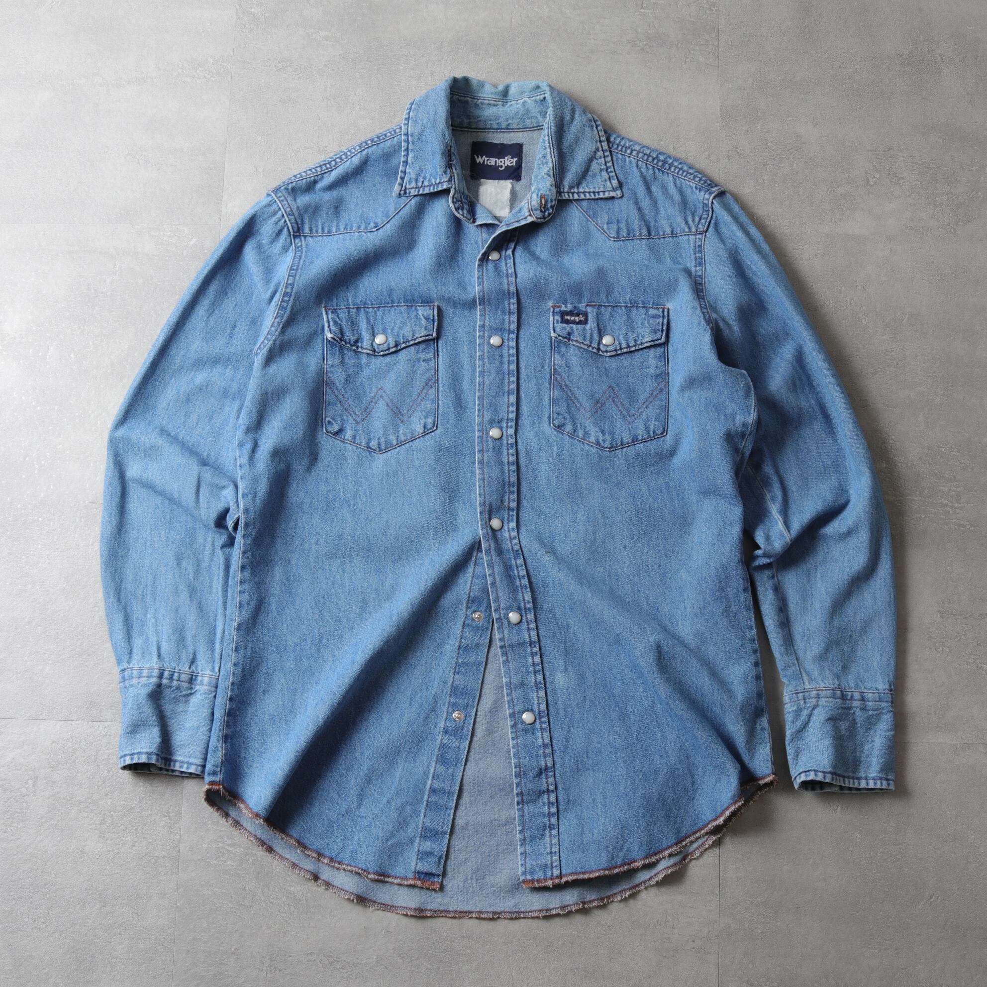 ラングラーのデニムウエスタンシャツ。