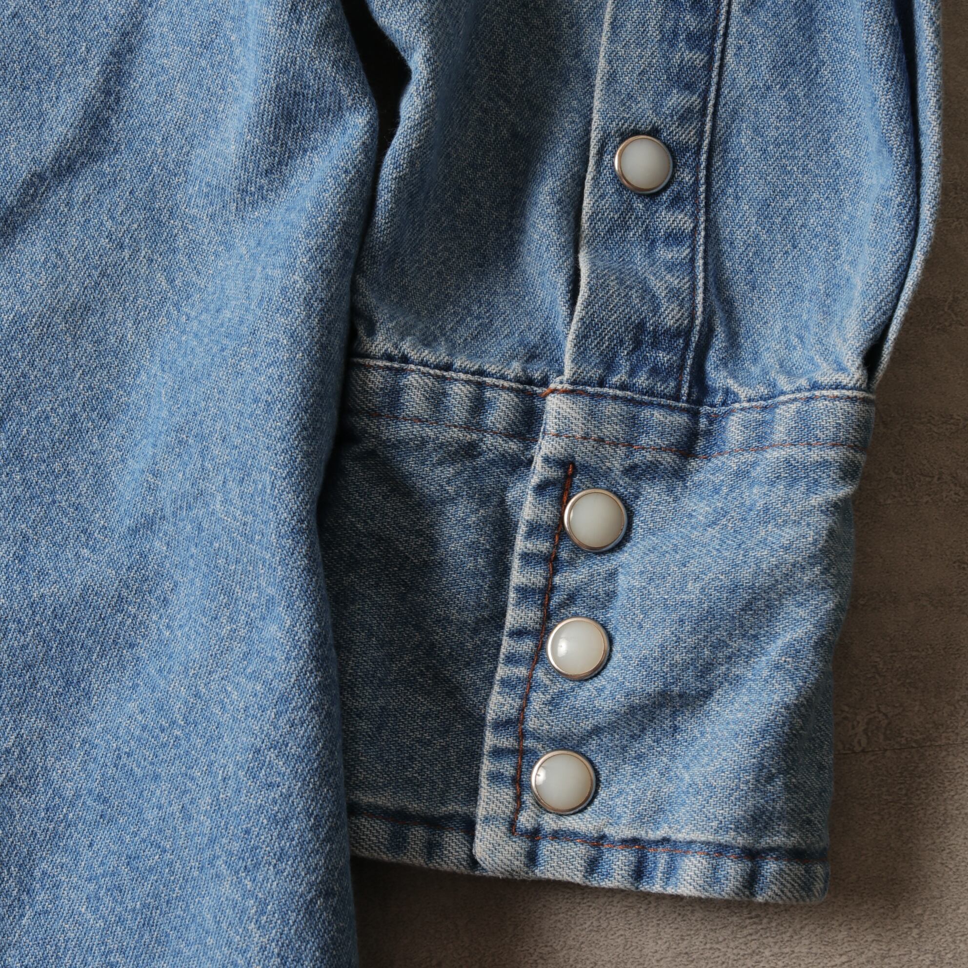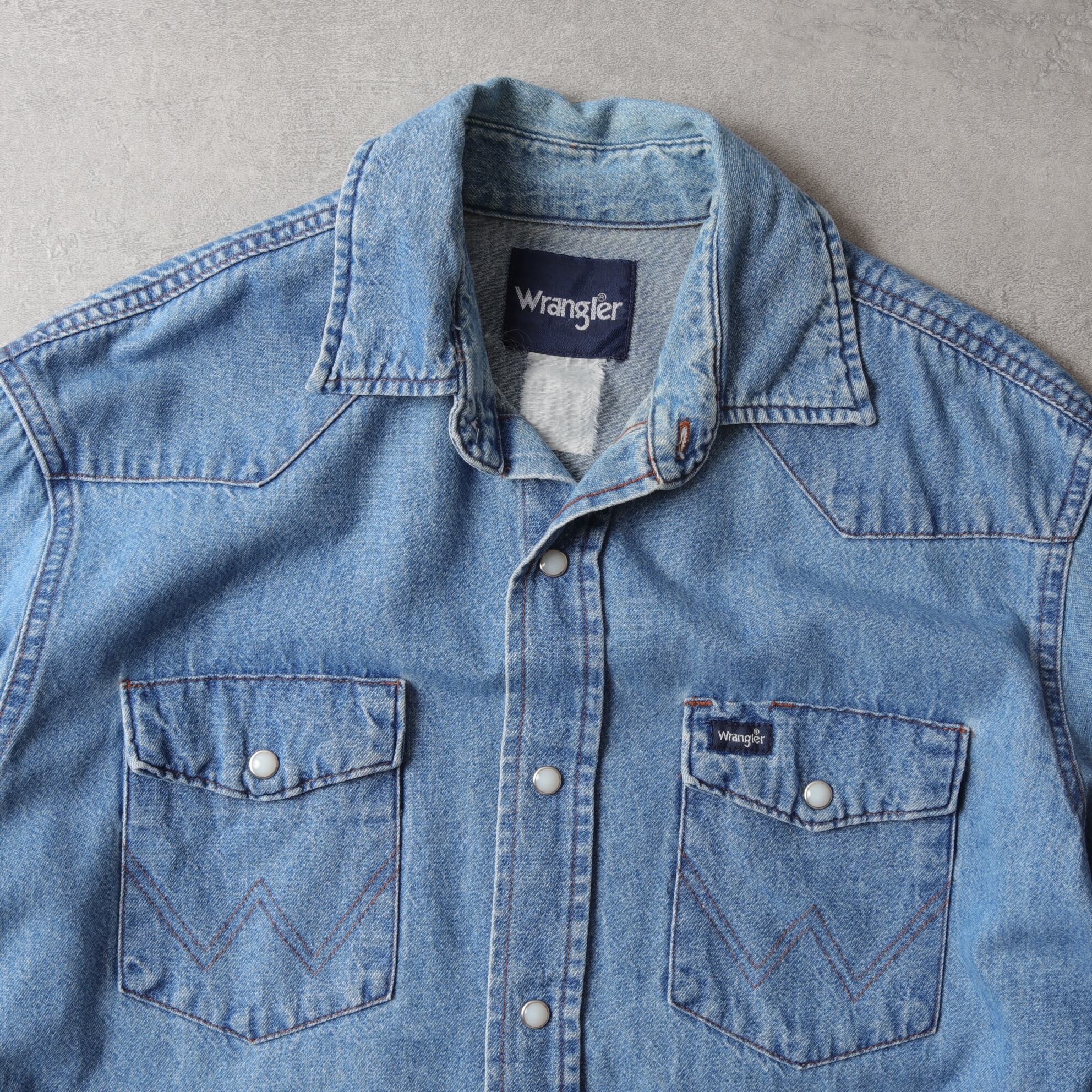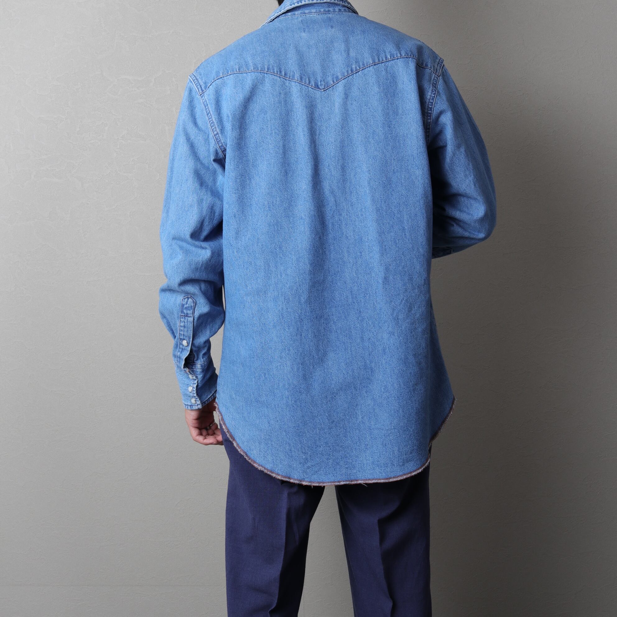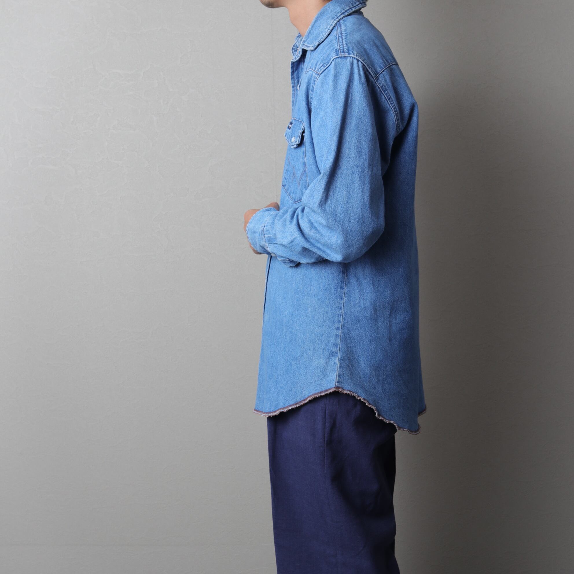 ラングラーのデニムウエスタンシャツ。