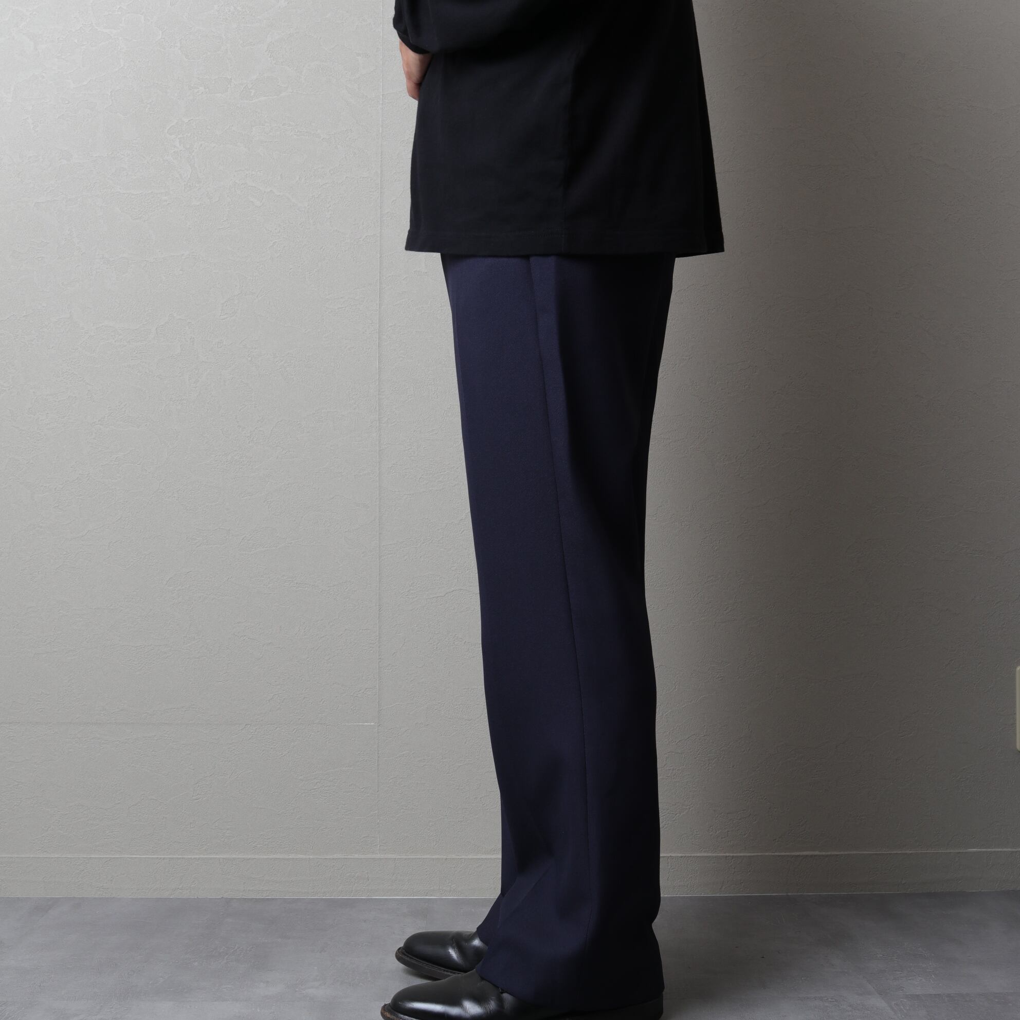 腰回りがすっきりしたノータックのストレートシルエット。ジップはタロン◎