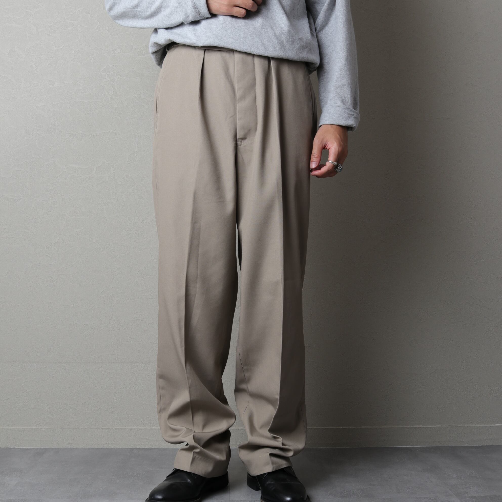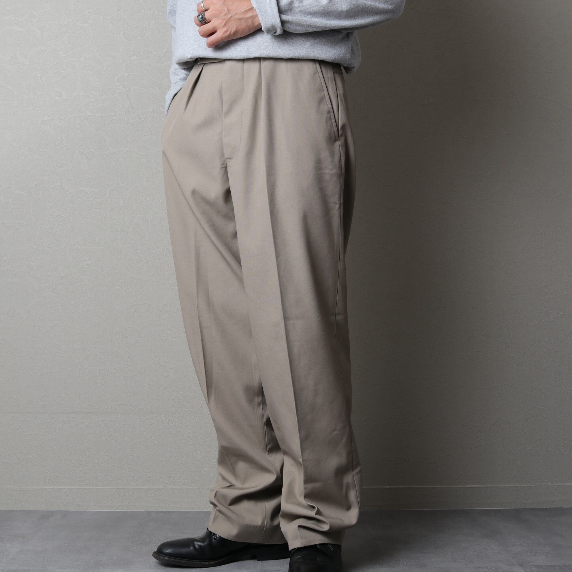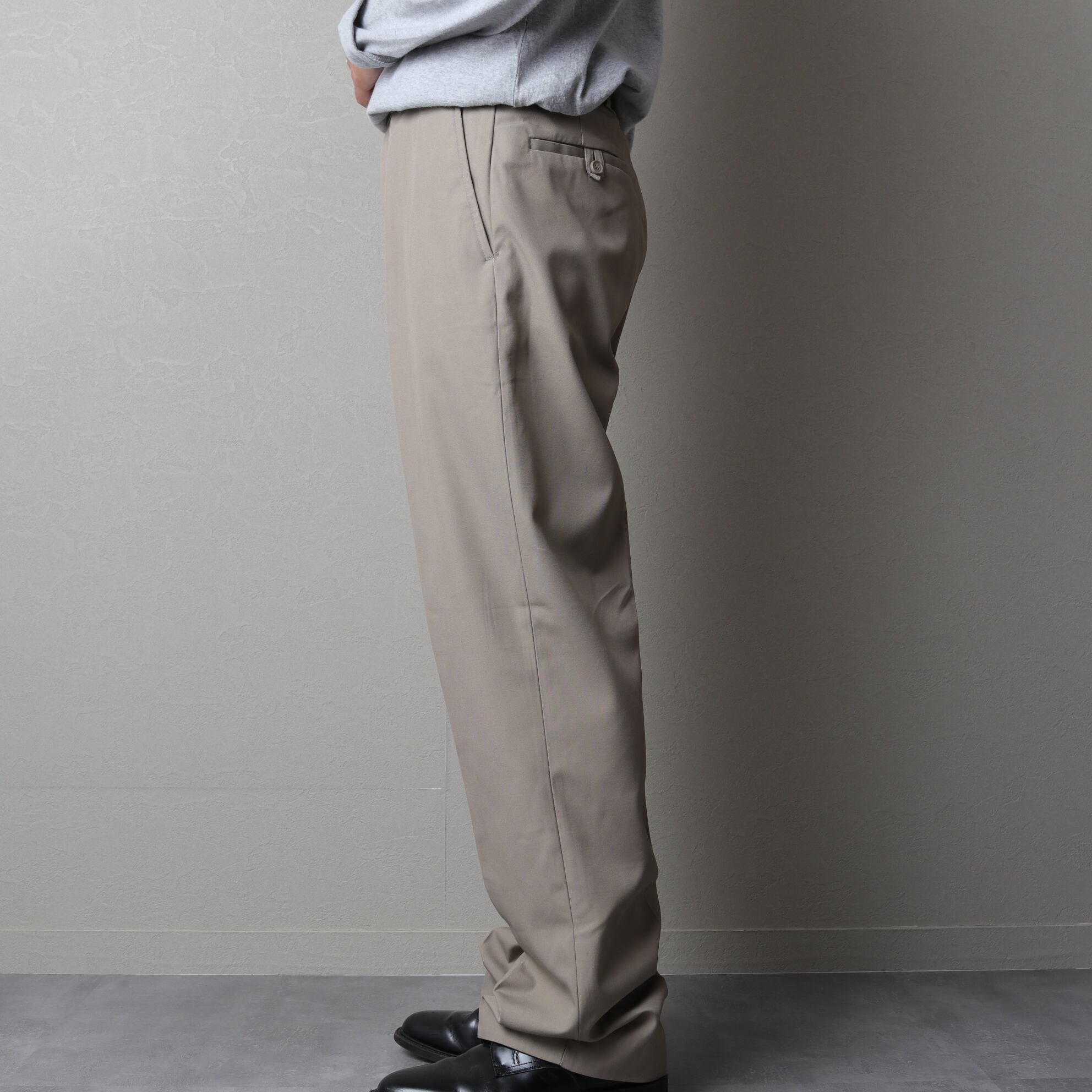 プリーツが入り程よい太さがあり、スタイリングの汎用性も高い一本。