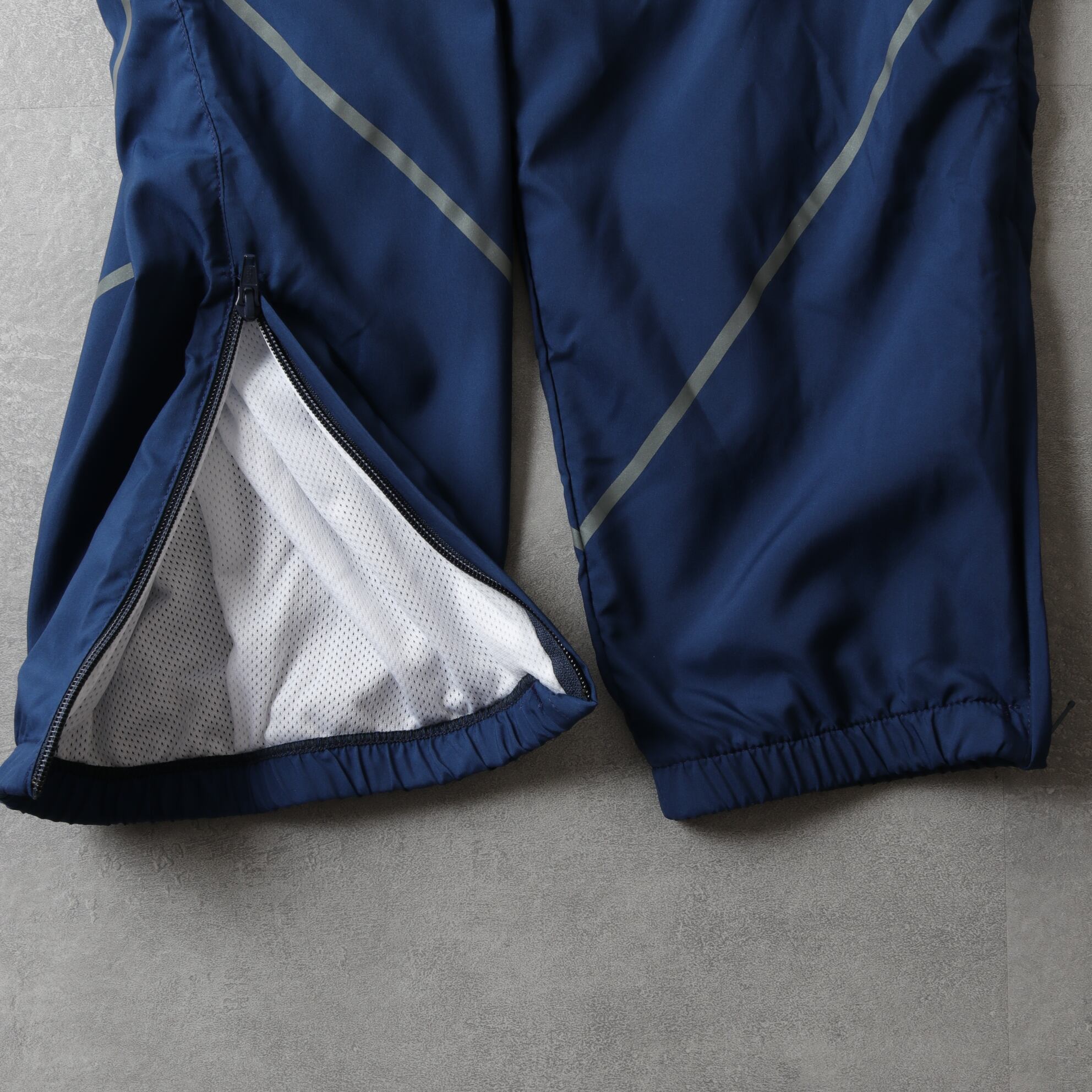 ポリエステル地のイージーパンツでメッシュライニング付き。