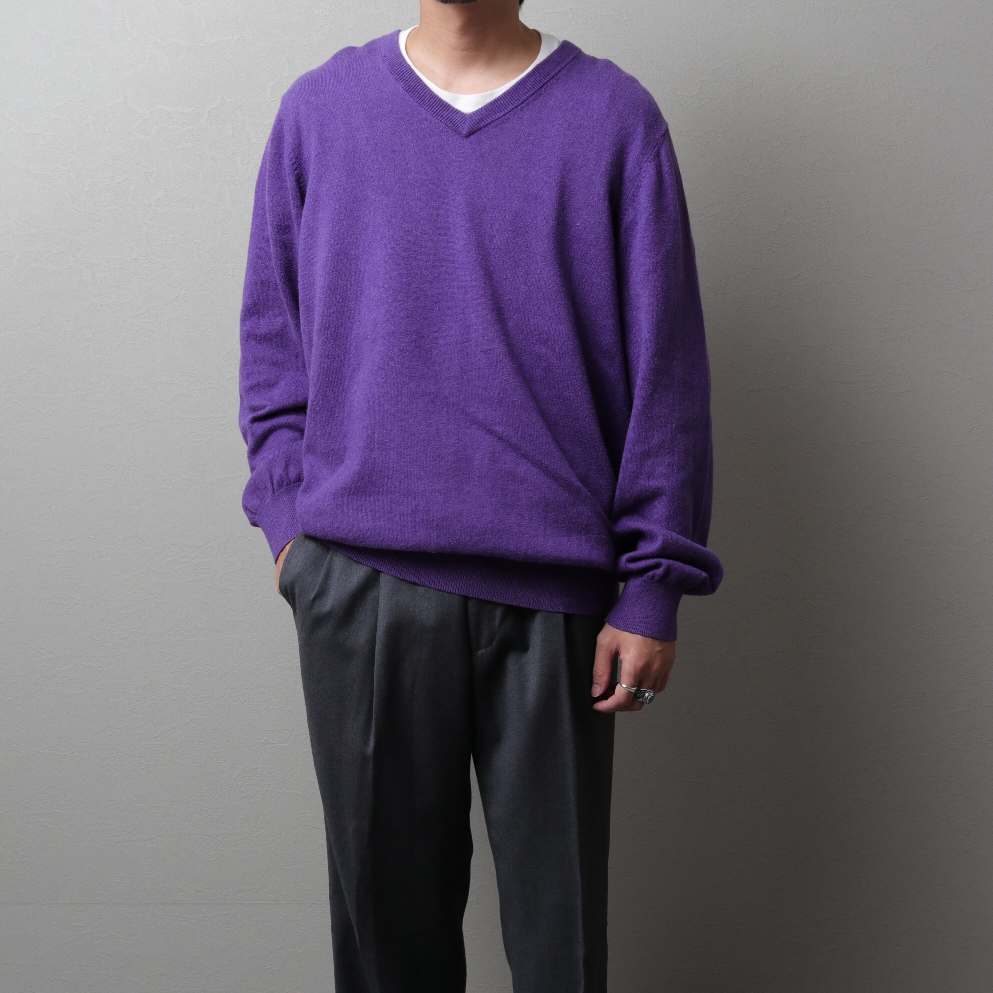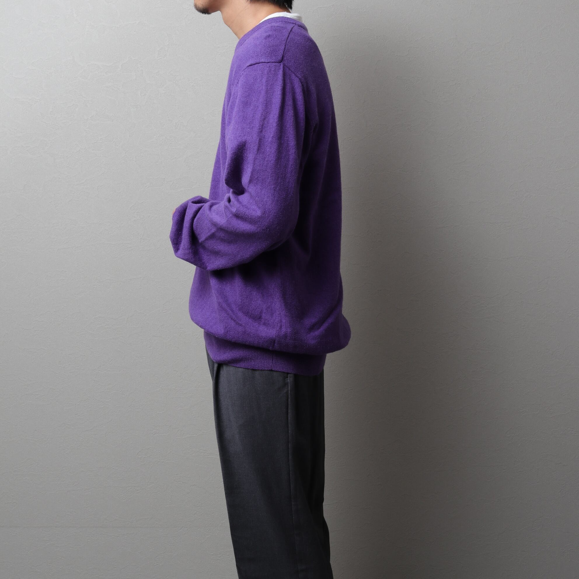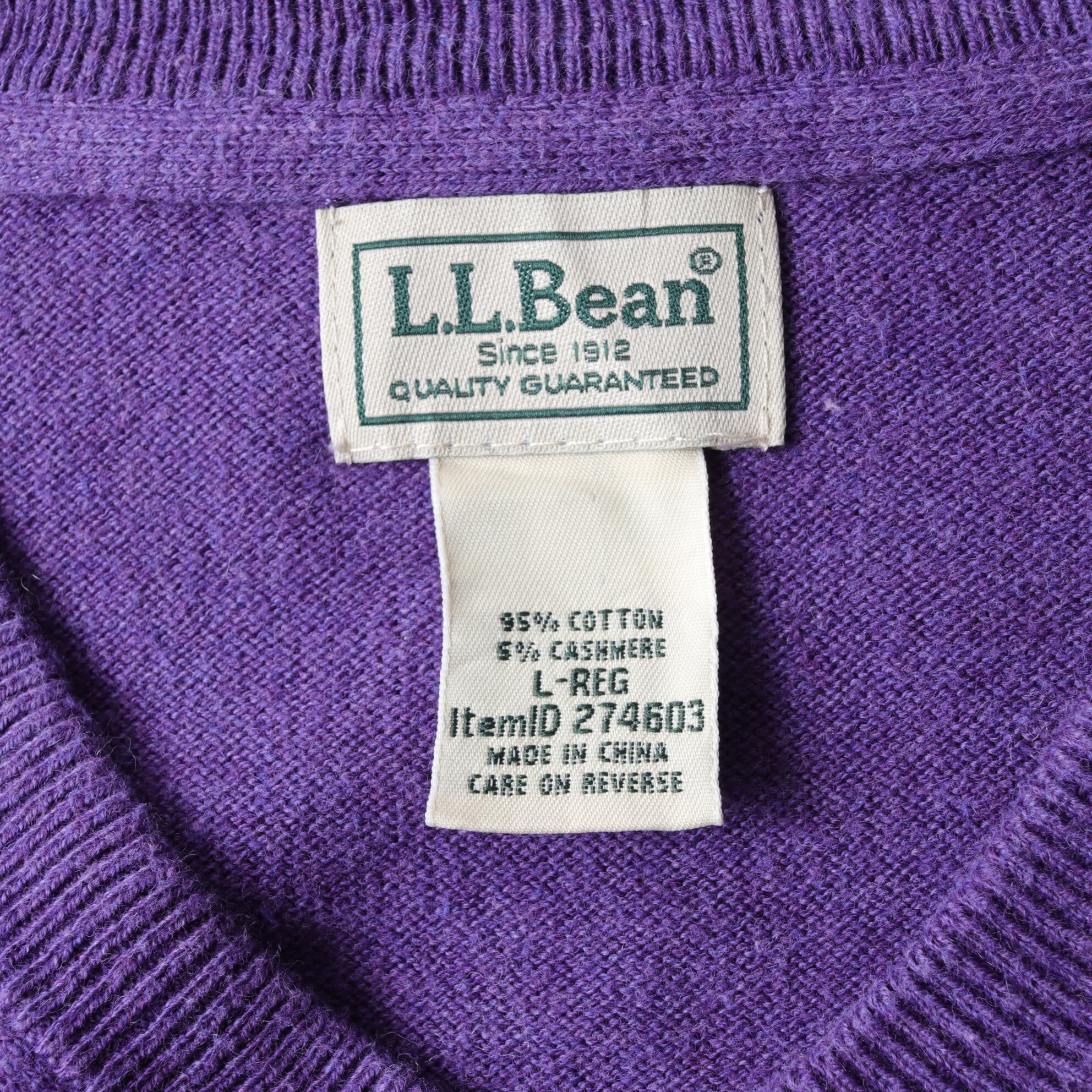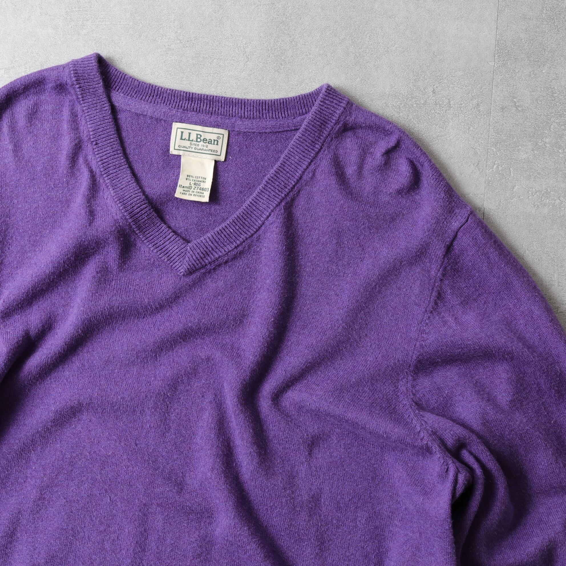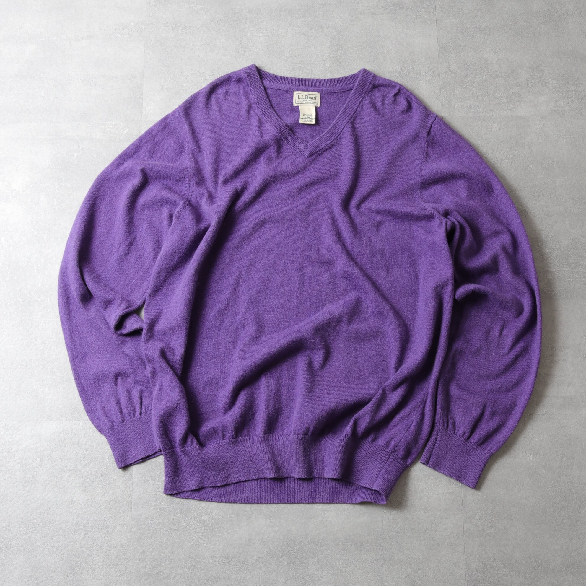 90~00's L.L.Bean Cotton Knit V-Neck Sweater "purple" 142044
