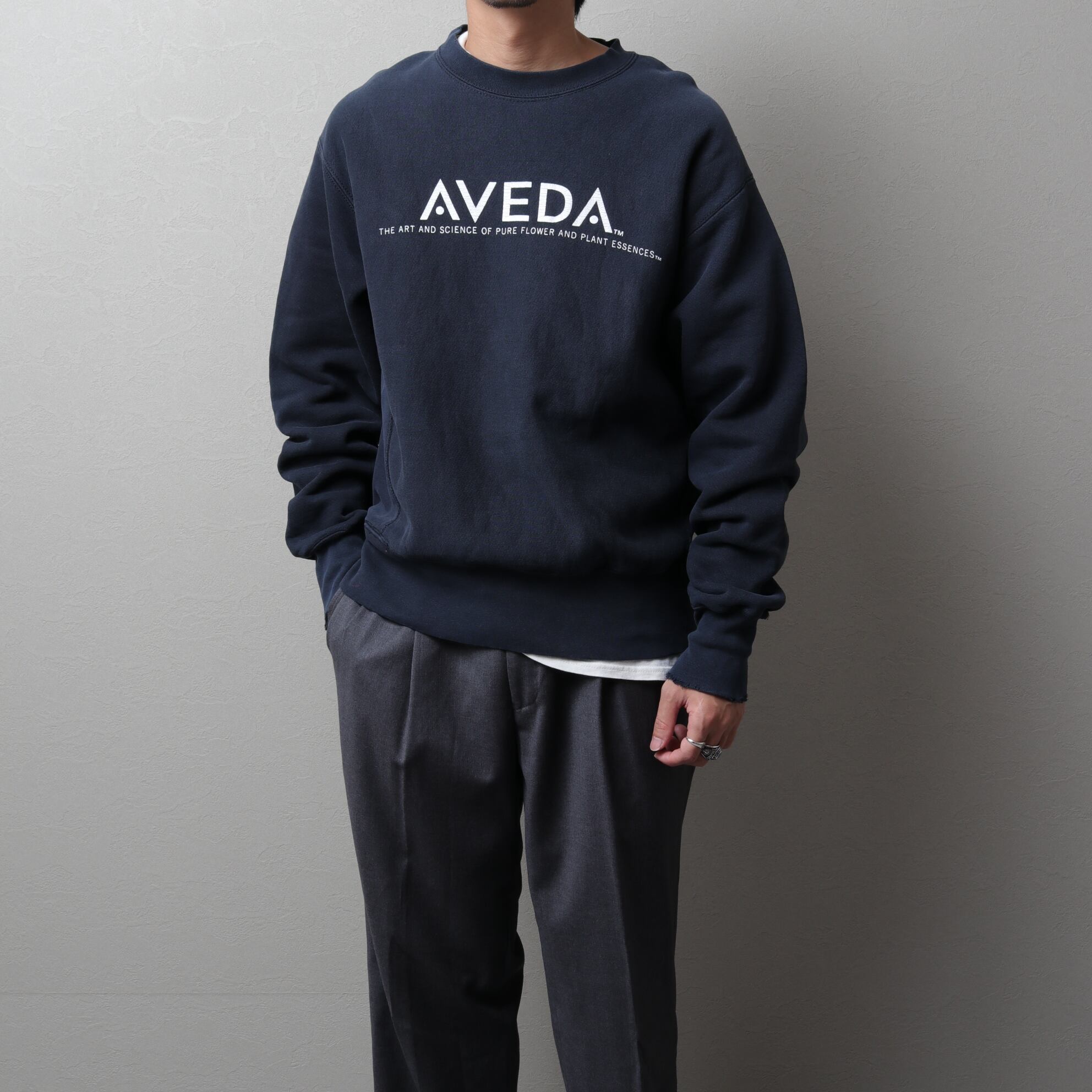 米・ミネソタ州本社の大手化粧品メーカー「AVEDA」のロゴが入ったスウェットシャツ。