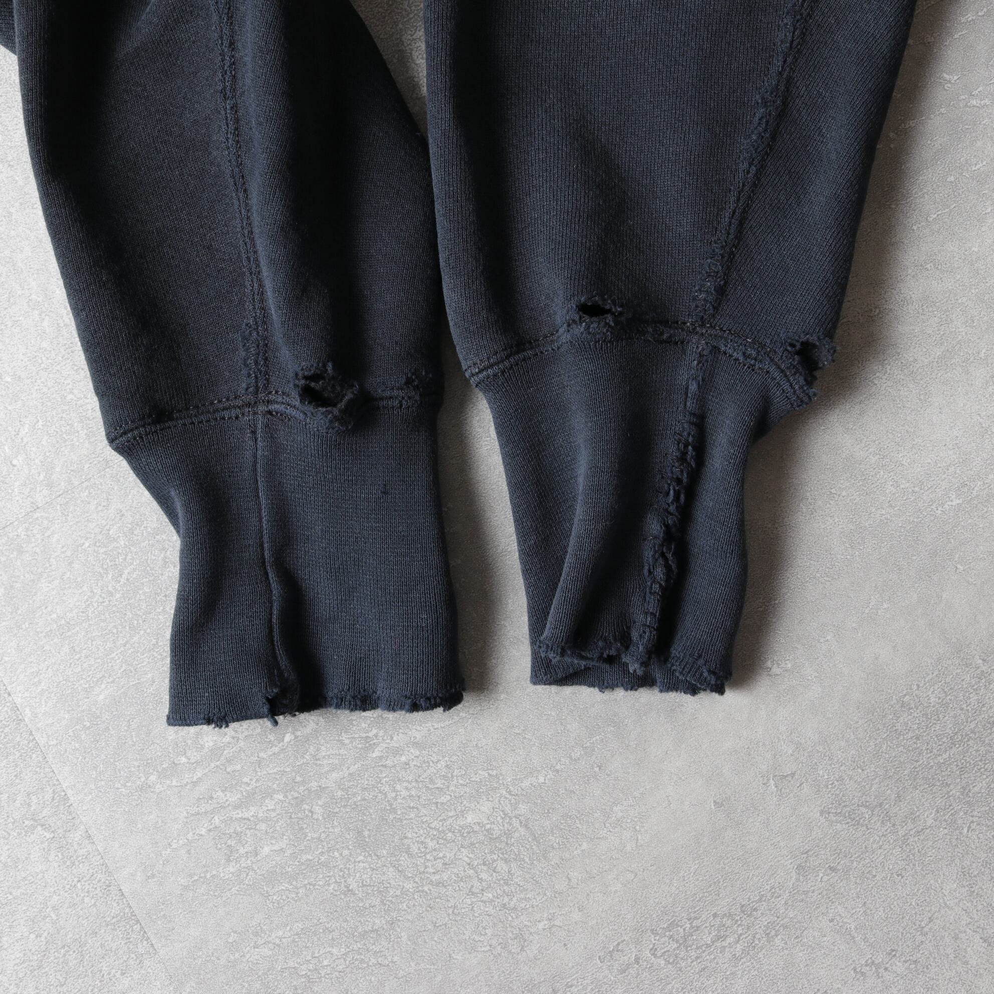 コットン多めがっしりしたブラックボディが退色し糸のうねりが生じダメージを負った風合いがとても良い具合。