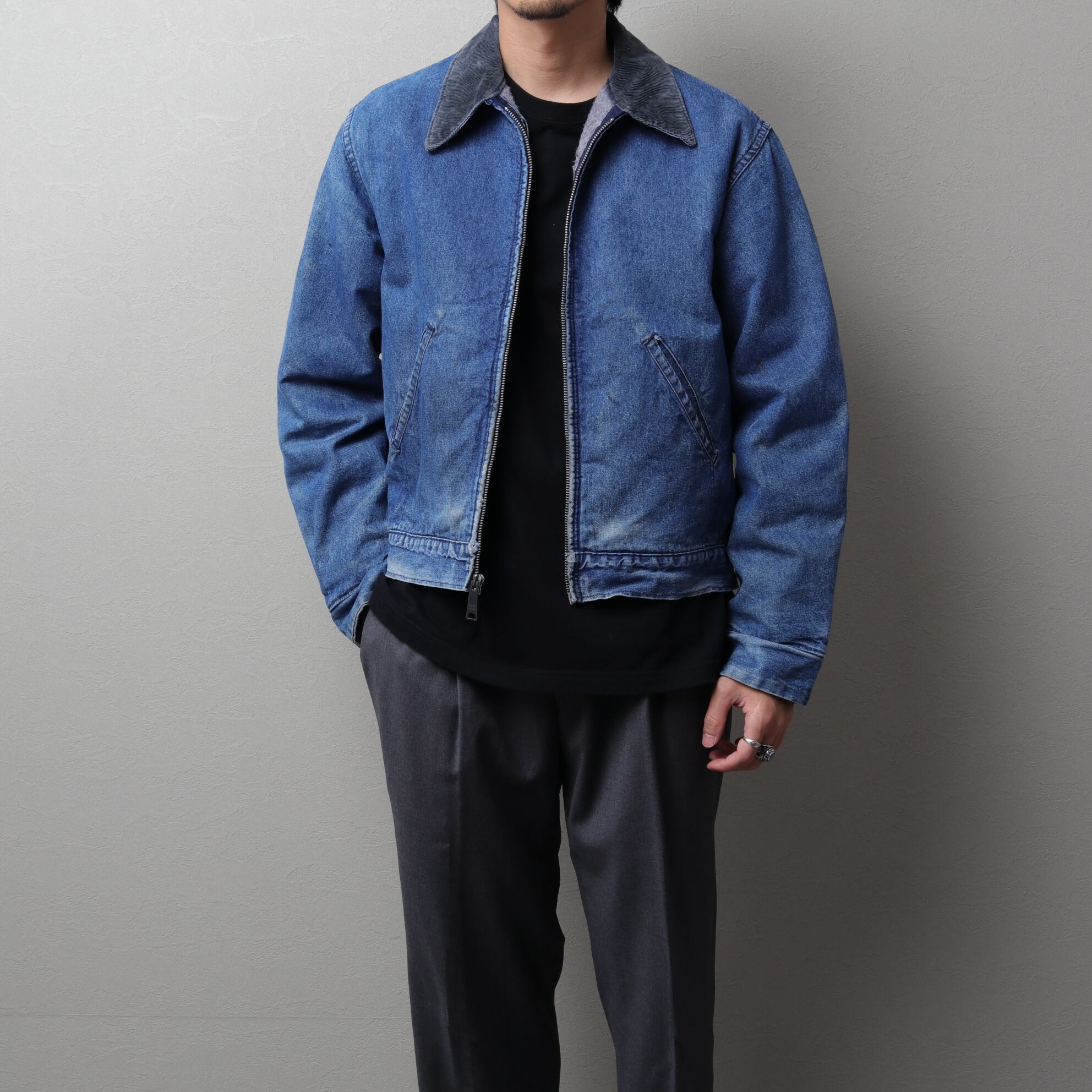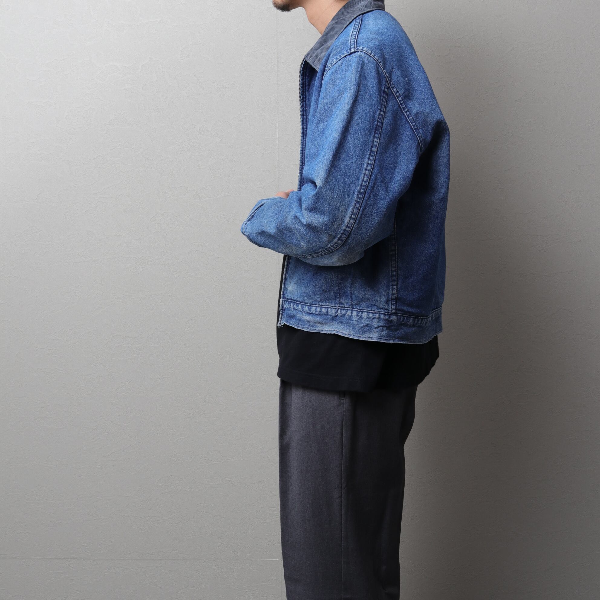 エイジングされたデニムと同系色のコーデュロイカラーのコンビが秀逸な一着。
