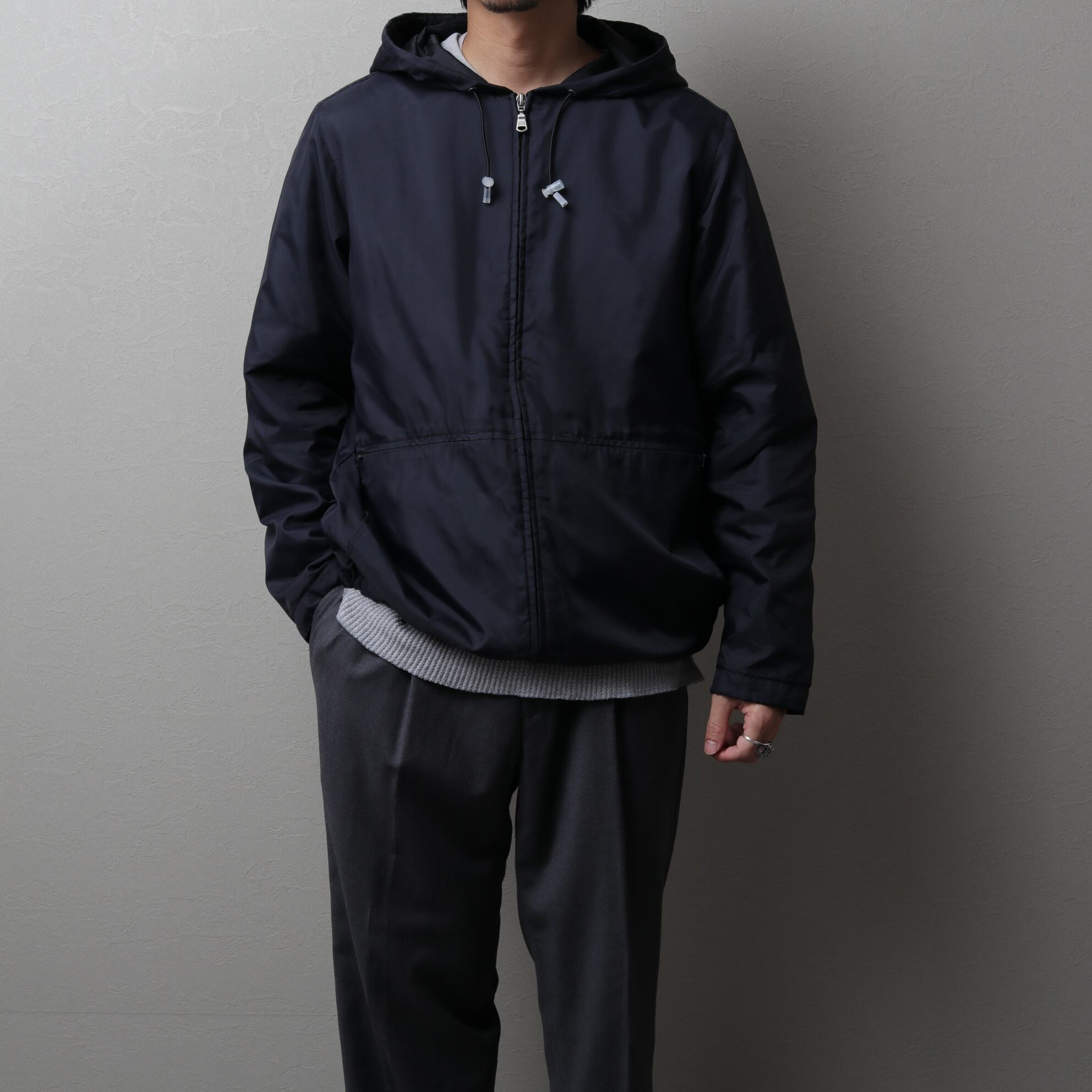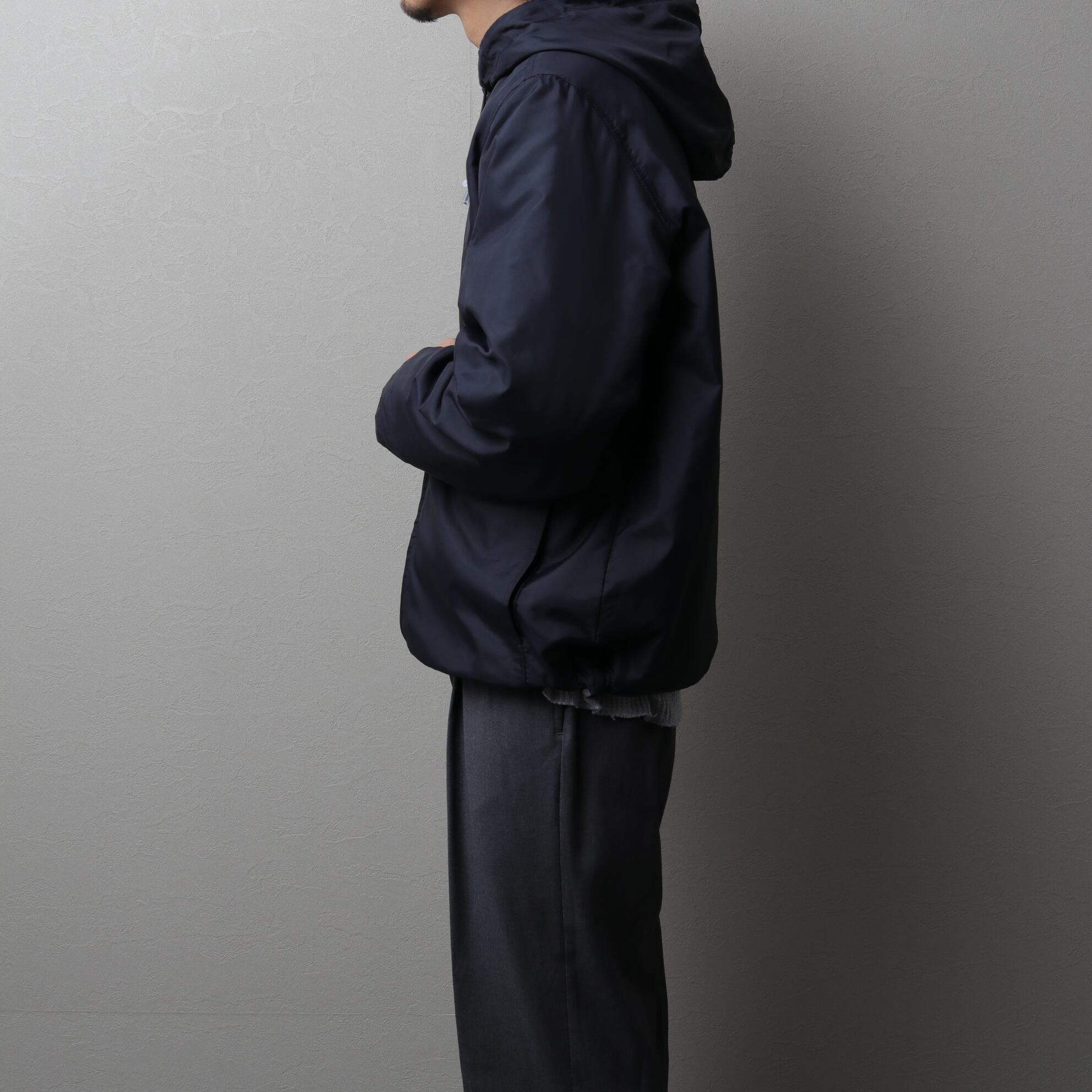 ハンドウォームと別で付いたジップポケットや裾・襟のドローコードなど痒い所に手が届いた一着です。