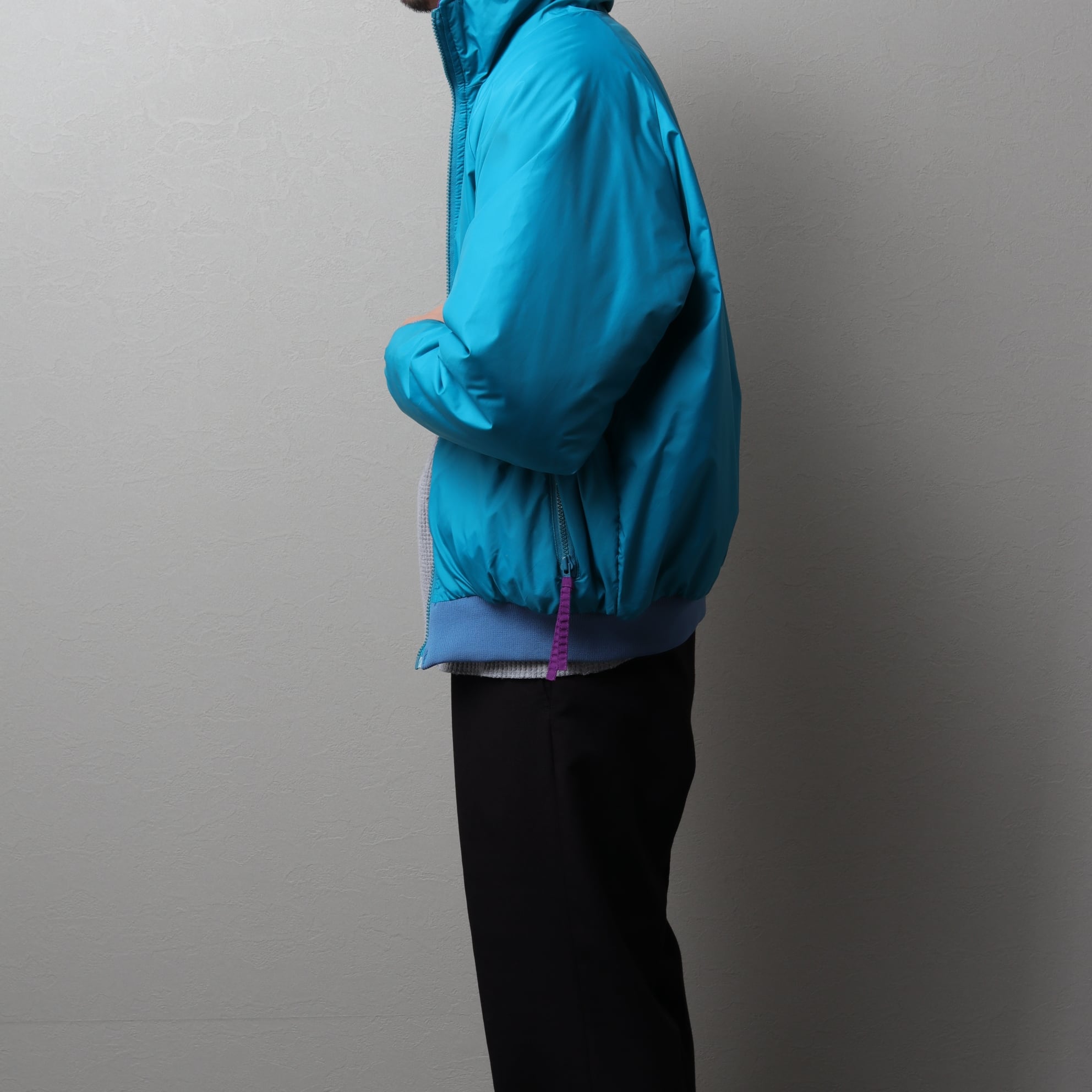 同社らしい両面オールドアウトドアカラーに短丈幅広ラグランの丸みあるシルエット。
