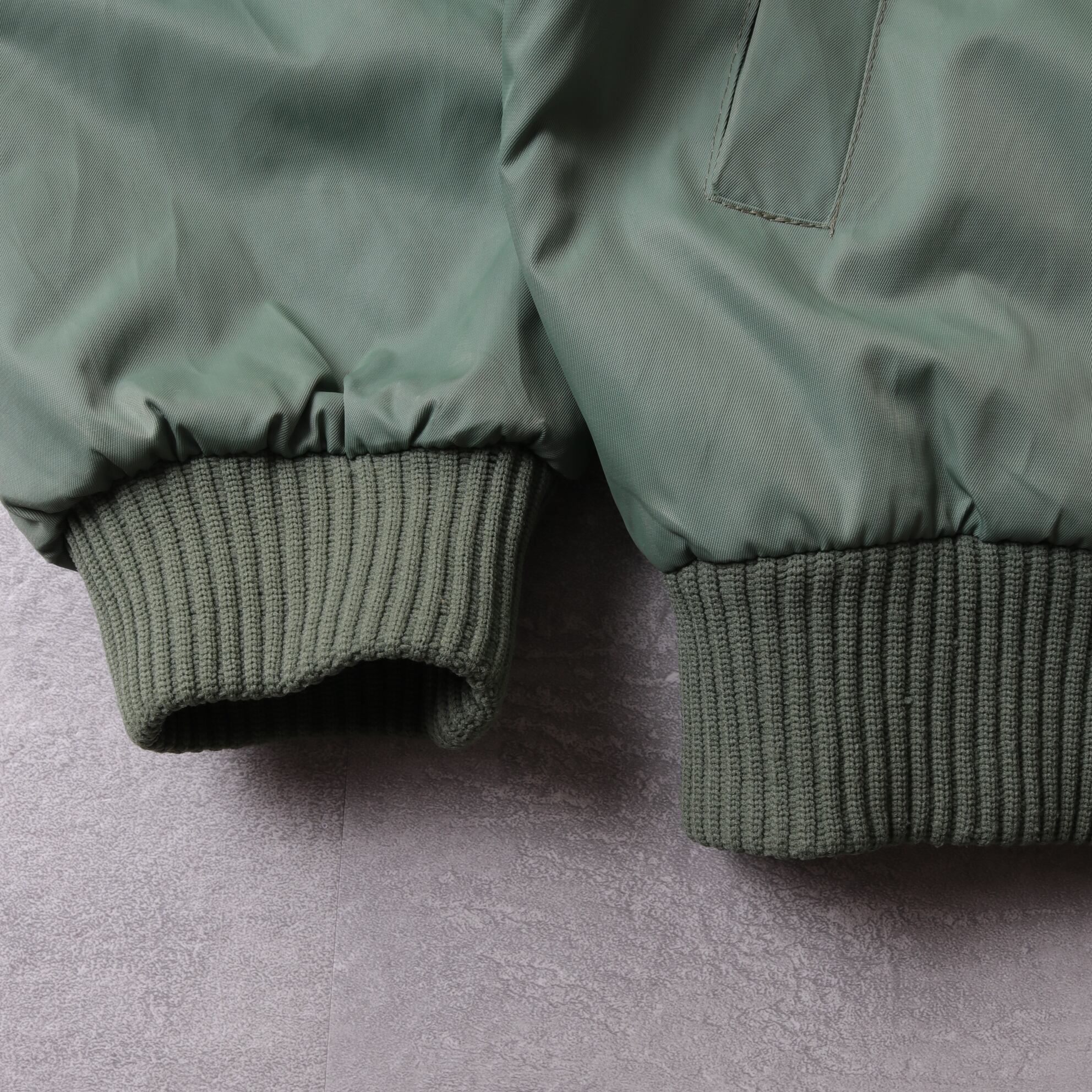 両面ミリタリーカラーに少しホワイトを足したようなマイルドで独特な色味。