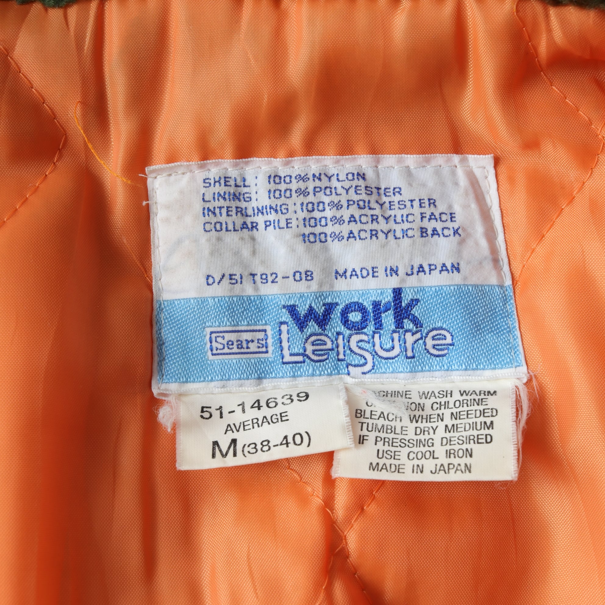 70年代頃のSearsよりB-15タイプのフライトジャケット。