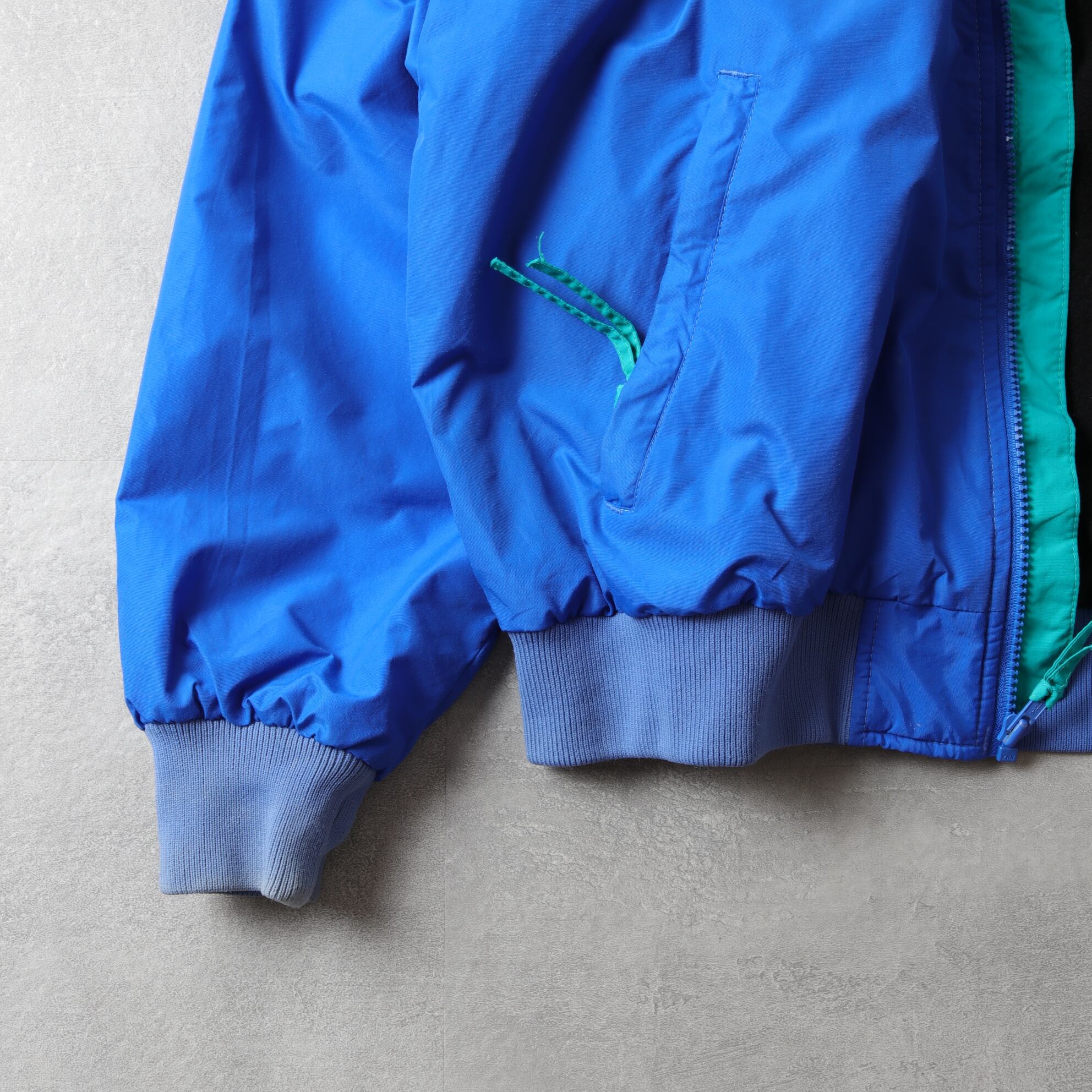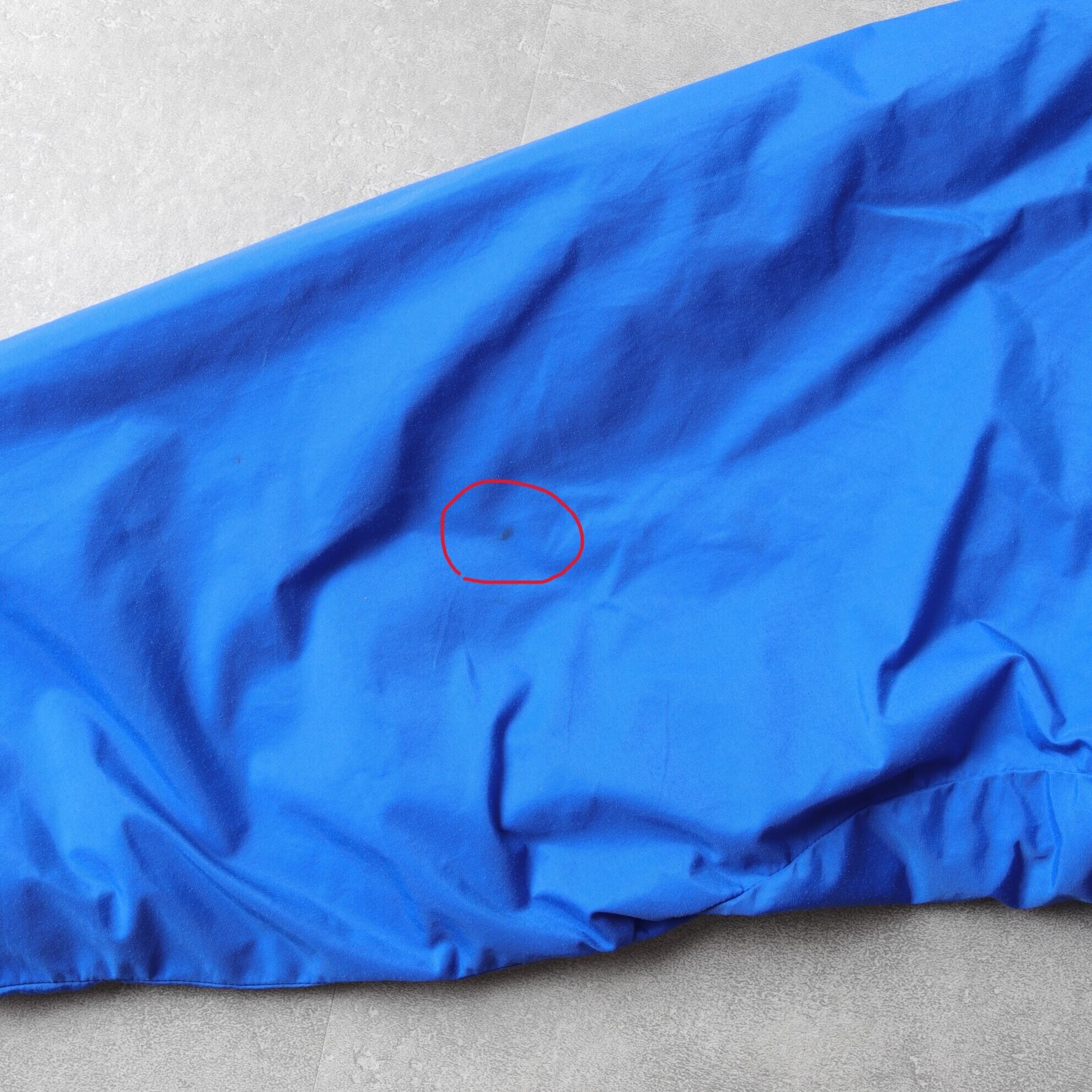 袖リブのフェード(写真11)、右腕後ろに着色あり(写真12)