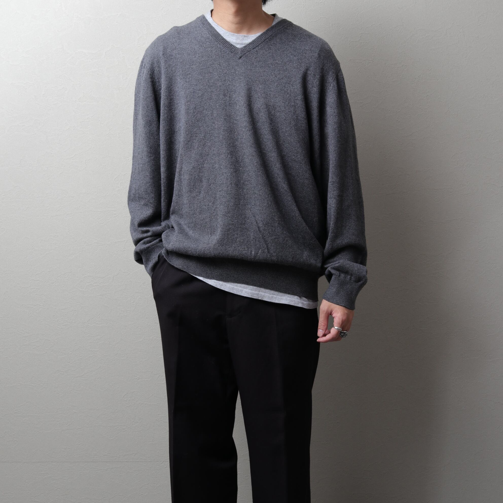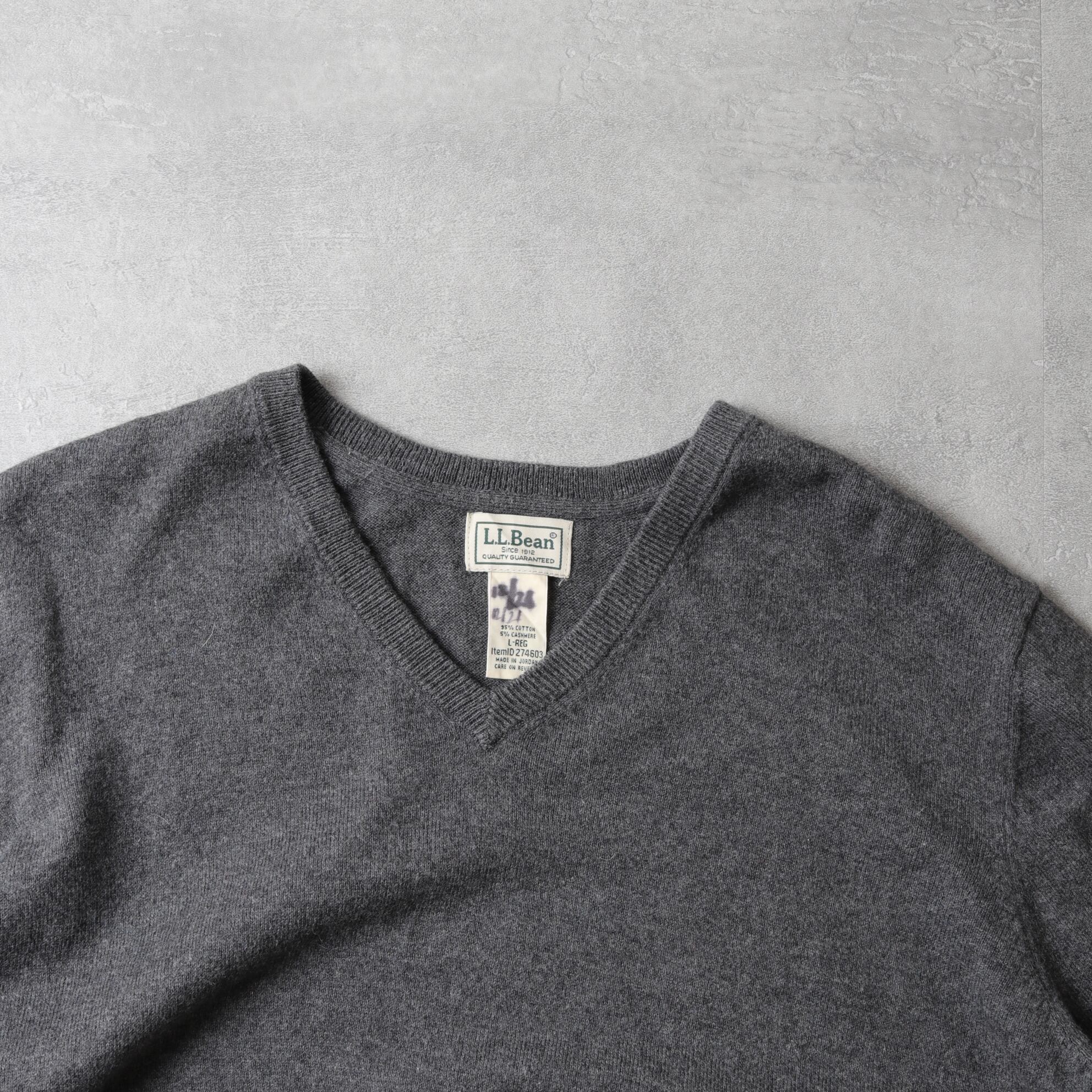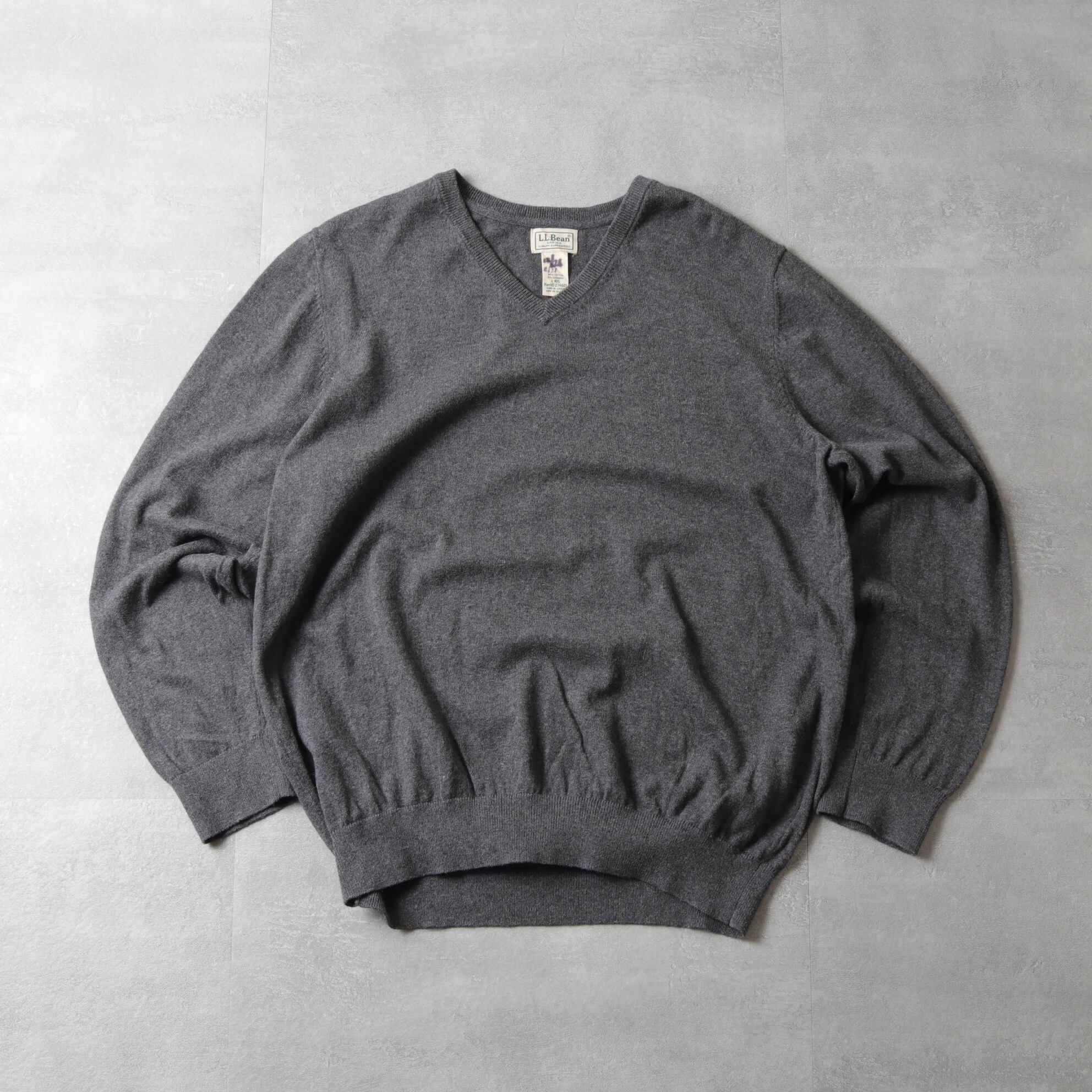 90~00's L.L.Bean Cotton Knit V-Neck Sweater "Gray" 142048