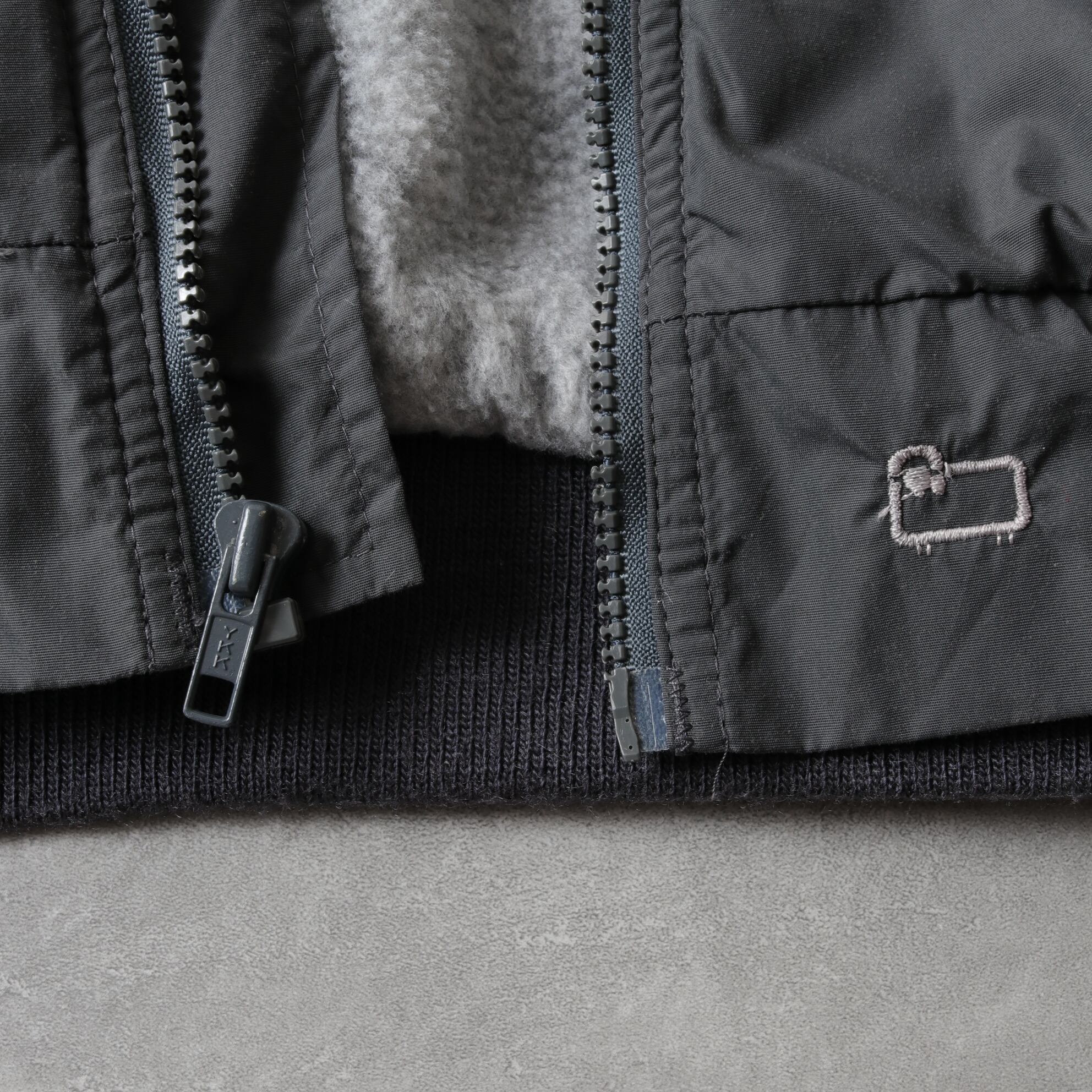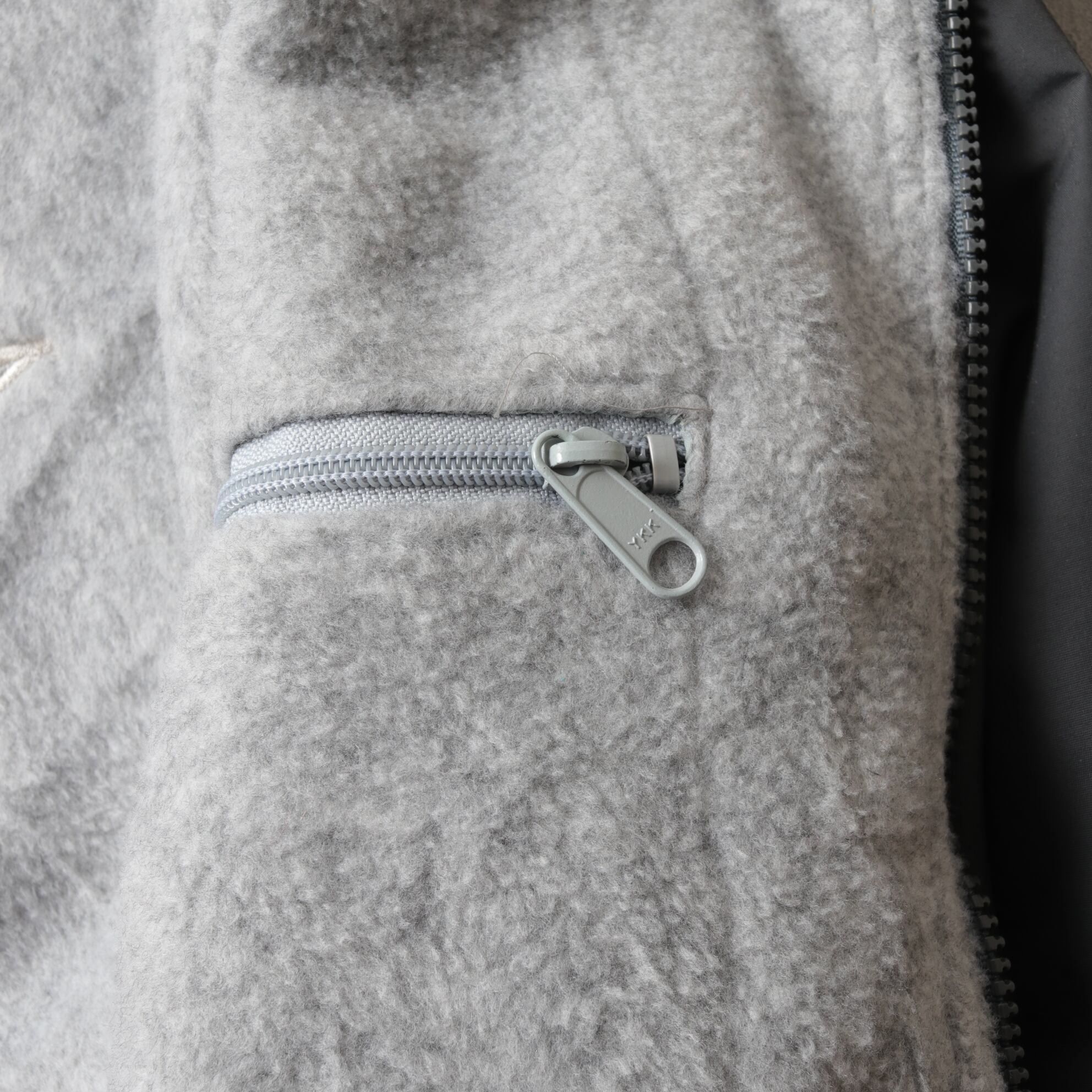 チャコールのシェルにグレーフリースのグッドカラーリング。