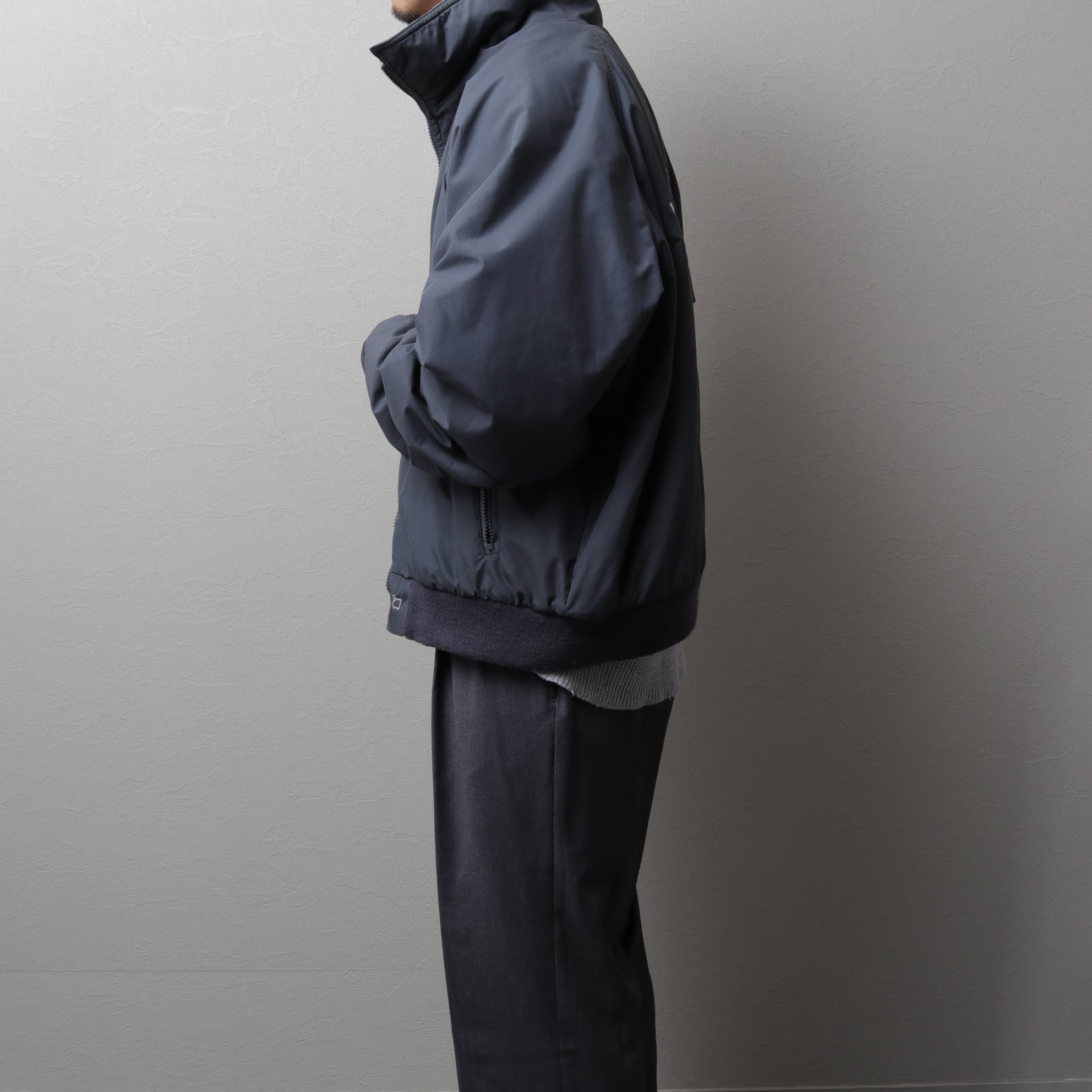 幅広のスタンドカラーでフリースライナーの普遍な形、