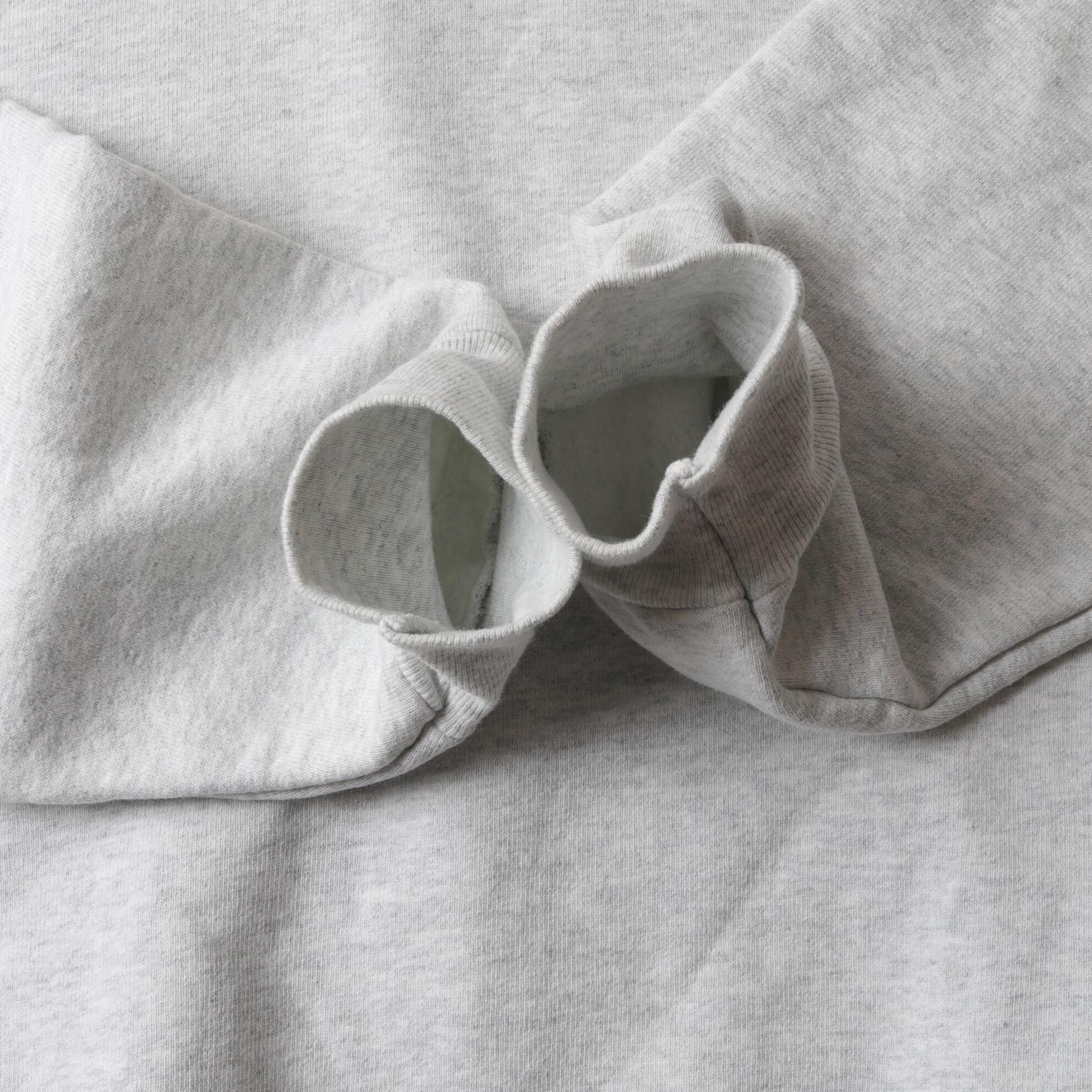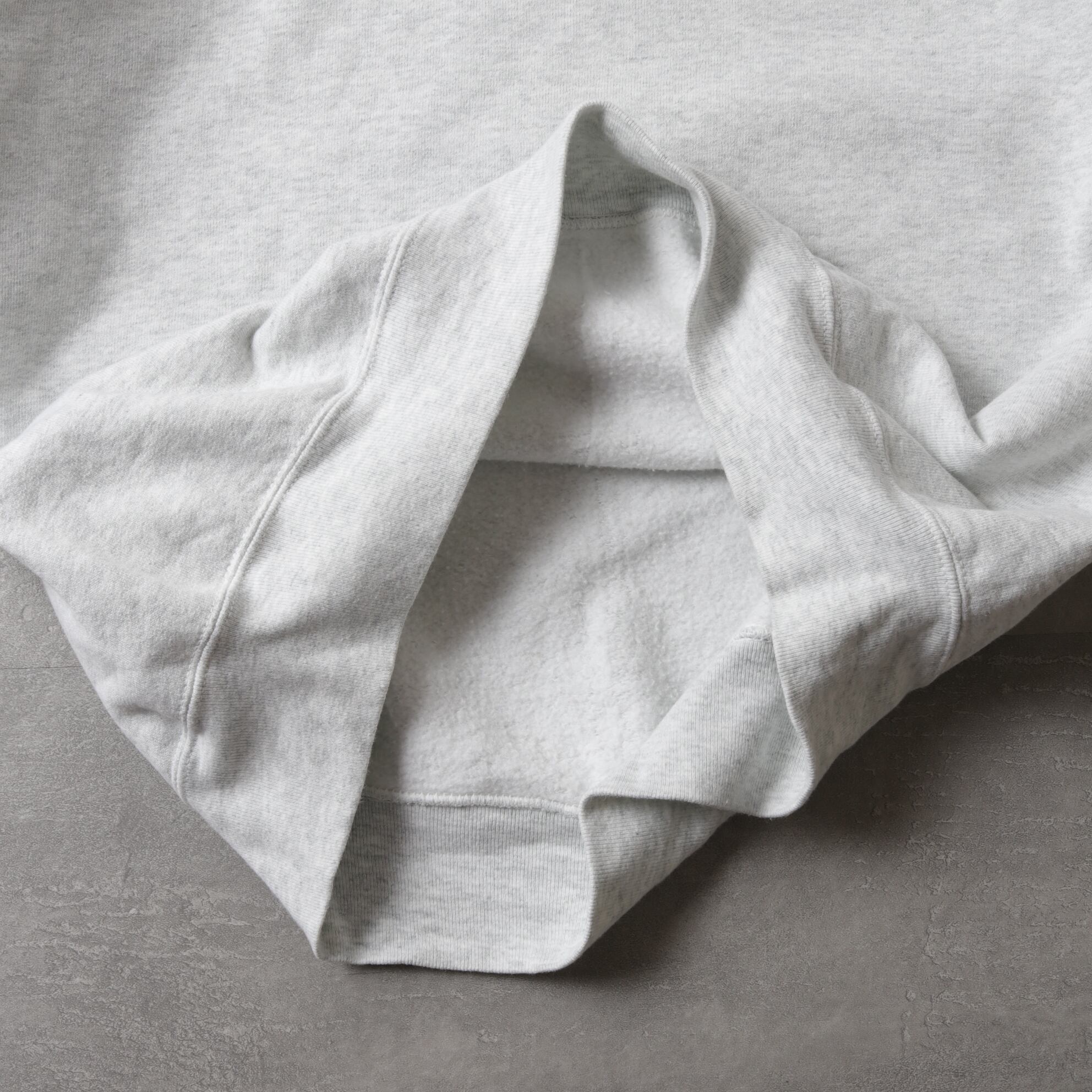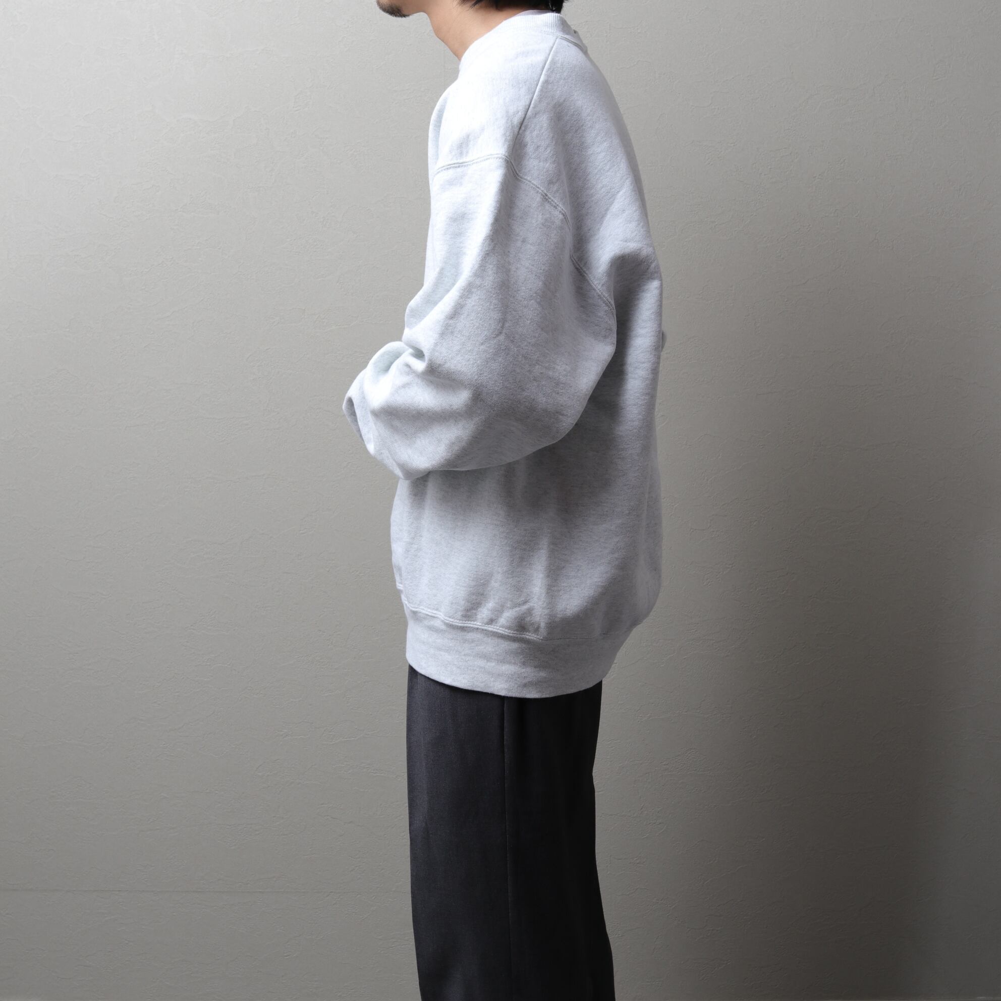 コットンメインのドライで厚手の生地感に身幅、アームホール太めのモデル。