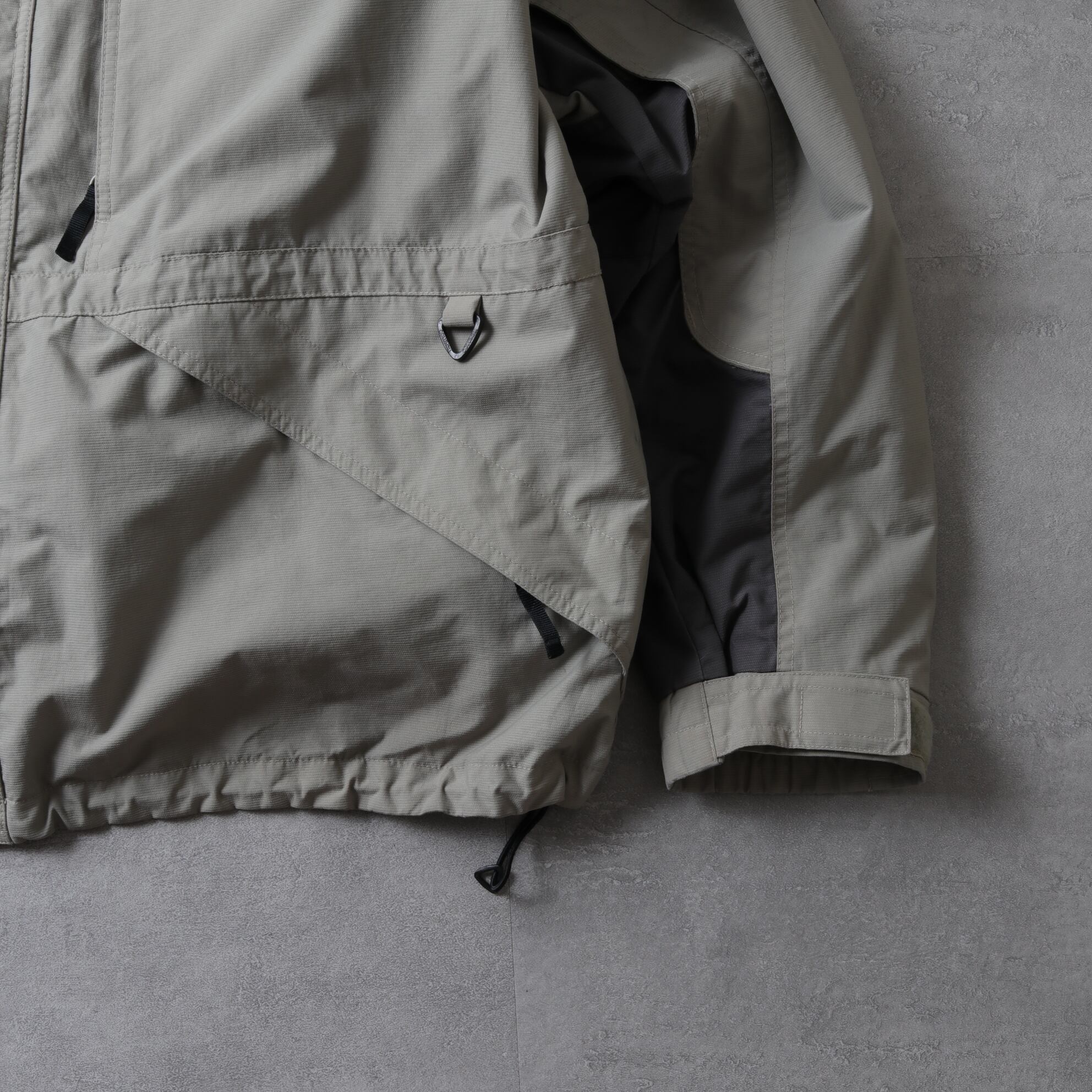 裾とウエストのドローコードなど機能的な一着です。