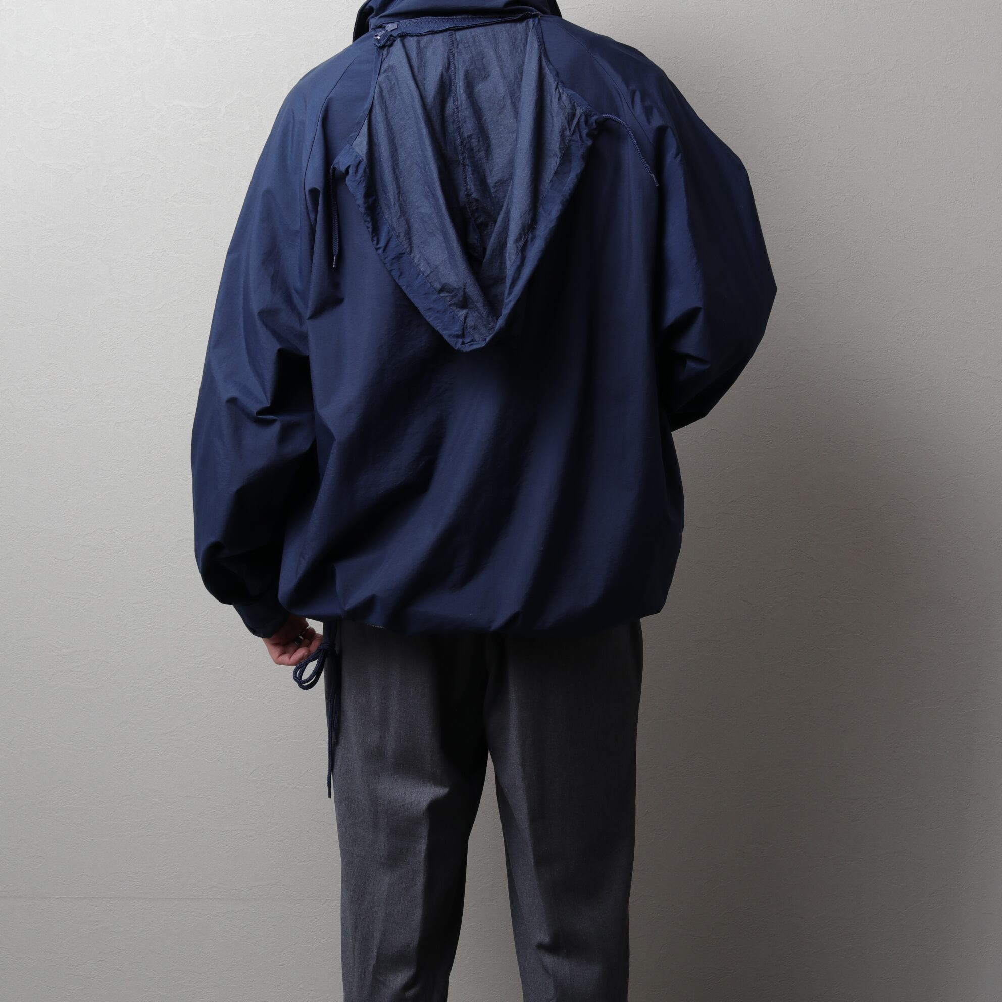 襟付きのナイロンアノラック。