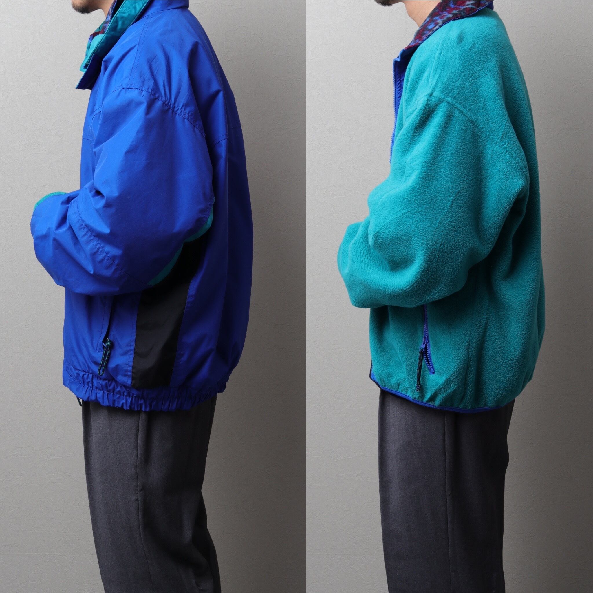 着丈が短く幅広のサイジングでスキーウェアのように襟が高いのが特徴。