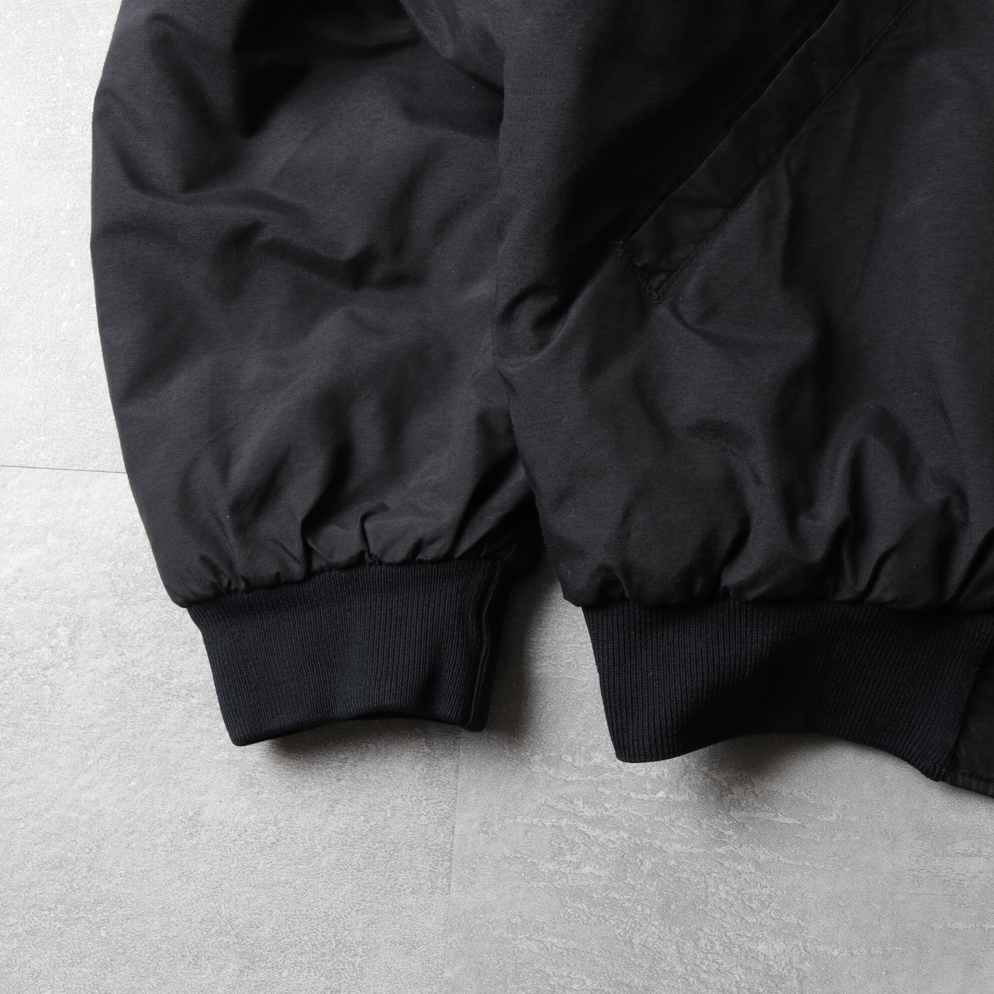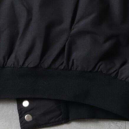 マッドブラックなシェルに中綿入りのキルトライニング。