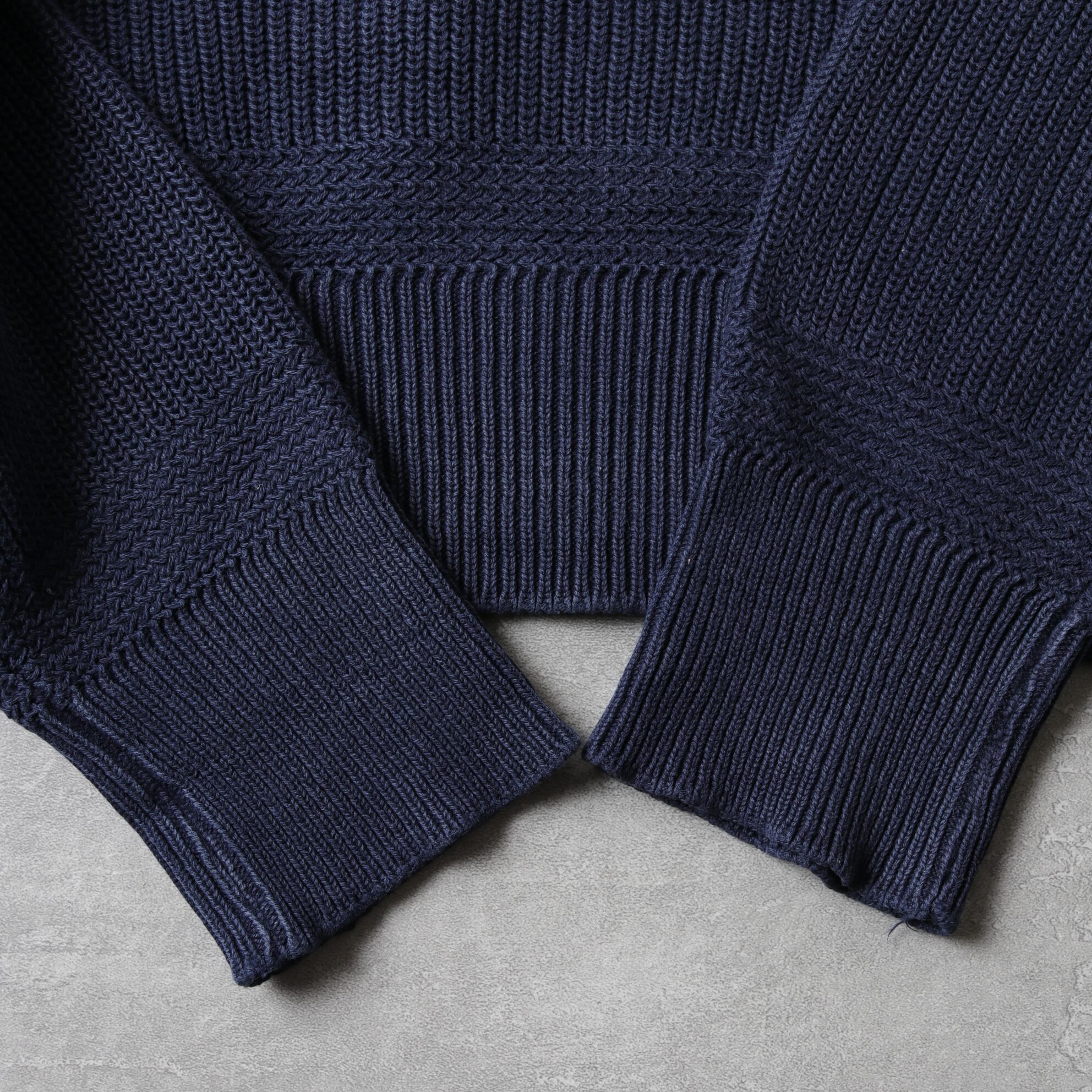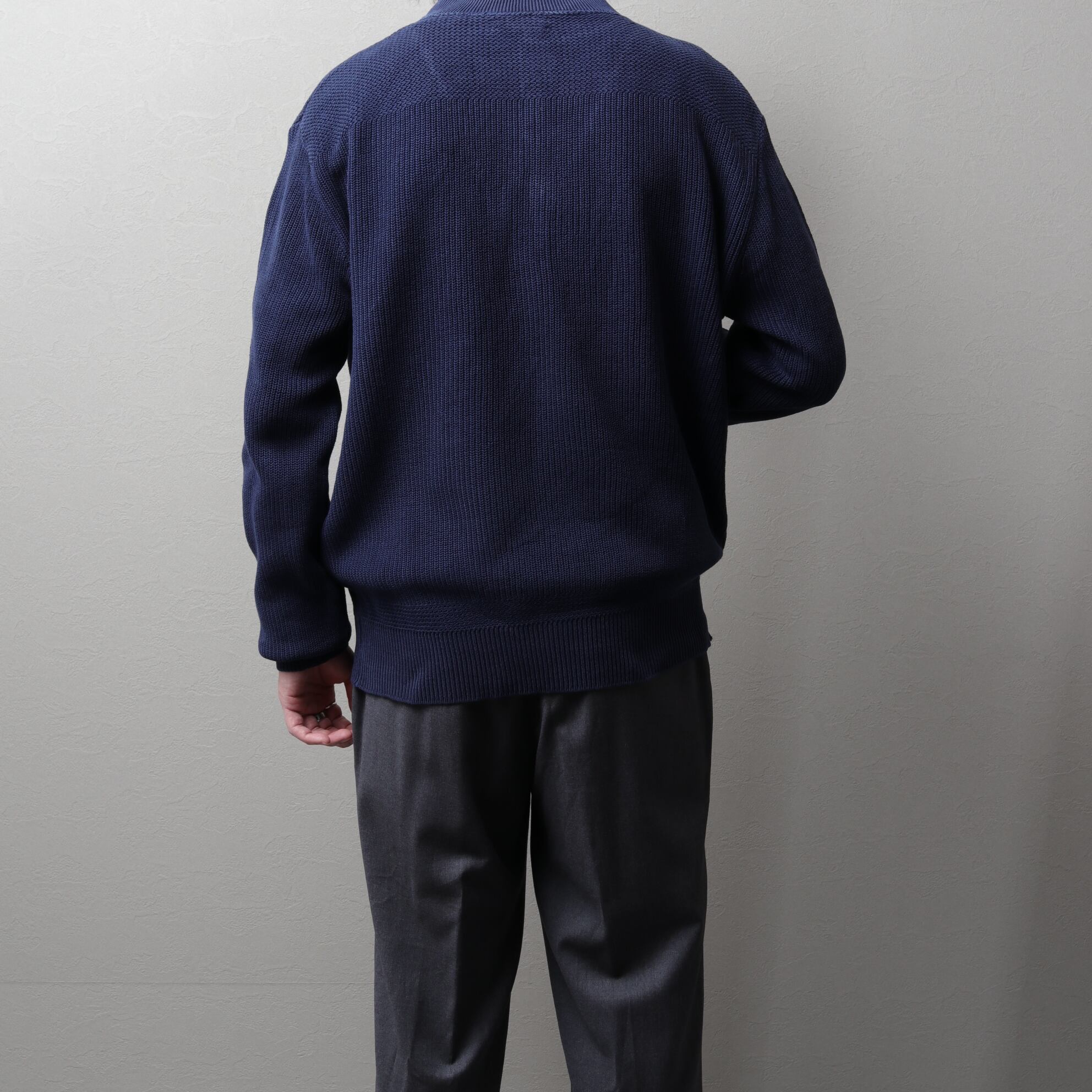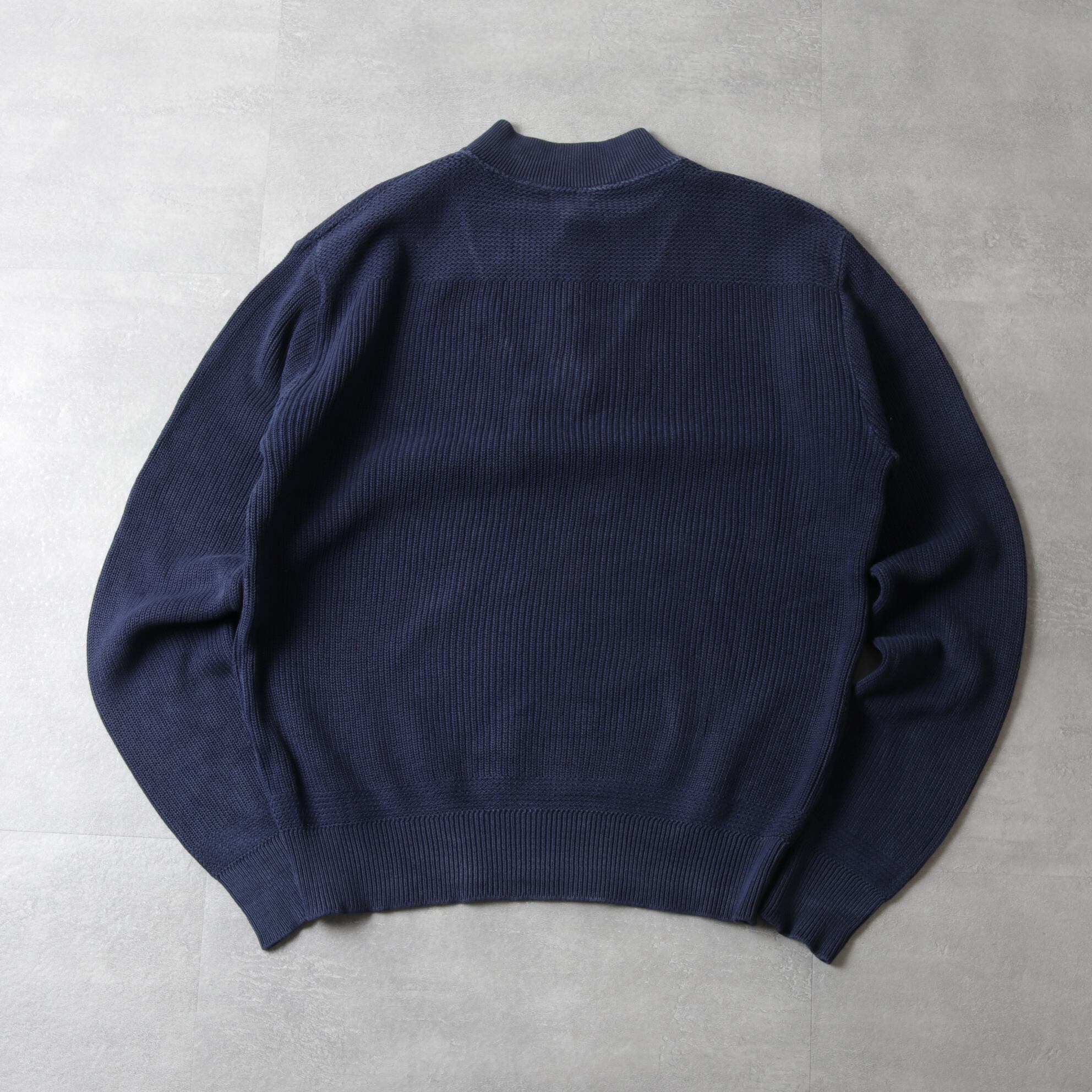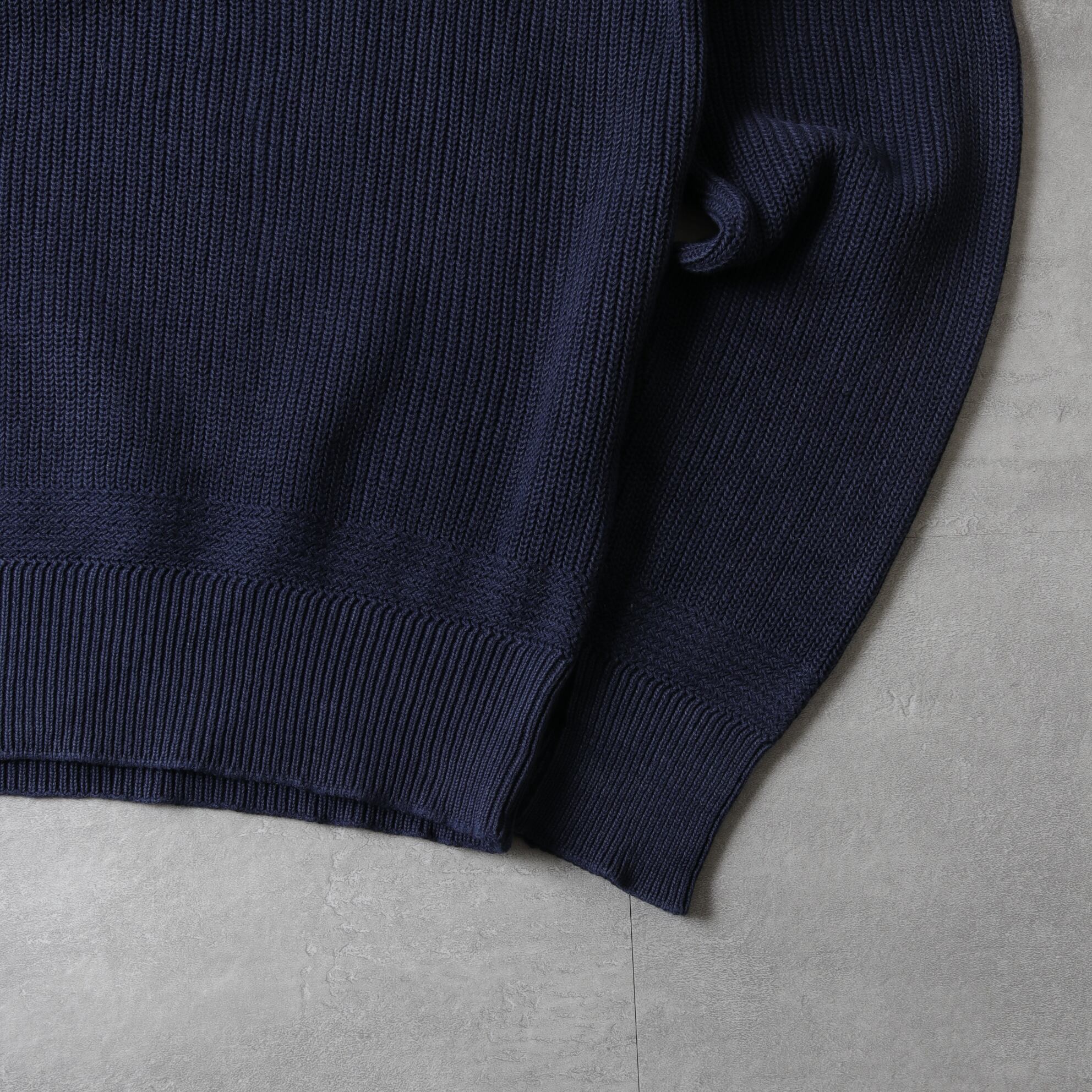 ざっくりドライなネイビーニットにアタリが出て良い表情しています。