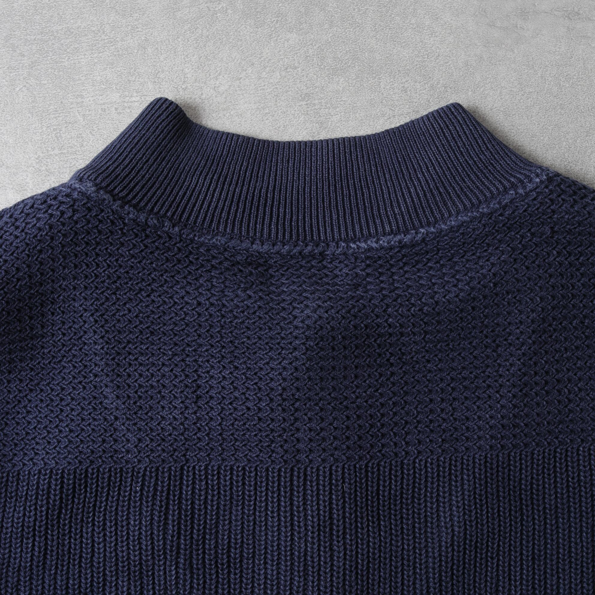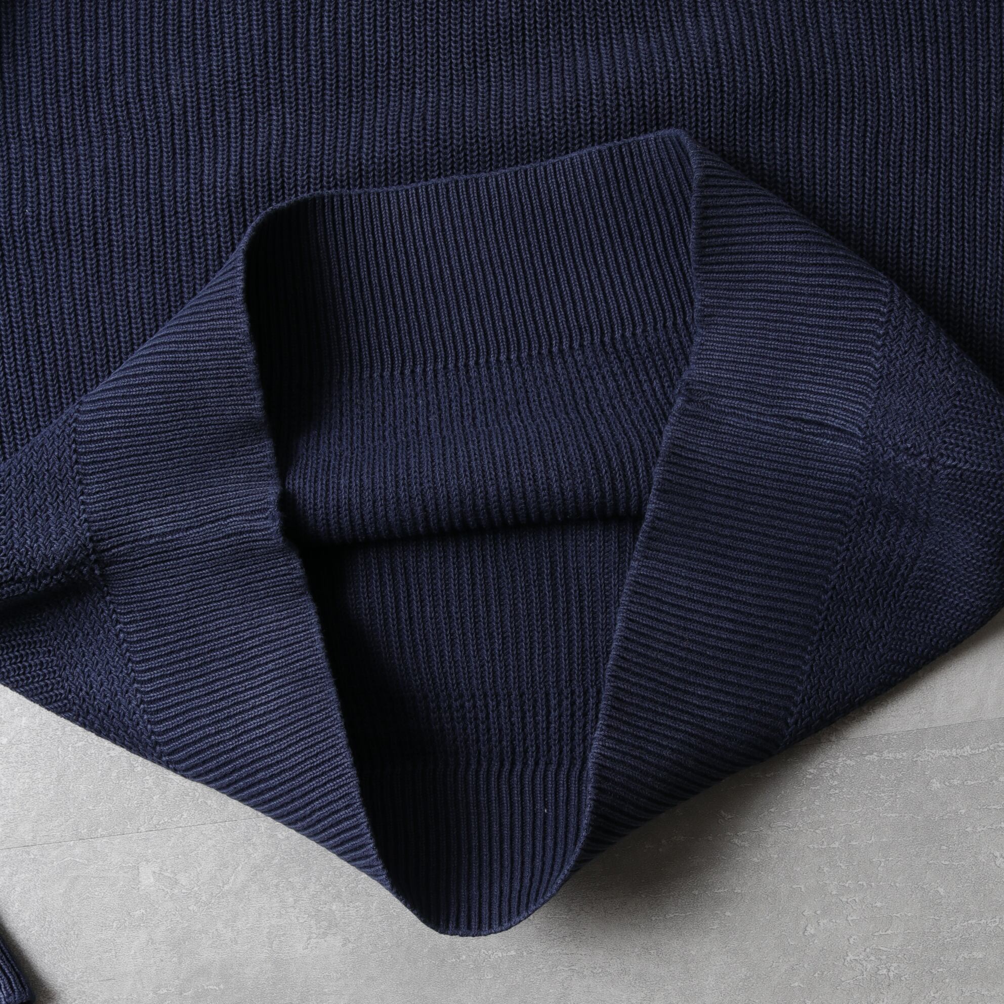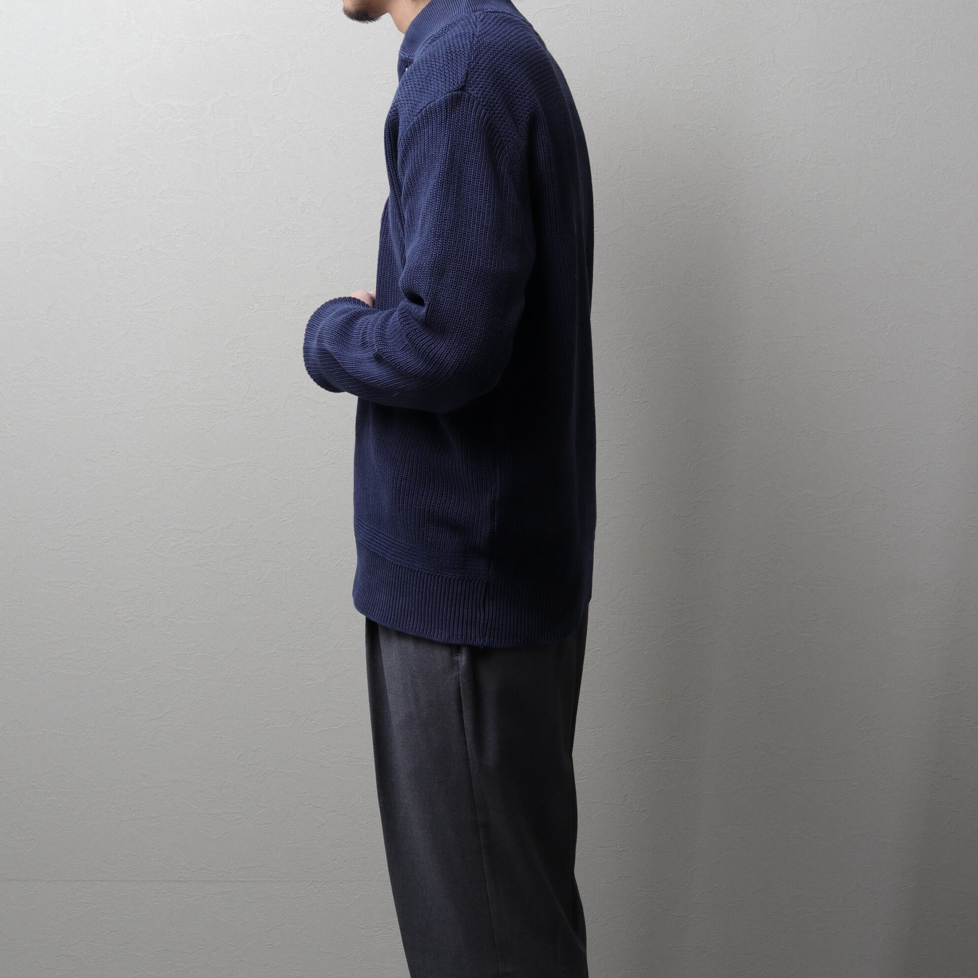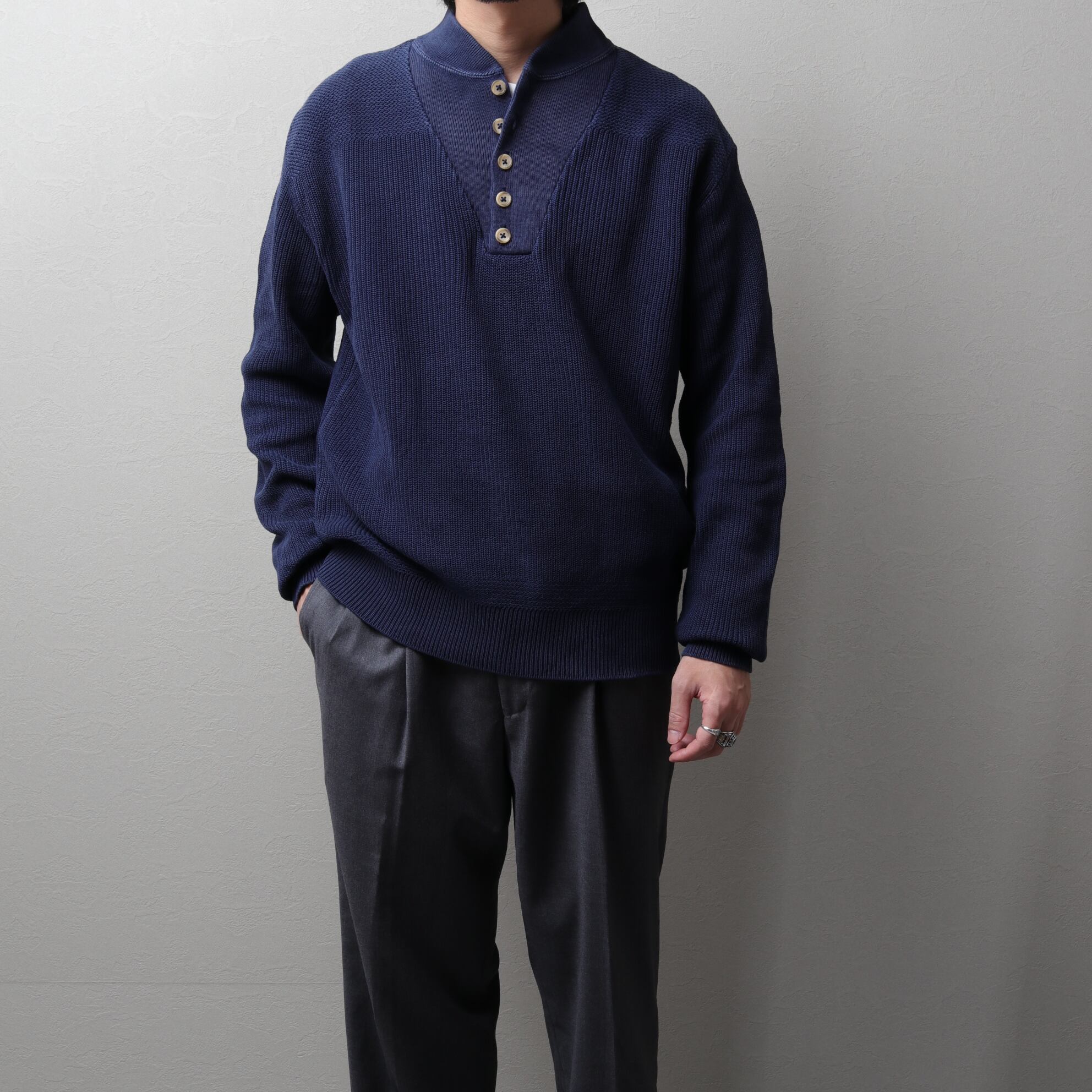 ざっくりドライなネイビーニットにアタリが出て良い表情しています。
