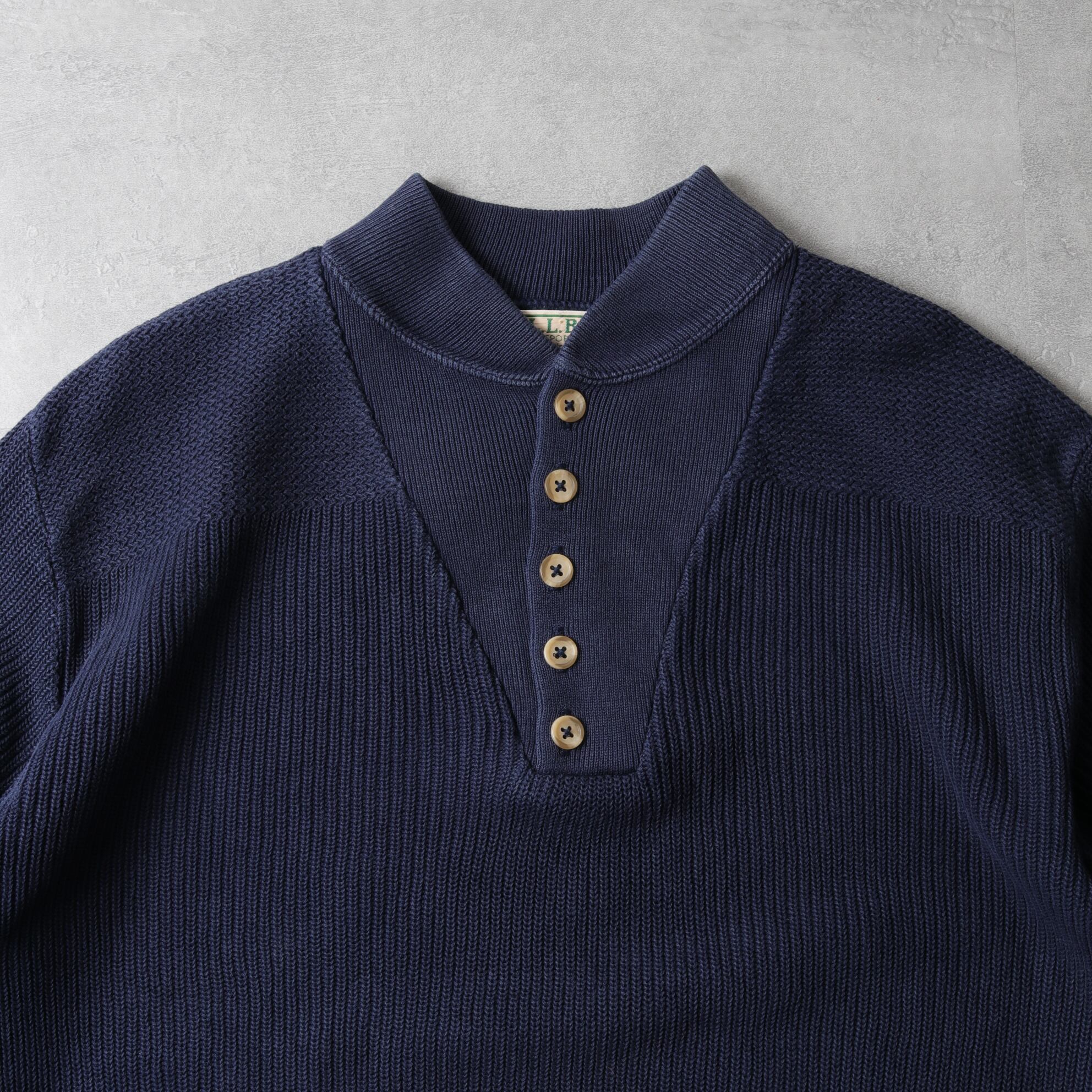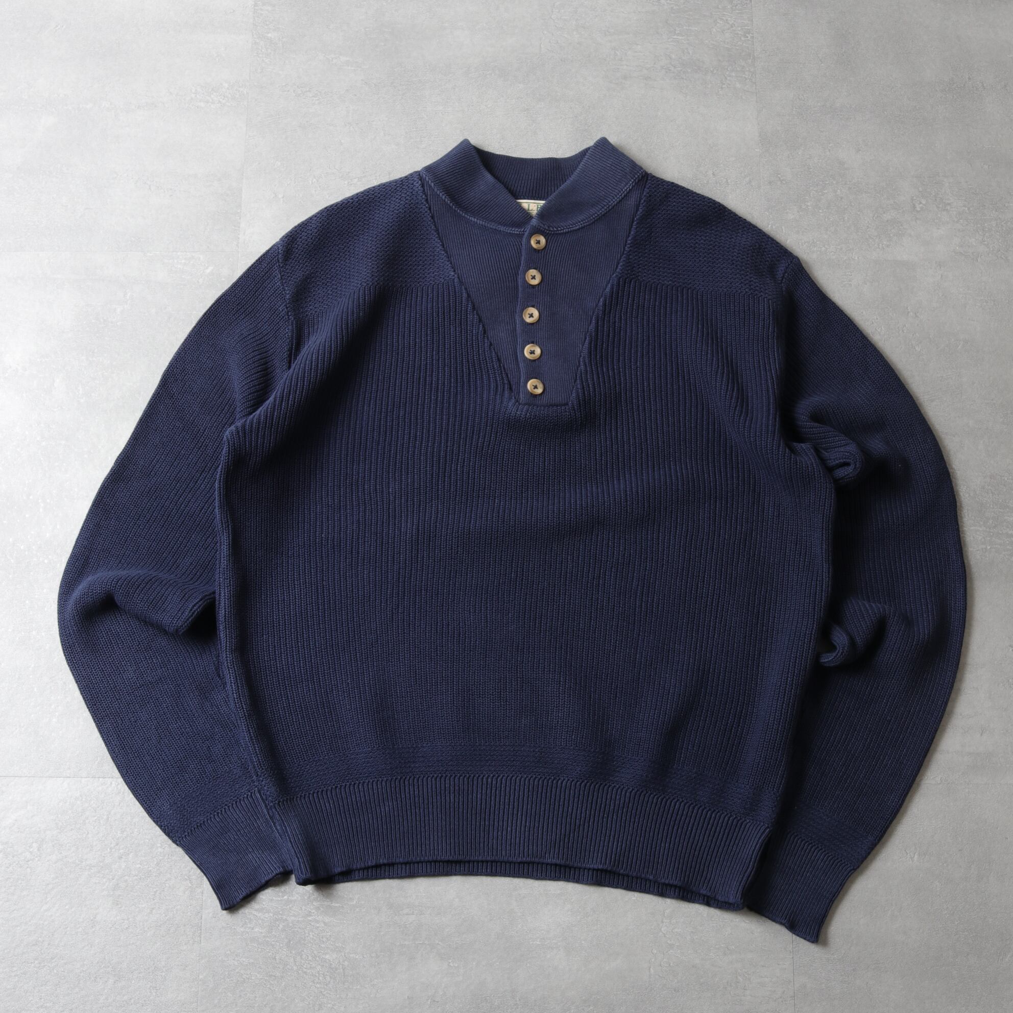 1980~90's L.L.Bean Cotton Knit HenryNeck Sweater "MadeinUSA" 142069