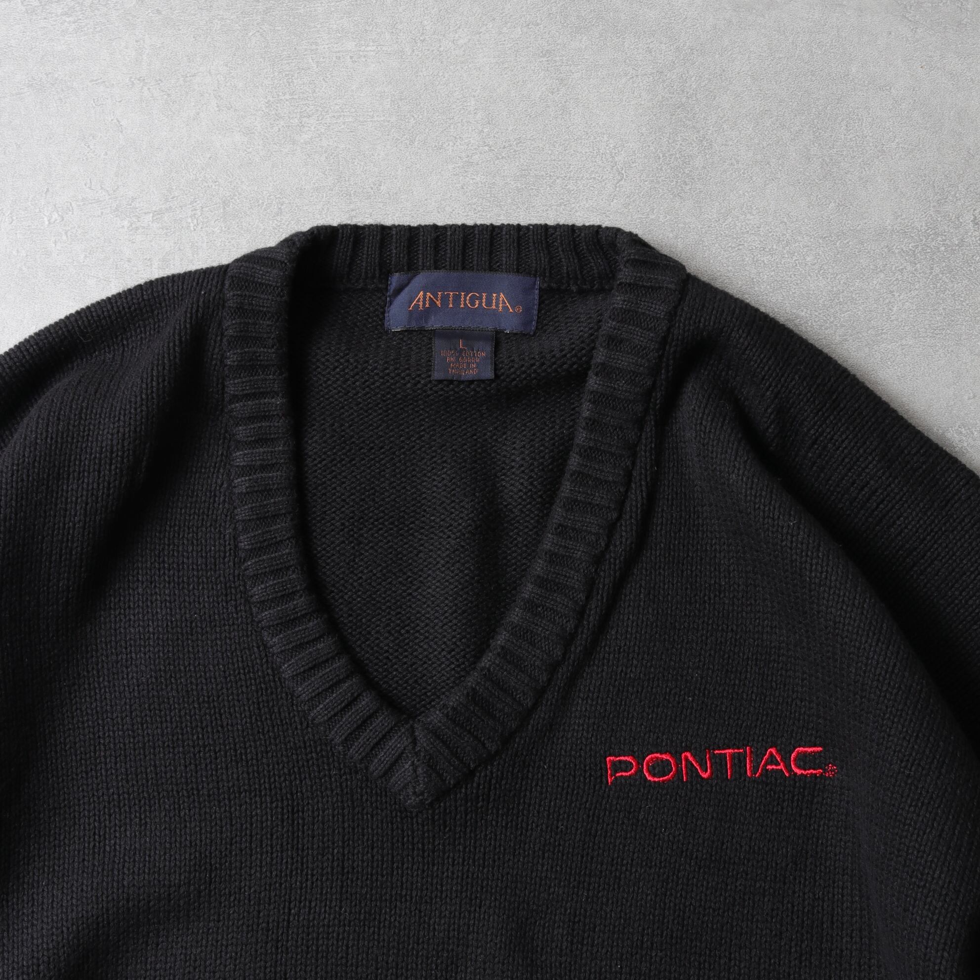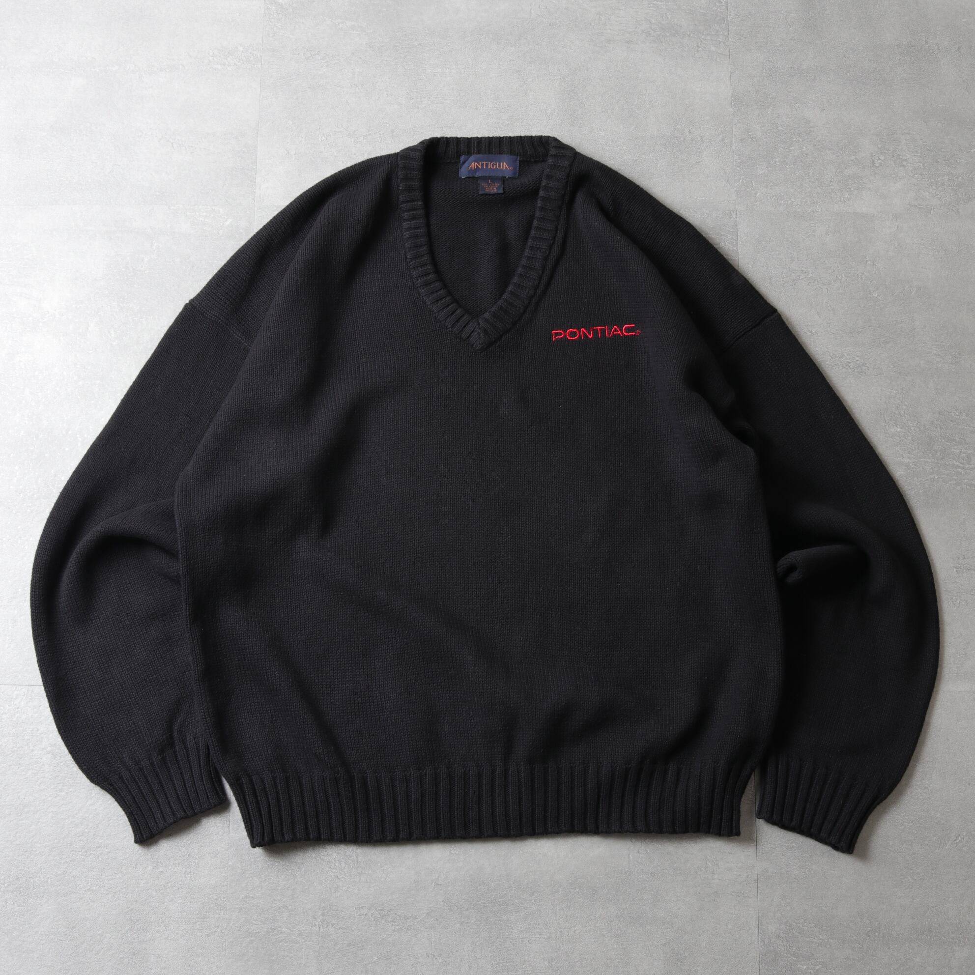 1990's~ ANTIGUA V-Neck Cotton Knit Sweater "PONTIAC" 142089