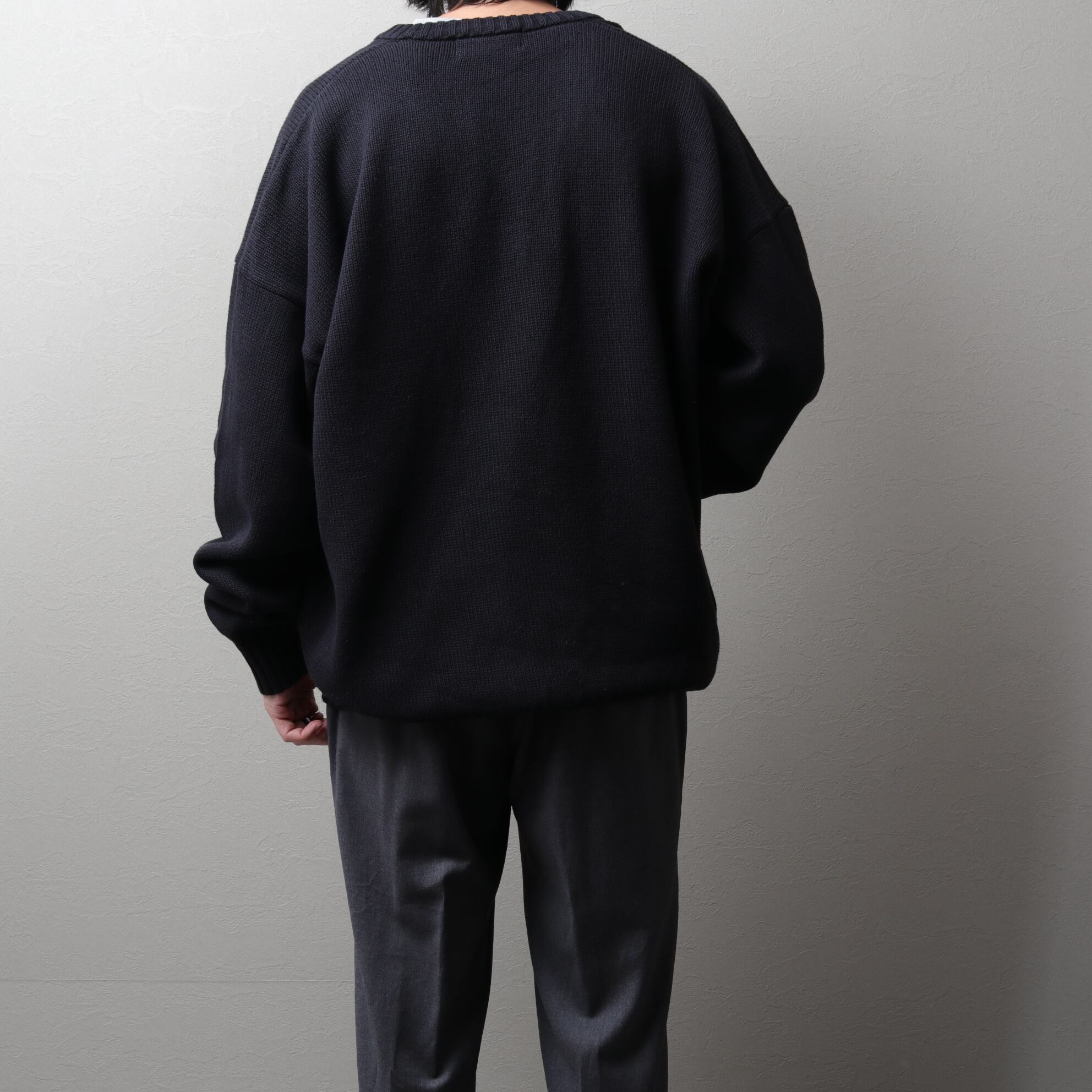ANTIGUAよりコットンニットセーター。ミドルゲージで重量感のある生地感で