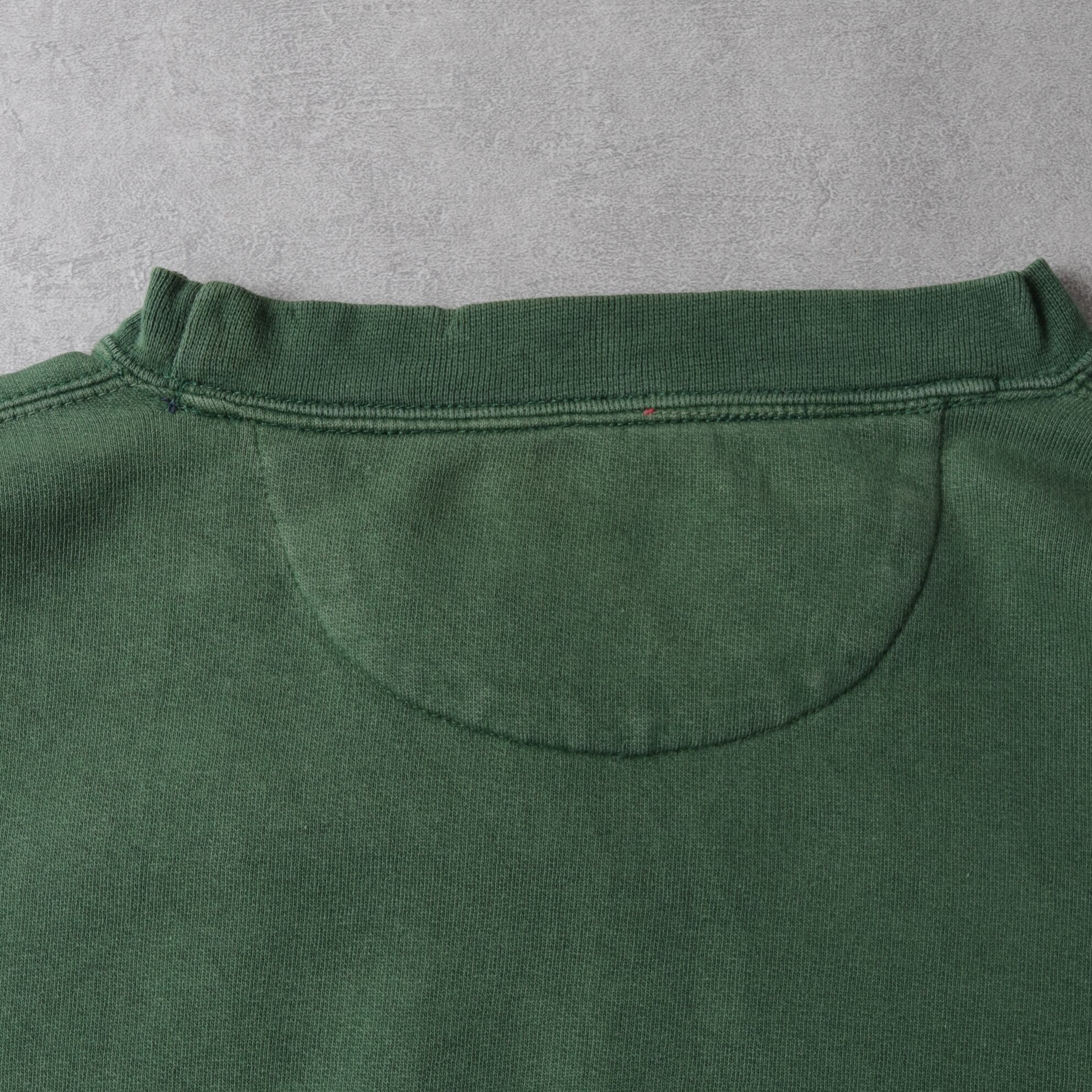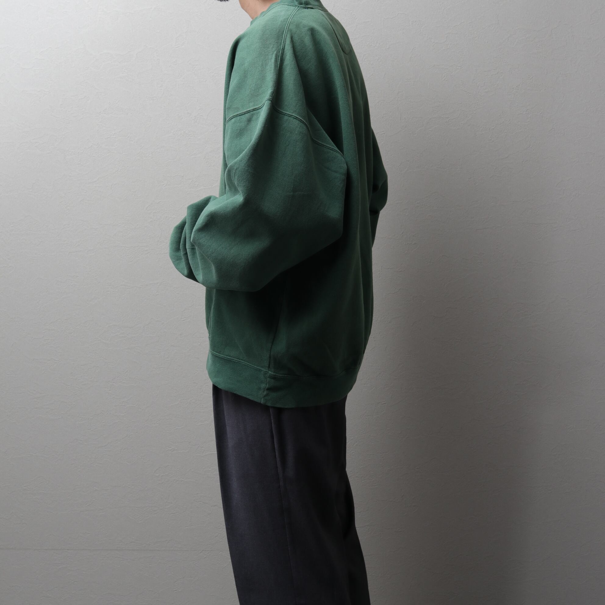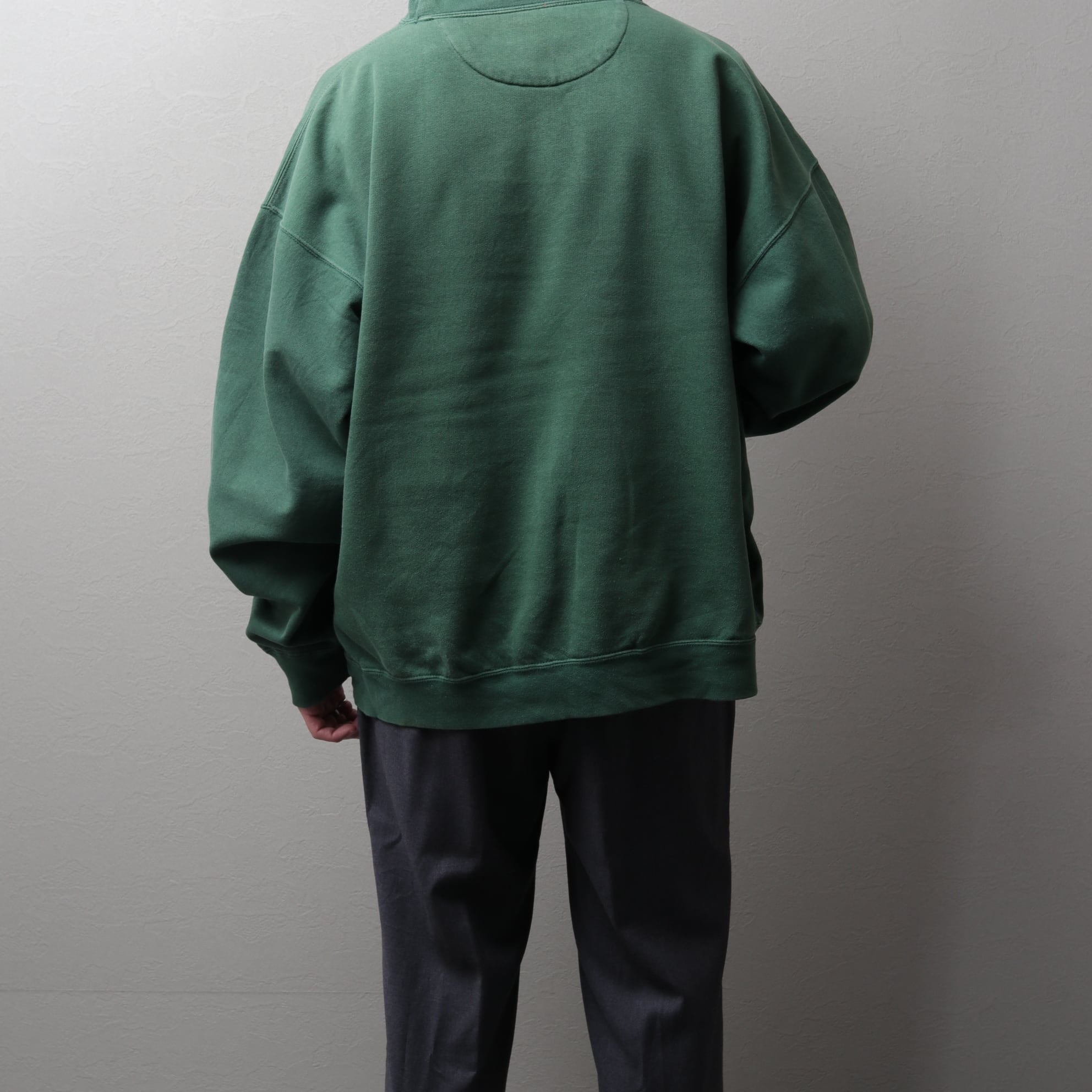 グリーンがフェードした色味とヨレた生地が良い具合です。