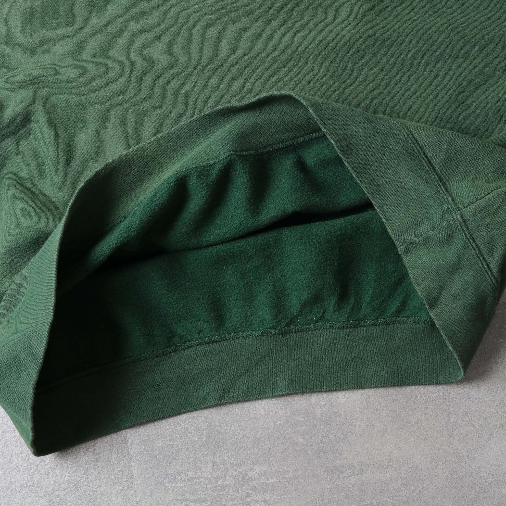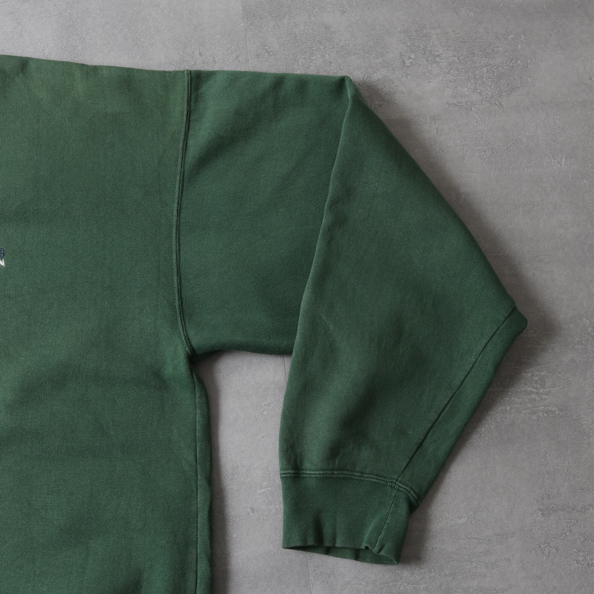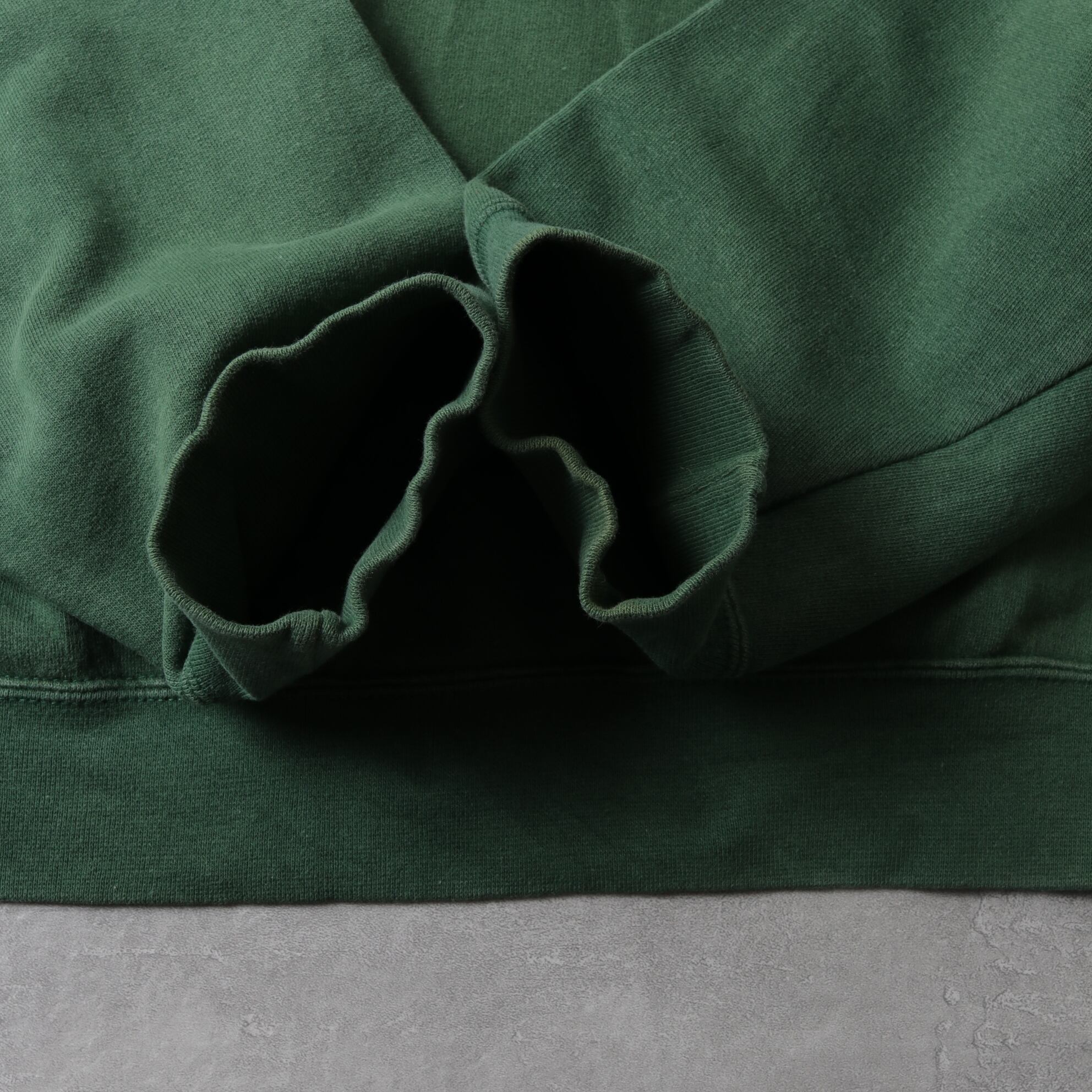 グリーンがフェードした色味とヨレた生地が良い具合です。