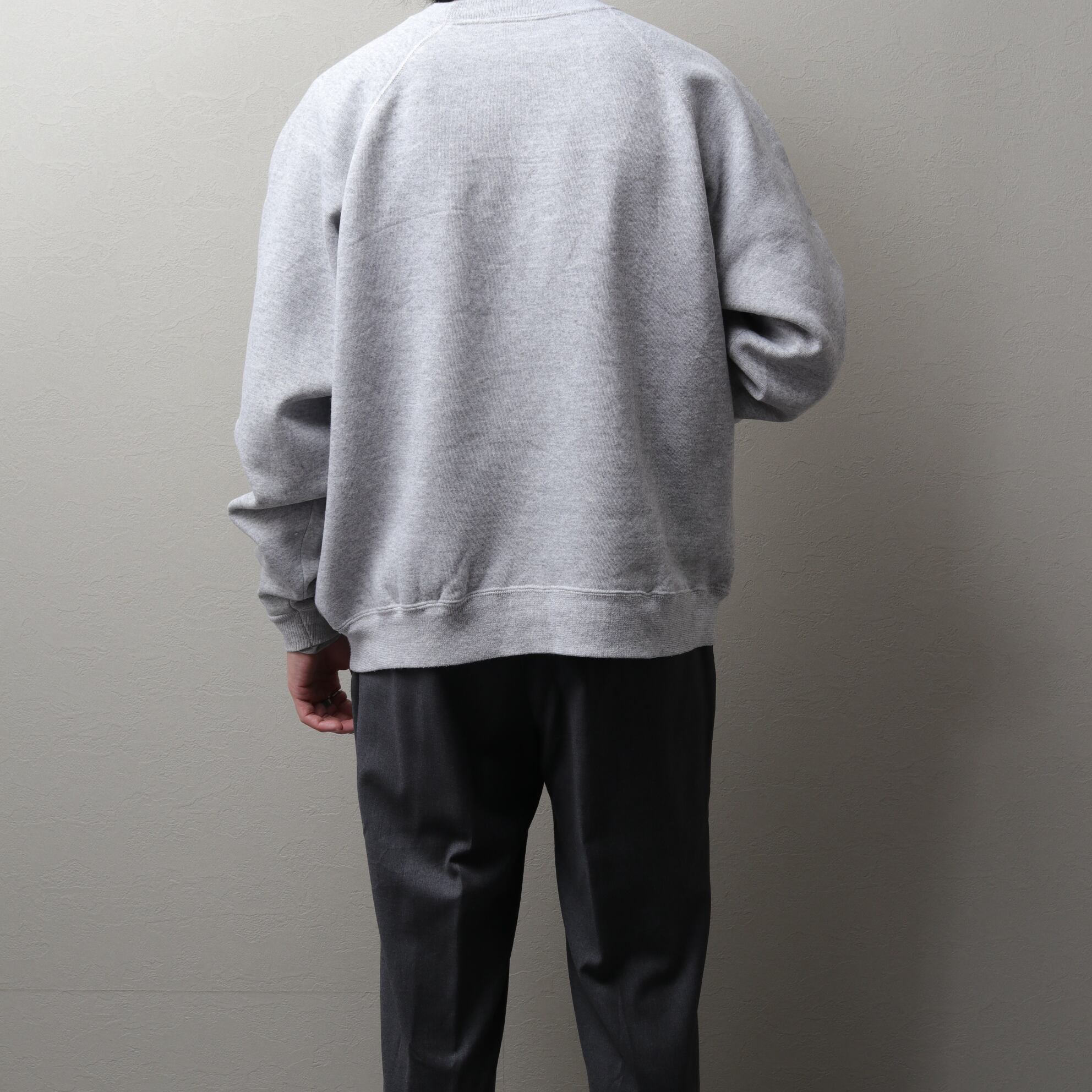 コットンポリ50/50の柔らかいボディに短丈幅広ラグランスリーブの丸みあるシルエット。