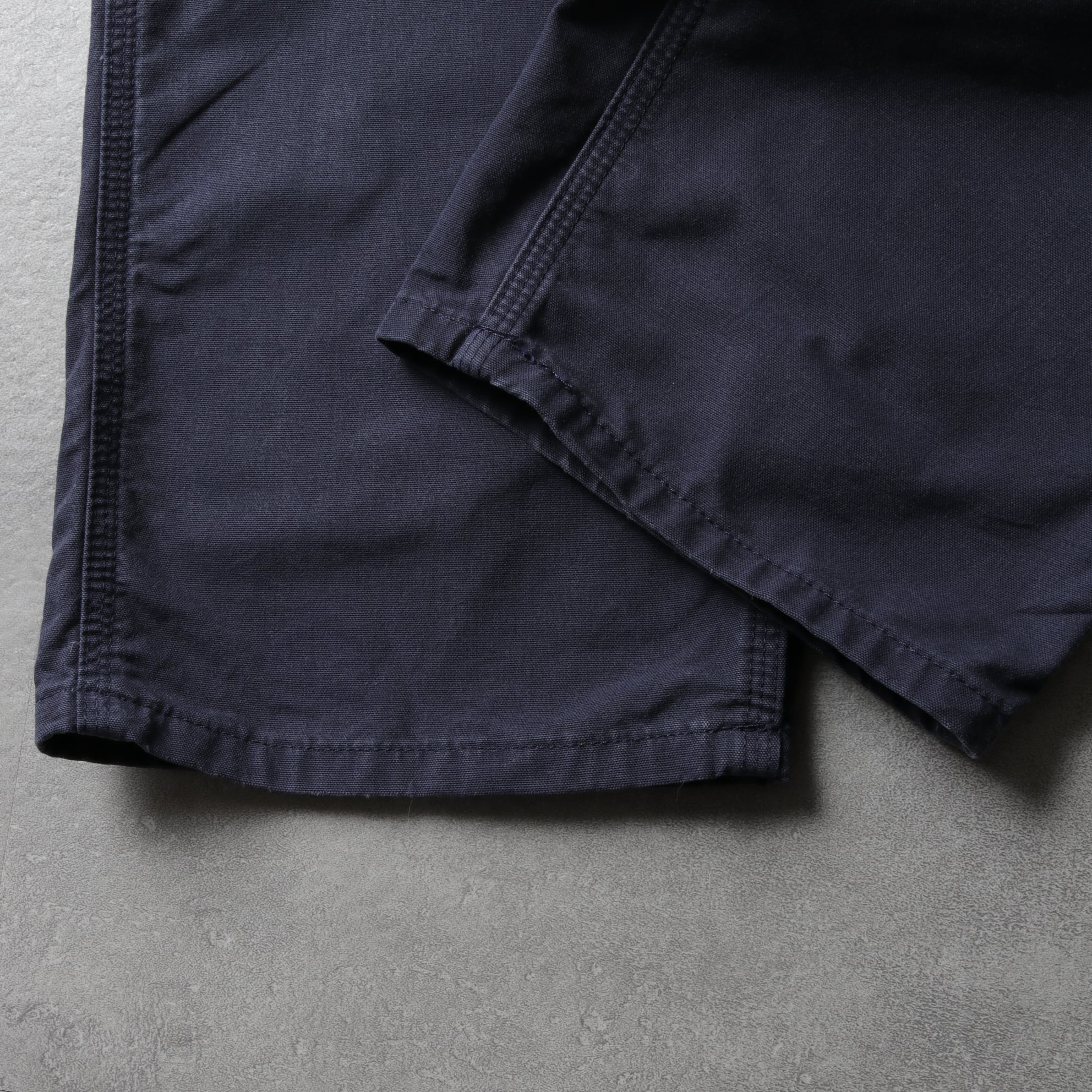 通常のダック地より薄手のチノくらいの生地感であるため夏でも通年穿ける一本です。