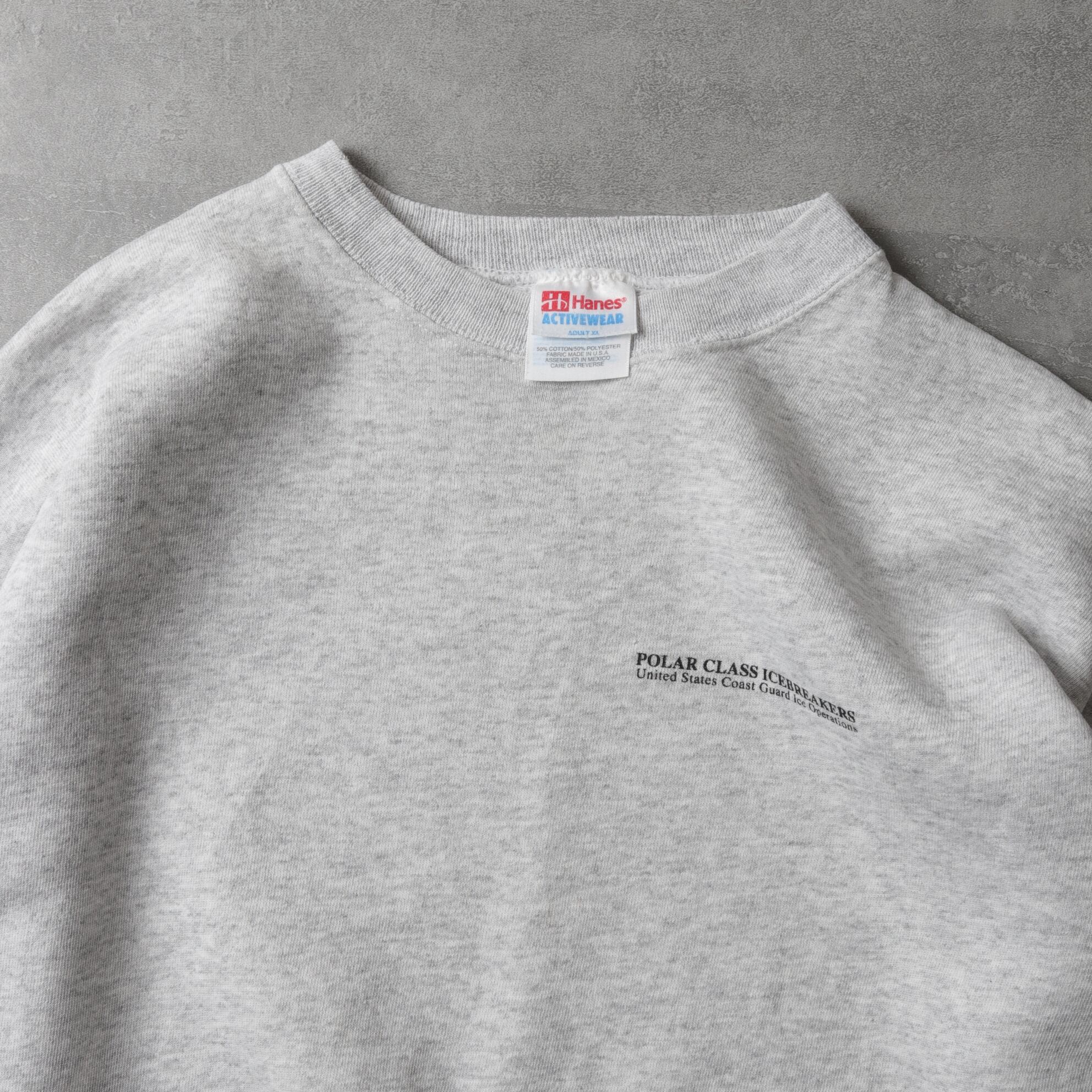ヘインズのUSボディ、メキシコ縫製でコットンポリ50/50の柔らかい生地感に短丈幅広シルエット。