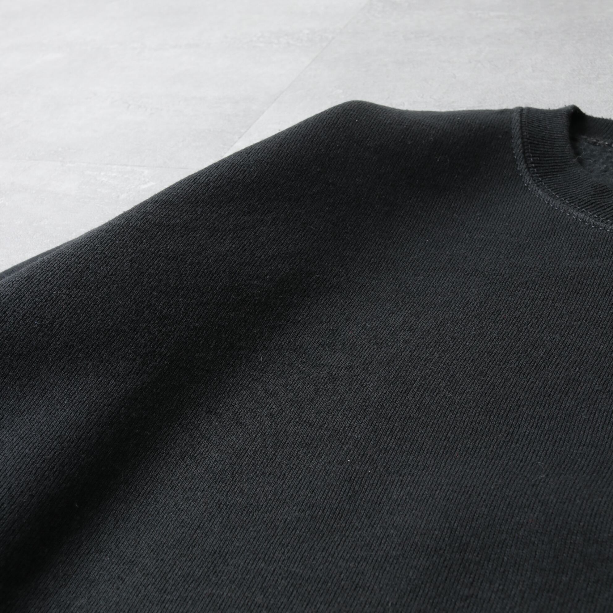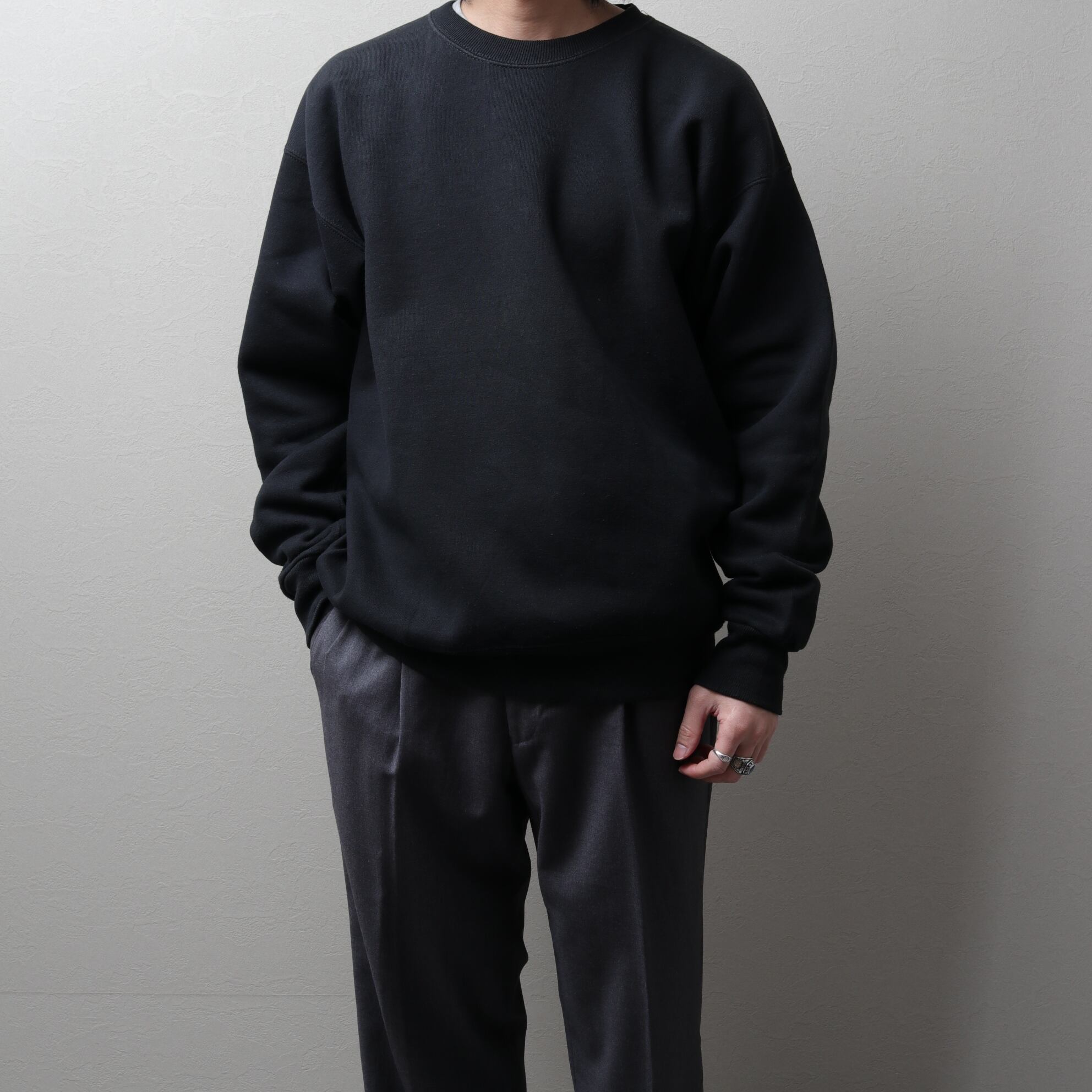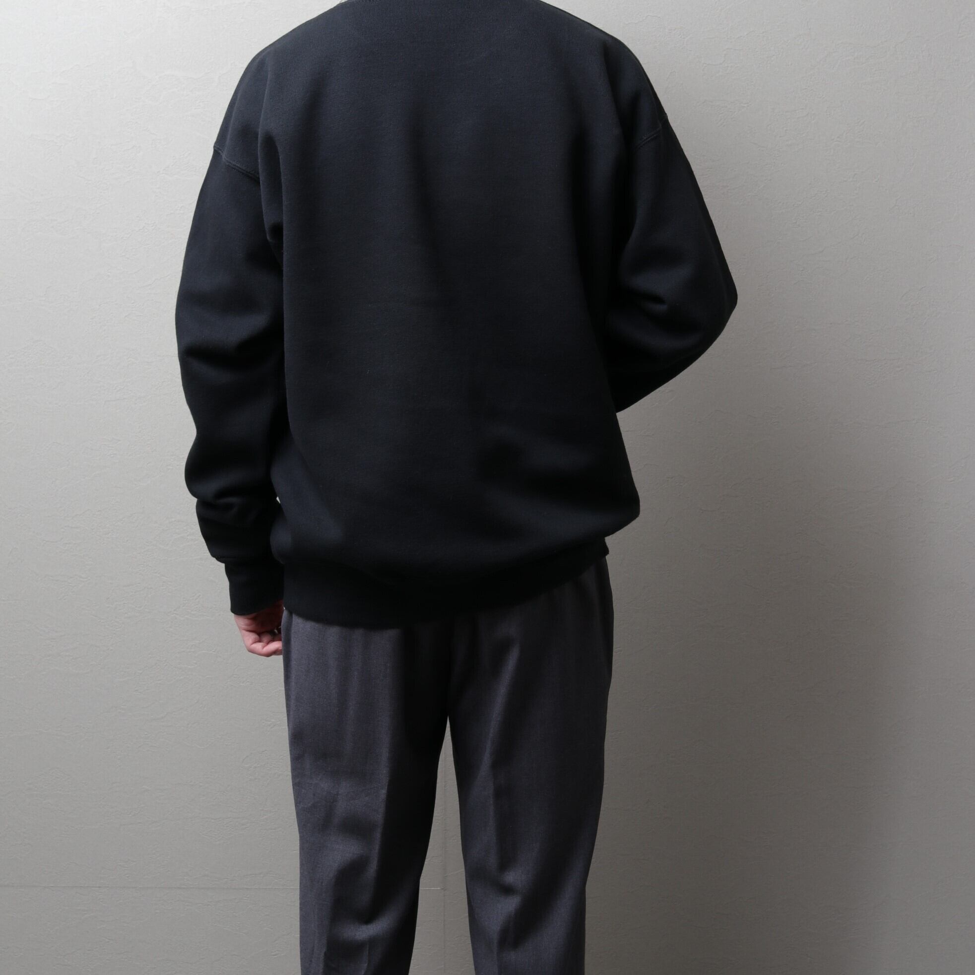 厚みあるコットンポリ50/50の柔らかい質感に裏起毛の保温性高いボディ。