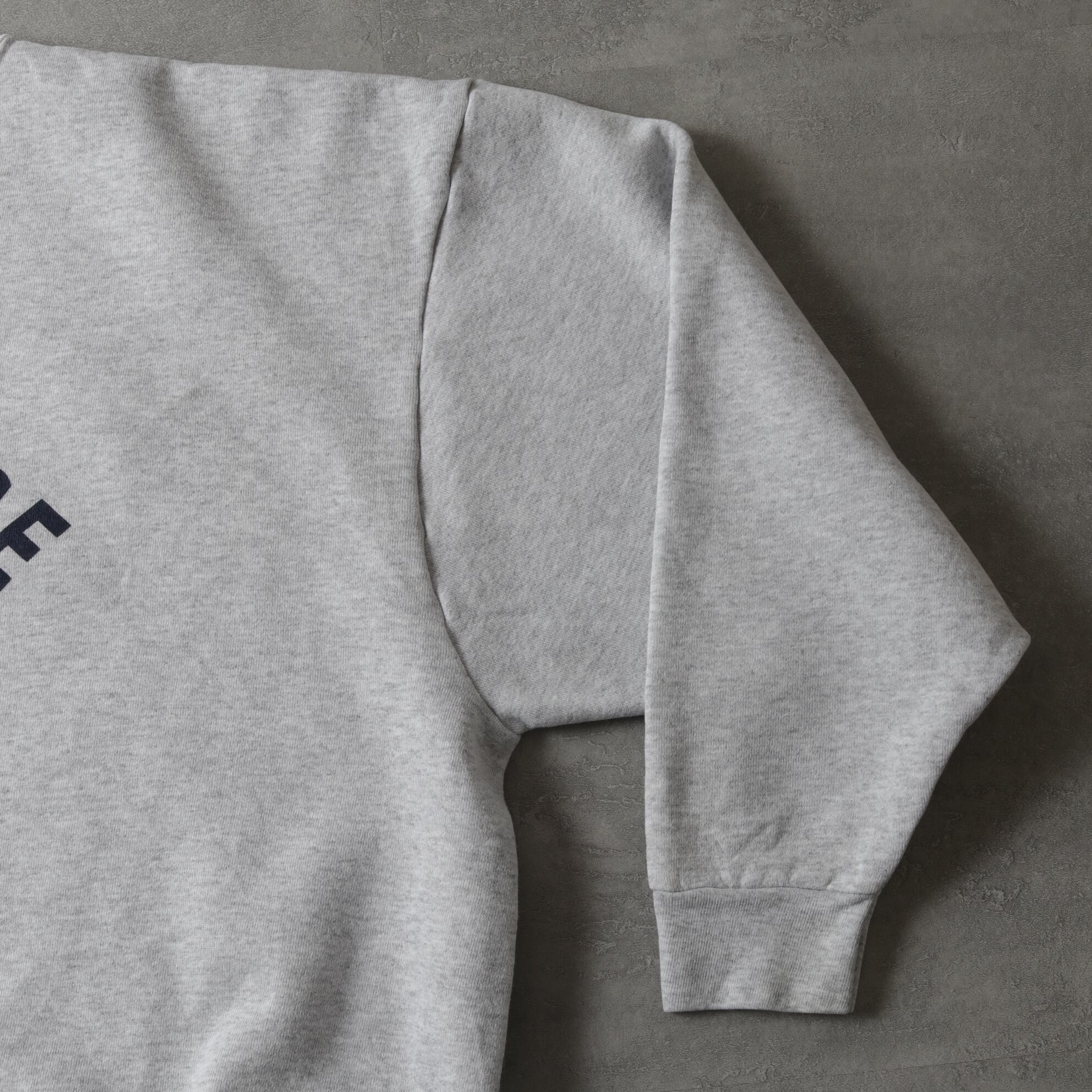 杢グレーの丸胴ボディによくみるとブラックでなくダークネイビーのアーチプリント。